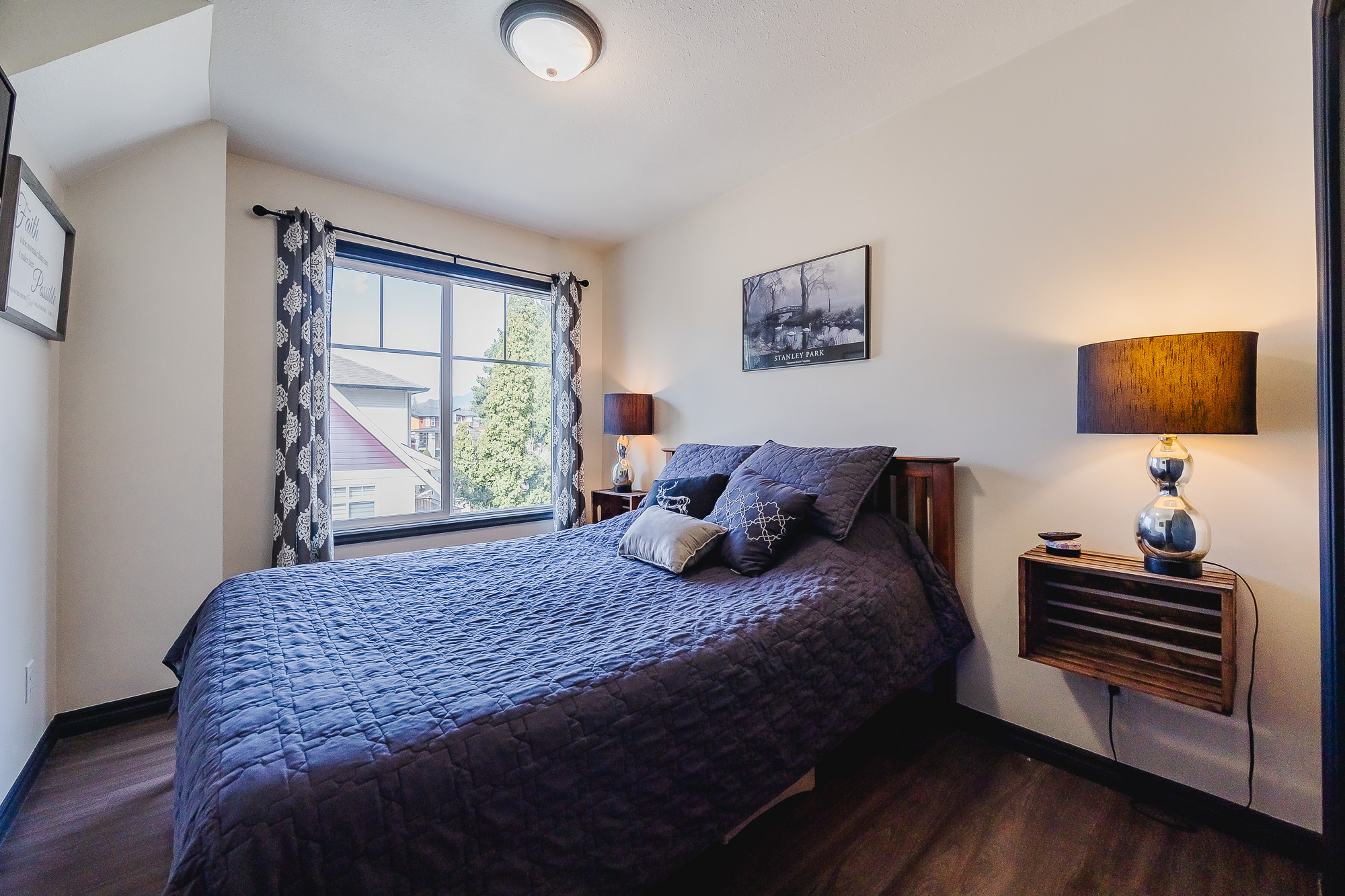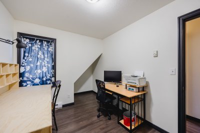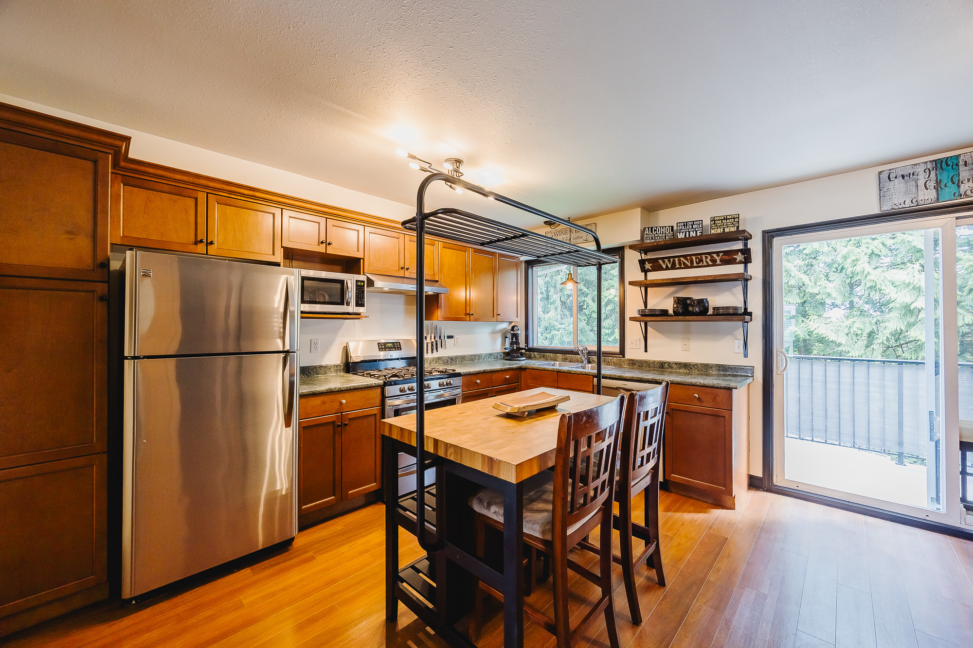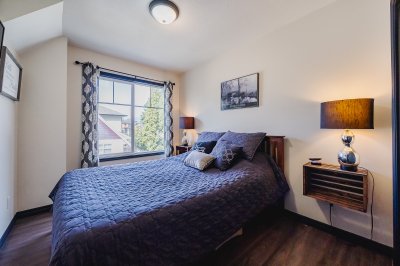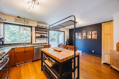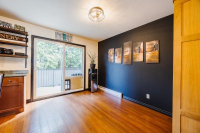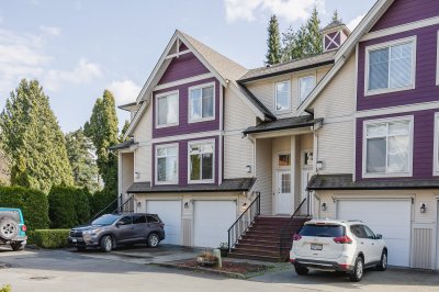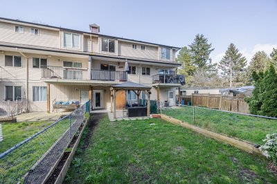 HUGE BACK YARD!!! Welcome to Thornberry Lane. You will fall in love with this 1450+sqft, 3 bdrm+Den, 3 bath, townhome which is situated in a small, well-maintained strata of only 8 units. This unit offers a full size driveway, newer stainless appliance package w/Gas range and Bosch D/W, and a relatively private back deck off the kitchen to take in the mountain views! The top floor offers 3 bdrms and two full size bathrooms, one being the master suite, which features a large closet and an ensuite. The Main level is open and flows from the living room to the kitchen and out to the patio. The lower level has your garage, den, laundry area and entrance to your huge backyard, which features an excellent gazebo area for entertaining on those nice days! All this situated in a central location.