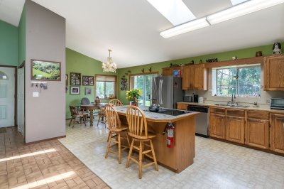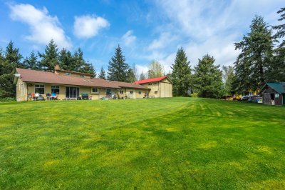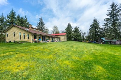 RARE FIND - Ideal Multi-Generational Living! 2 full homes (one with a suite) each with sep gated driveways & workshops on Beautiful Private Parklike 5.12 acre back to nature retreat & quiet no thru street. Main home - 2844 sf custom split w/Warmth & Character, vaulted skylit ceilings, hardwood floors, loads of windows in sun-drenched living rm & Country kitchen. Primary w/vaulted ceilings & jetted soaker tub ensuite. Bsmt w/large games rm & kitchen - great in-law suite. Gardens & chickens - potential farm taxes. Zoning allows kennels & 3 commercial trucks. 42x27 4 car drive-thru garage & 41x26 drive-thru Truck/RV shop w/17’ ceilings. Beautiful 1915 sf open plan 4 bedrm rancher w/wraparound veranda & 28x22 garage/shop w/11’ ceiling. Primary w/deluxe ensuite & sliders to hot tub. A must see!