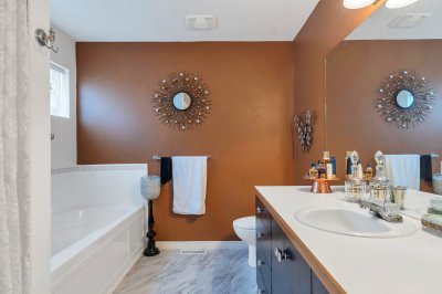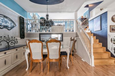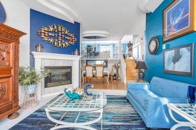 ROOF TOP PATIO DECK! Step inside this 5 level West Coast nautical vibe home. Main flr offers a bright galley-style kitchen w/ granite counters, new dishwasher, newer LG stove, new s/s Whirlpool fridge, opening to an outside Lrge deck. Cozy living rm w/gas f/p & dining rm both w/ soaring ceilings! Up a level & you have family Rm w/ another deck. Up another level r the 2 bdrms BOTH w/ ensuites & Master w/ walk-in closet. New toilets in 3 of the 4 bthrms, custom stairs, newer washer & dryer in bsmt, new garage dr opener, & 10-year warranty A/C. A brand-new rooftop deck is a true highlight, perfect for entertaining or unwinding under the stars. Side-by-side garage, extra driveway prkng, walk to shops/mall & restaurants, Fast possession available PART VENDOR TAKE BACK MORTGAGE AVAIL!