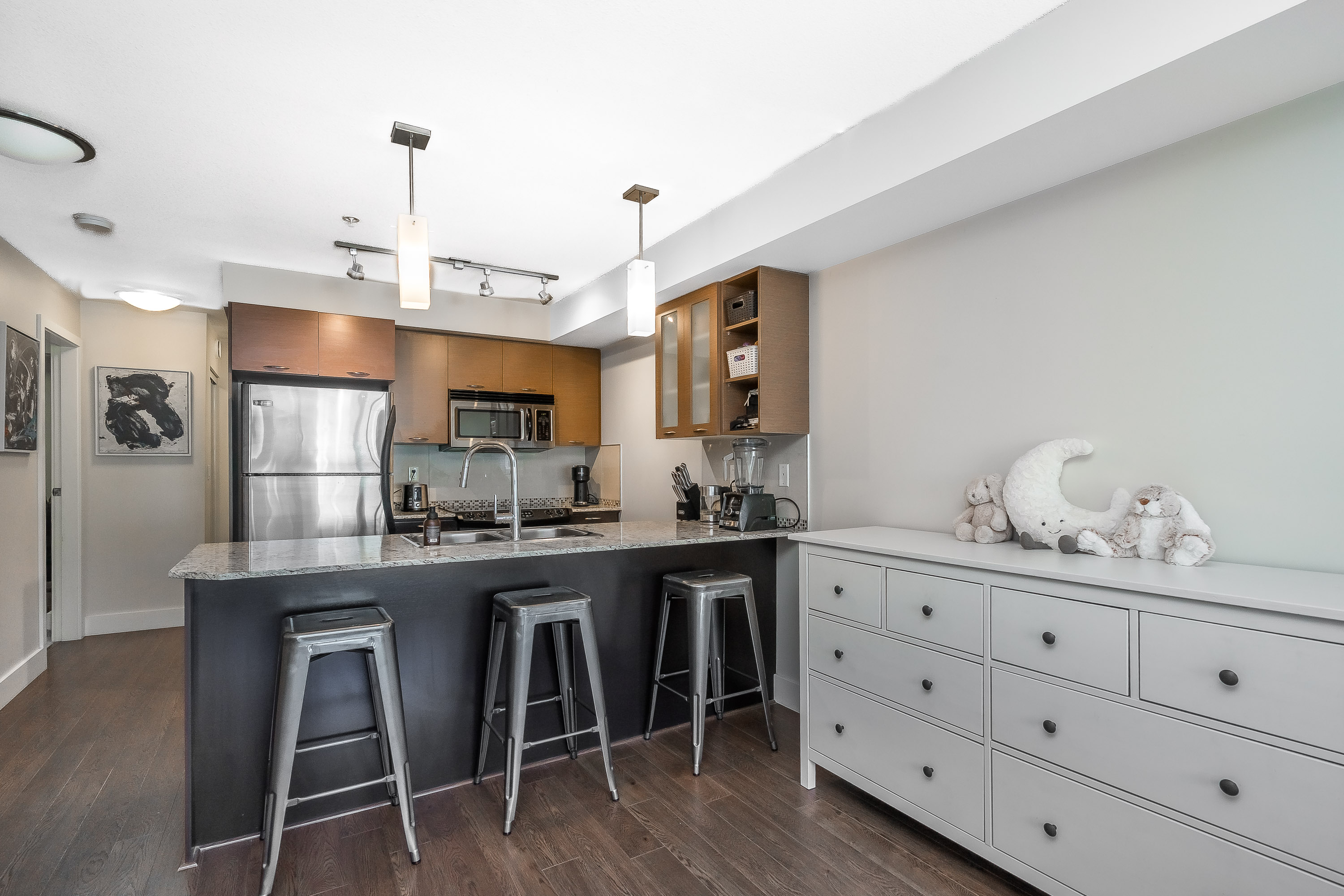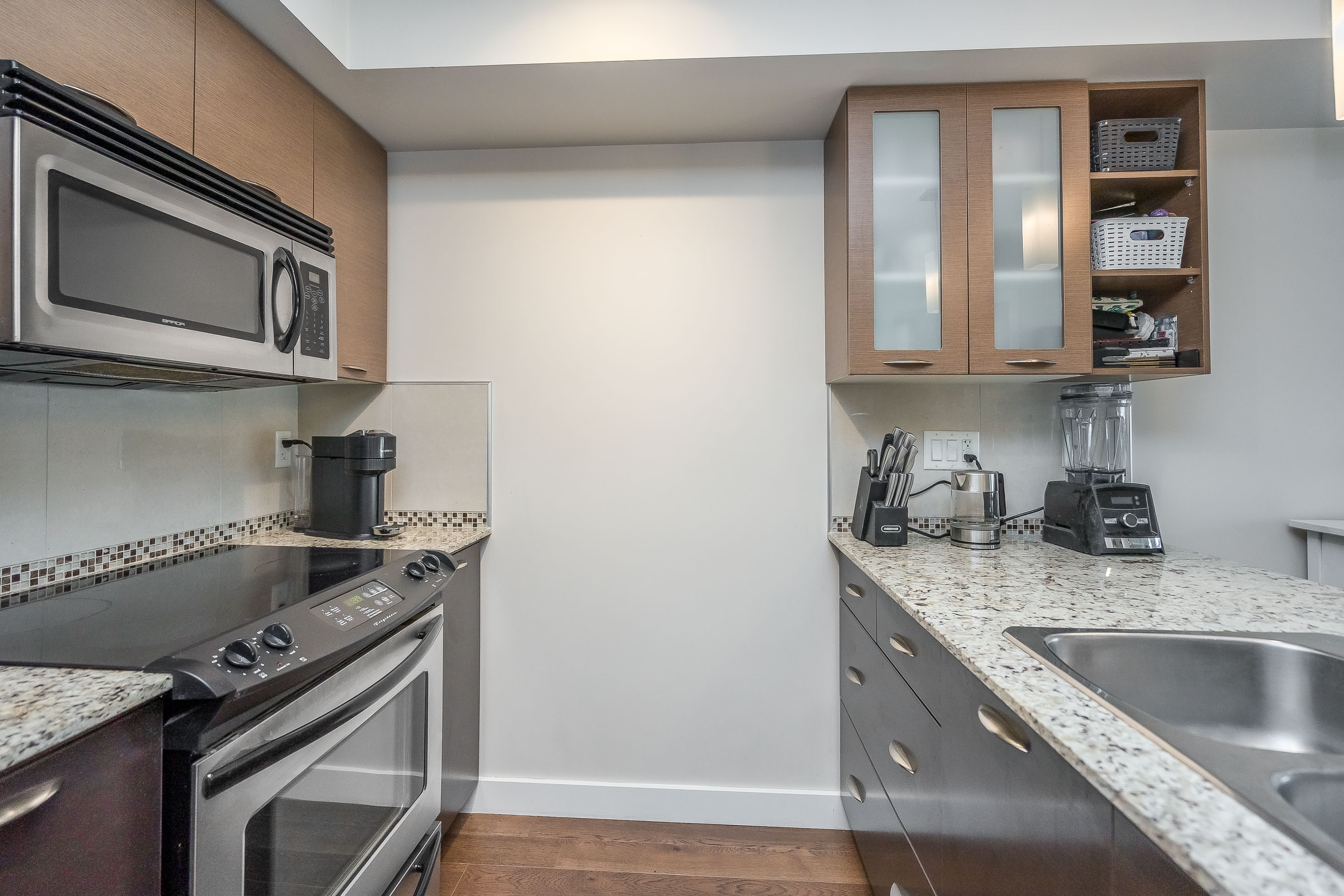Priced to move! This modern and bright 1 Bed + Den unit located at 2233 McKenzie Rd has been immaculately maintained and is ready for it's next owner. Featuring an open concept kitchen and living room, matching stainless steel appliances and granite counters with extended bar top. Electric fireplace in living room for those cozy evenings. Professionally installed custom closet organizers ($3500 value) that add daily convenience and a touch of luxury to your home. This location puts you steps away from your morning coffee, local shops, restaurants, and everyday essentials. Quick access to Highway 1, UFV, Abbotsford centre, the hospital, and public transit if you want to leave the car behind. Don't miss out, book your showing today!