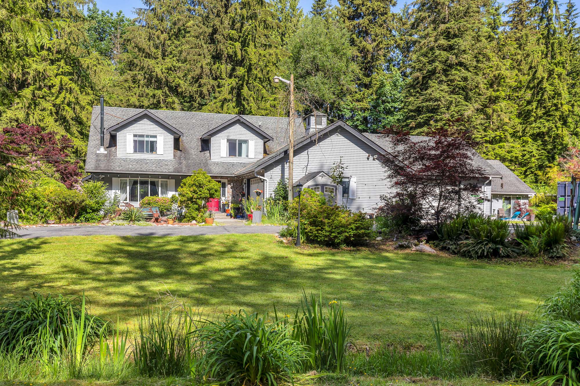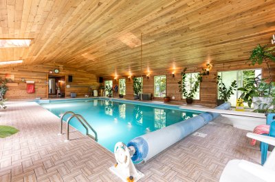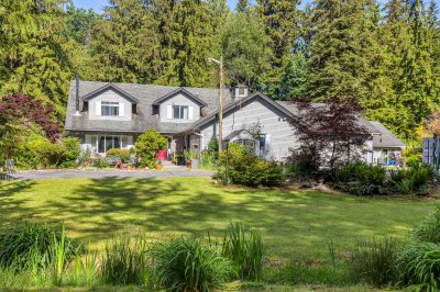 Private 2.6-acre estate in Mission featuring a 5 bed, 5 bath home with income-generating indoor 20x40 gas-heated pool. Enjoy a hot tub, exercise room, and large outdoor entertainment area. The updated maple kitchen includes granite counters, slate backsplash, and island. Luxurious ensuite with marble finishes and 5-jet shower. Brazilian cherry hardwood floors throughout. Two double garages (one with 220V power & hot/cold water), plus a 16x24 shop. Deep drilled well, fruit trees, blueberry bushes, pond, chicken coop, and outdoor storage. Gated, fenced, and completely private. The Huge indoor pool is attached to the house measuring 2058 sq ft, with a separate change room/bathroom. Plus 1,567 sqft Garage. See Floor plans for details *** see video tour.