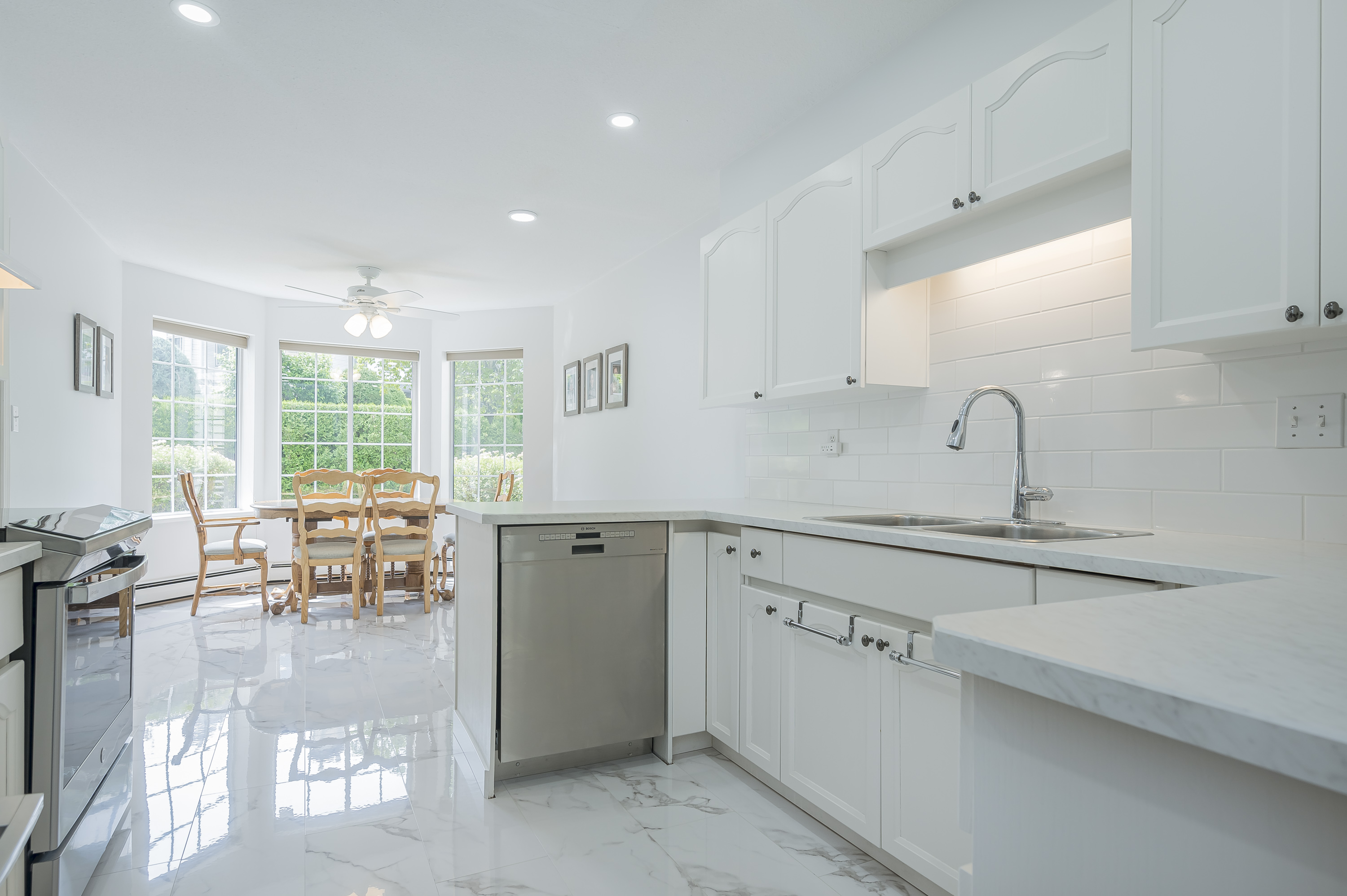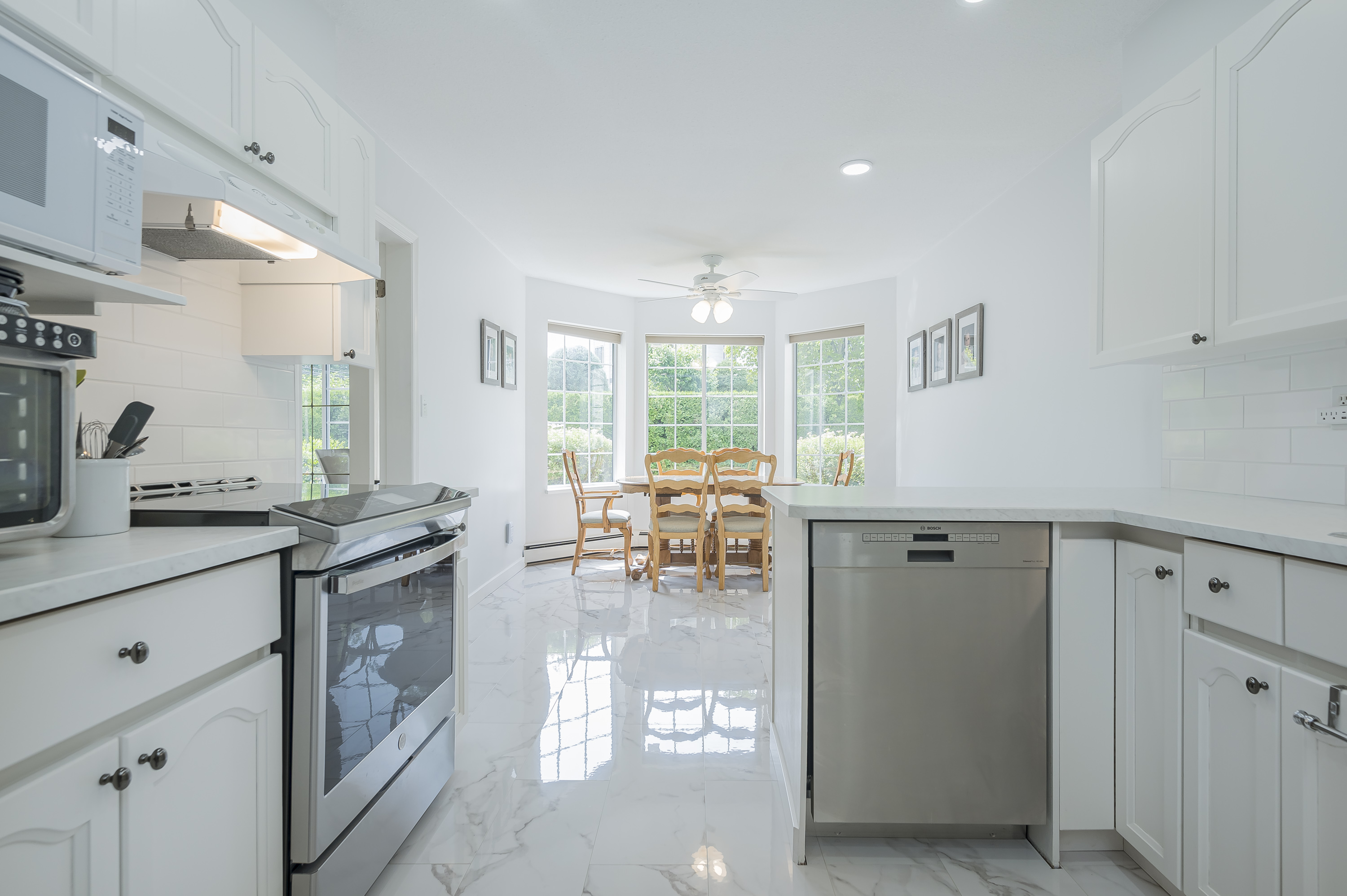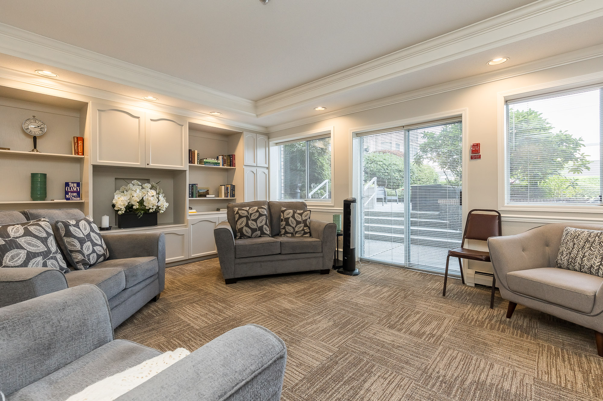 Beautifully renovated HUGE corner unit in the sought-after 55+ community of Lakewood Gardens with an exceptionally maintained strata just steps from Mill Lake and close to shopping,transit and all amenities.This bright and spacious 2 bedroom, 2 bathroom home features numerous modern updates including new flooring,updated kitchen and bathrooms,contemporary lighting, fresh paint and newer appliances including washer and dryer.Enjoy the enclosed solarium year-round or relax by your cozy gas fireplace in your spacious living room.Building amenities include a fitness room, workshop, library, community lounge,and guest suite.HOT WATER HEAT AND GAS FIREPLACE INCLUDED IN STRATA FEE. .1 parking ,1 storage locker. Bonus additional storage cabinet in workshop.Pets not allowed. Not a ground level unit