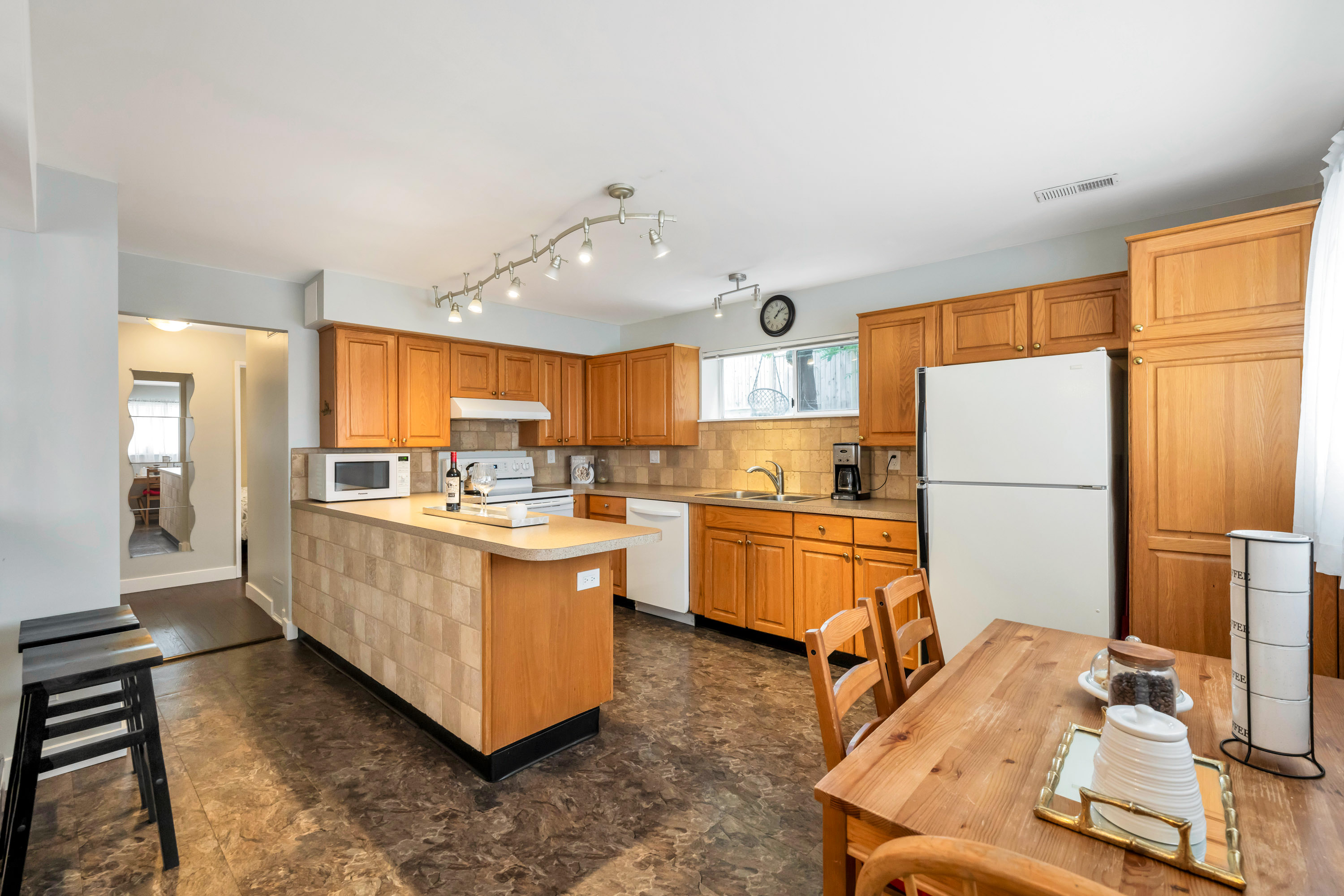 Welcome to this spacious 4-bedroom, 3-bathroom basement home on a generous 8,278 SF corner lot in family-friendly North Delta! Enjoy stunning North Shore Mountain views from the large covered sundeck, perfect for year-round entertaining. The bright, open layout offers over 2,600 SF of living space, featuring 3 bedrooms upstairs, a recreation room downstairs, and a separate 1-bedroom suiteโideal as a mortgage helper. The private backyard includes fruit trees and plenty of space for kids to play. Conveniently located steps from Devon Gardens Elementary, Annieville Lions Park, and more!