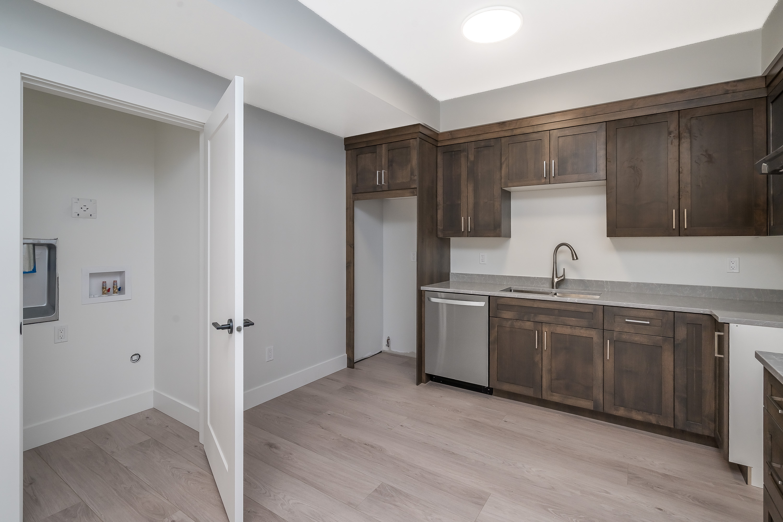 This brand new home located in a quiet established neighbourhood close to a park and schools. 9 ft ceilings throughout all 3 levels and 4 bedrooms. Open floor plan on the main, includes large kitchen w/island and seating area, all main floor kitchen appliances, hard surface counter tops thru out main, dining area and living room complete with floor to ceiling stone gas fireplace. Home has front sun deck with glass railing and a covered rear patio, rough ins for BBQ and AC. Upper floor has 3 large bedrooms with a 3 piece bath for the kids. Master bedroom is complete with walk in closet and ensuite includes two sink and amazing large tile shower. Basement contains 1 bdrm suite complete with laundry. Fully fenced and landscaped.