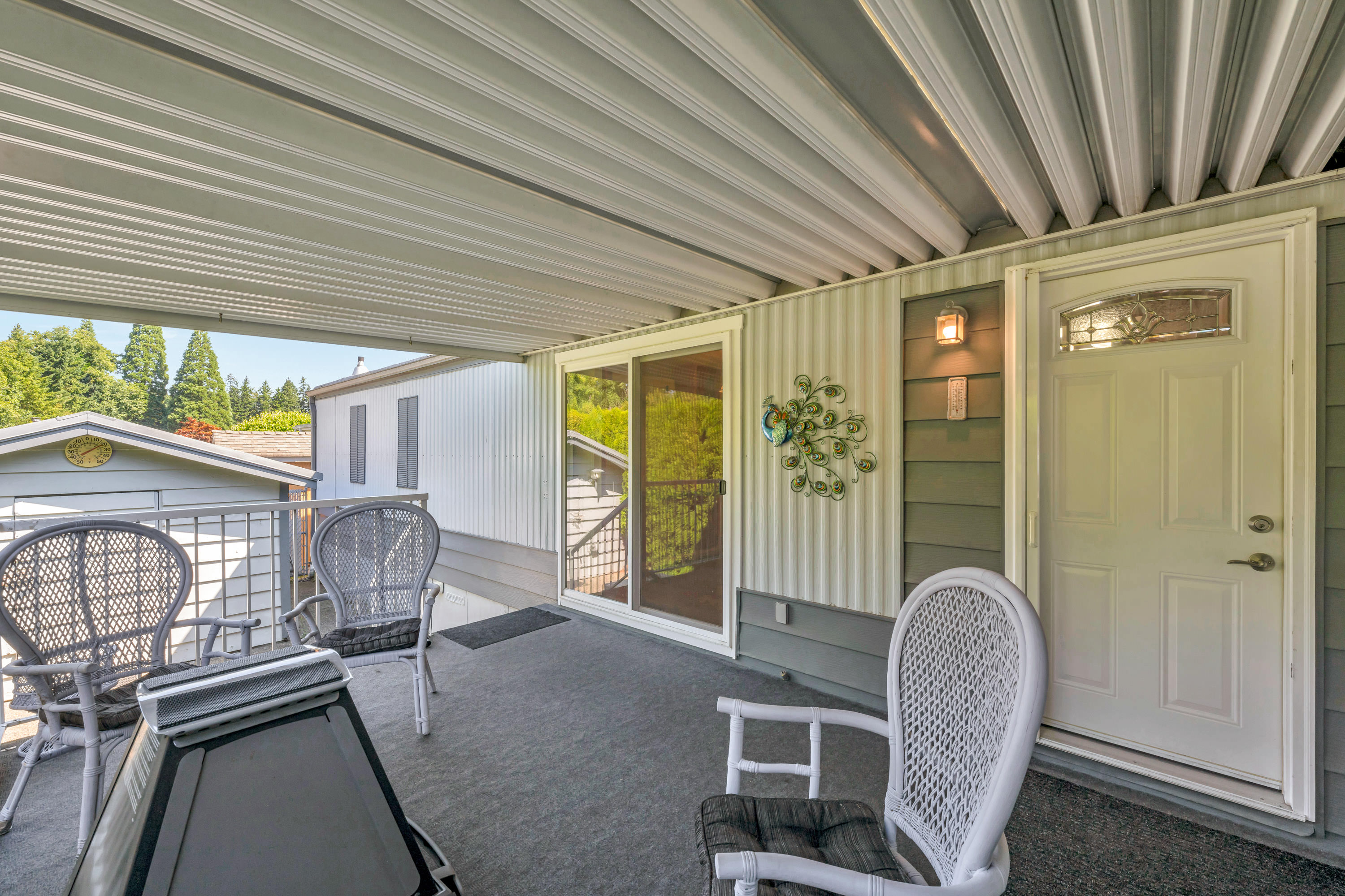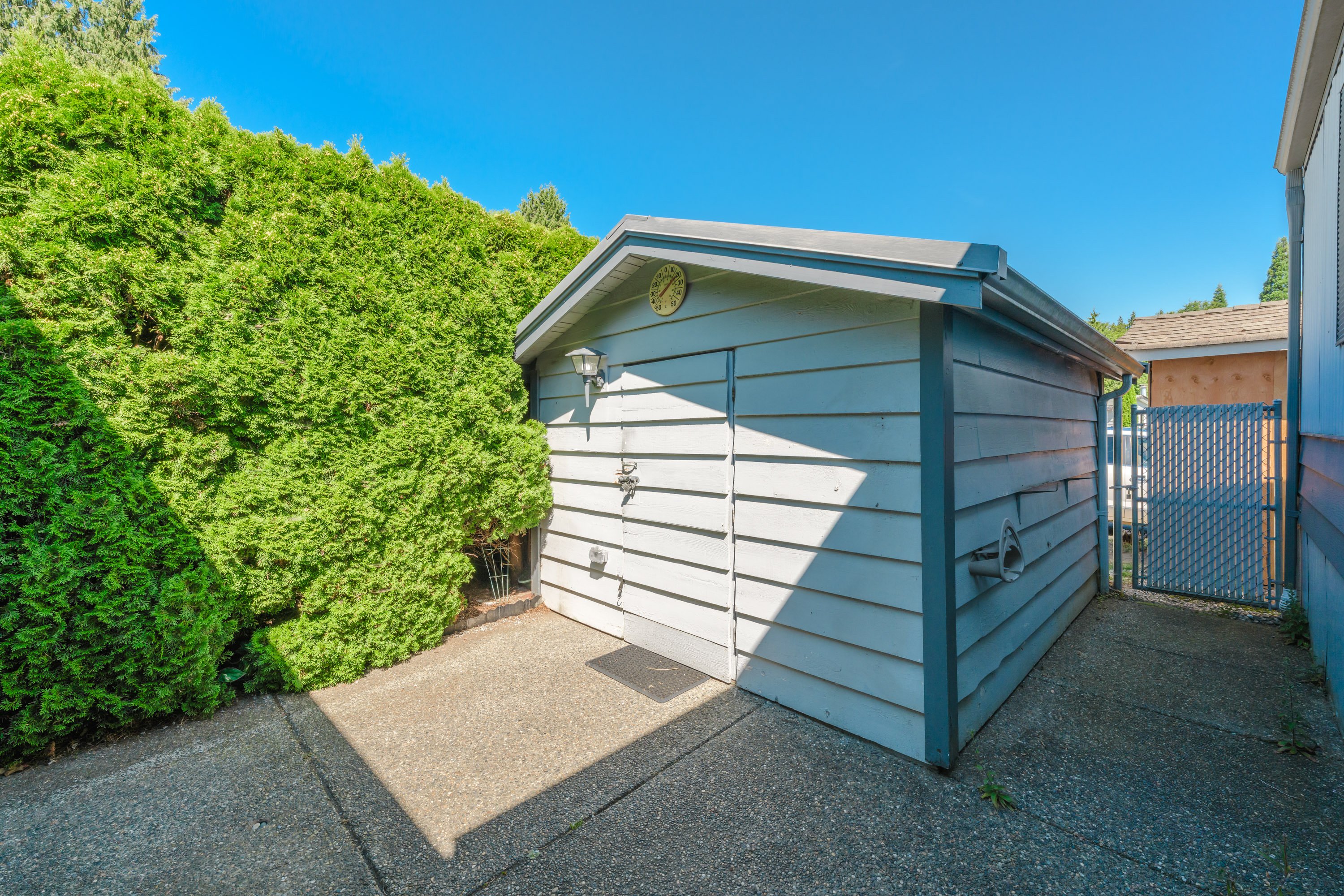 Sought after Deer Creek Estates, lovely "CORNER LOT" 2 Bed (opposite ends) and 2 full baths, Air Conditioned, Updates include, Fridge, Gas Stove, Heat Pump, Hot Water Tank, Flooring, Furnace, Rubber Driveway and brand new Silver Label! Amazing detached workshop with power, lovely patio that includes a natural gas firepit, Gas spigot for your barbeque. Located in Brookswood, Adult Community with great neighbors! 1 block from transit, walking distance to IGA and the Artful Dodger Pub. A perfect place to call Home!