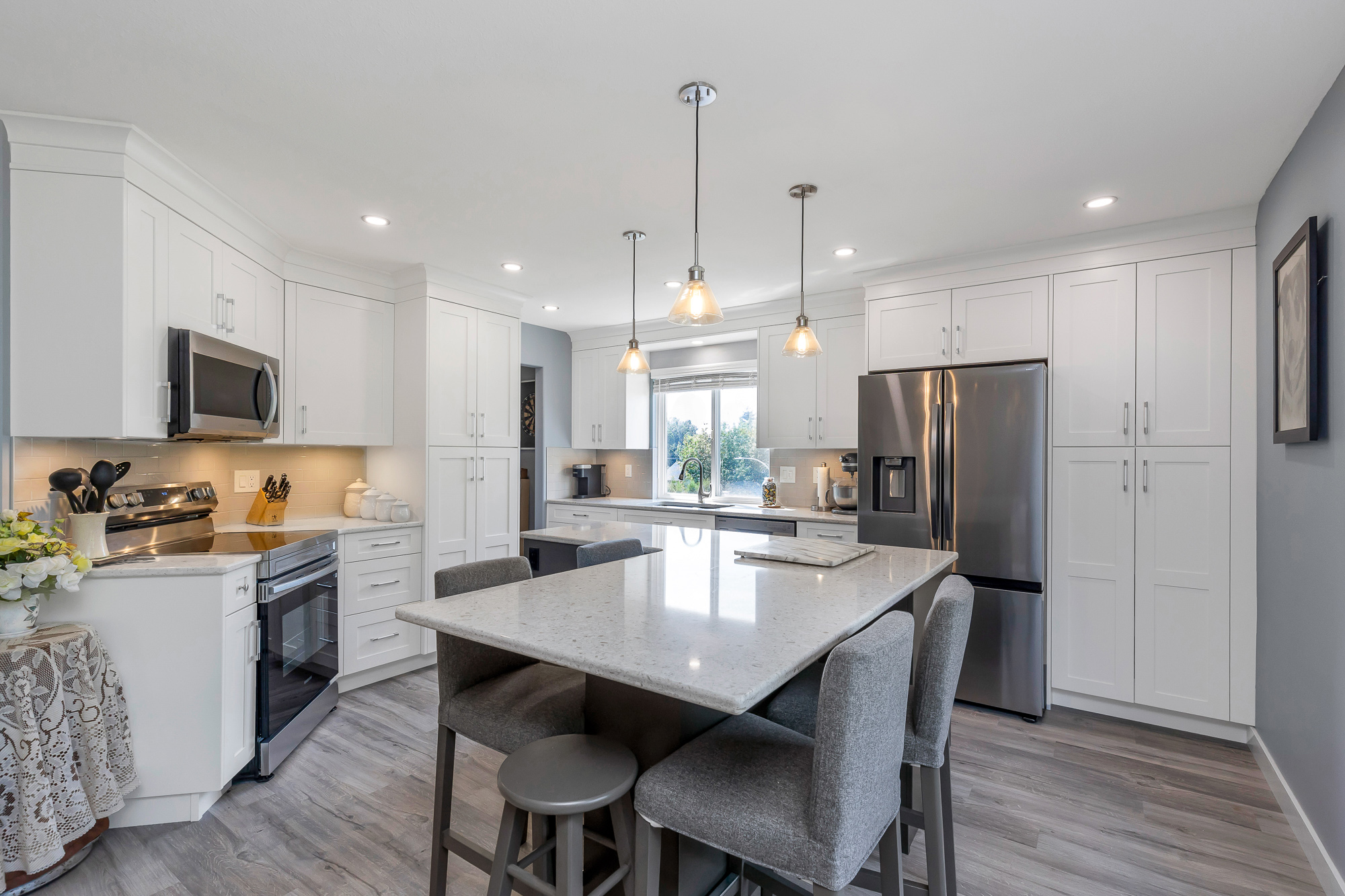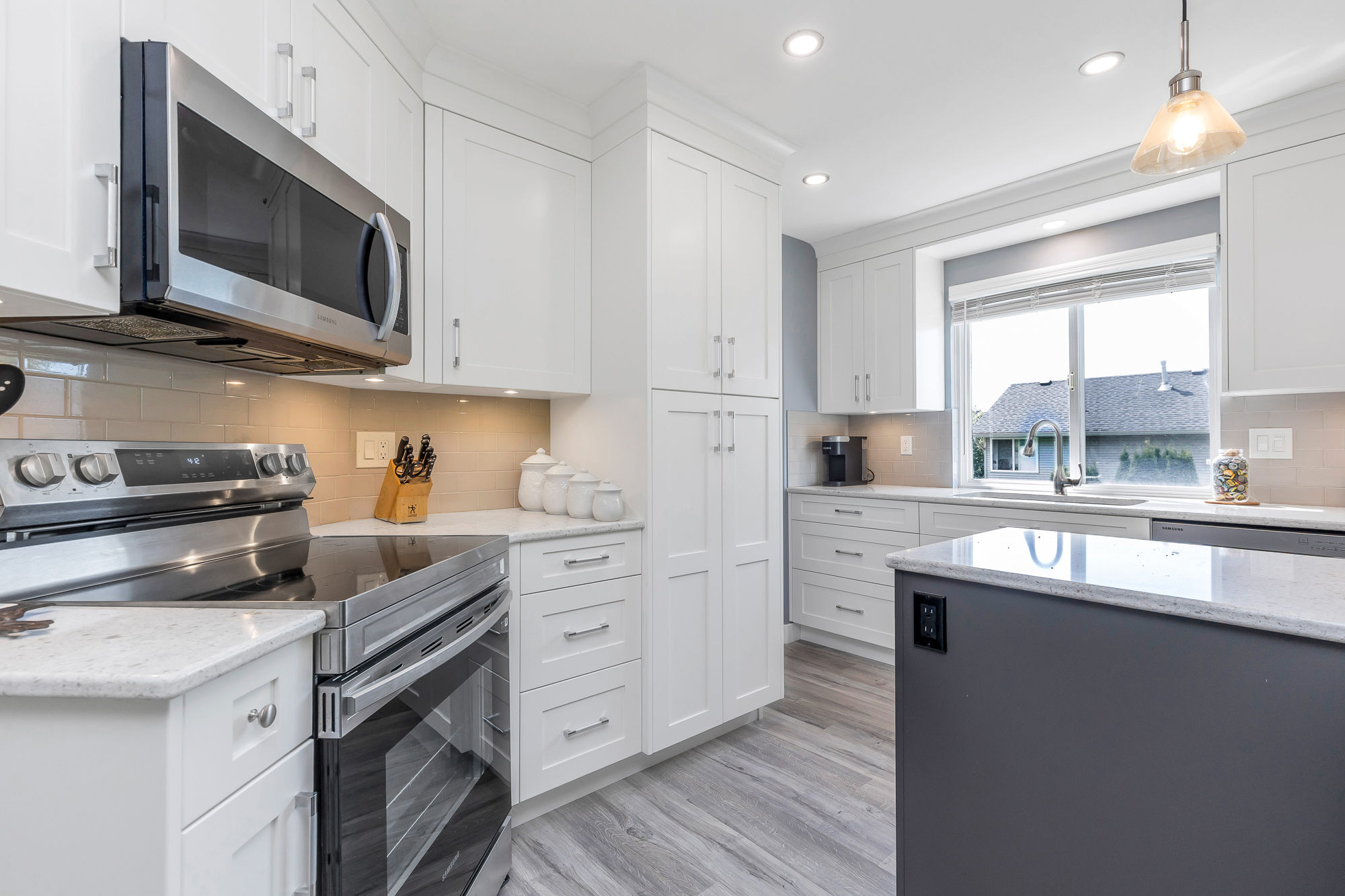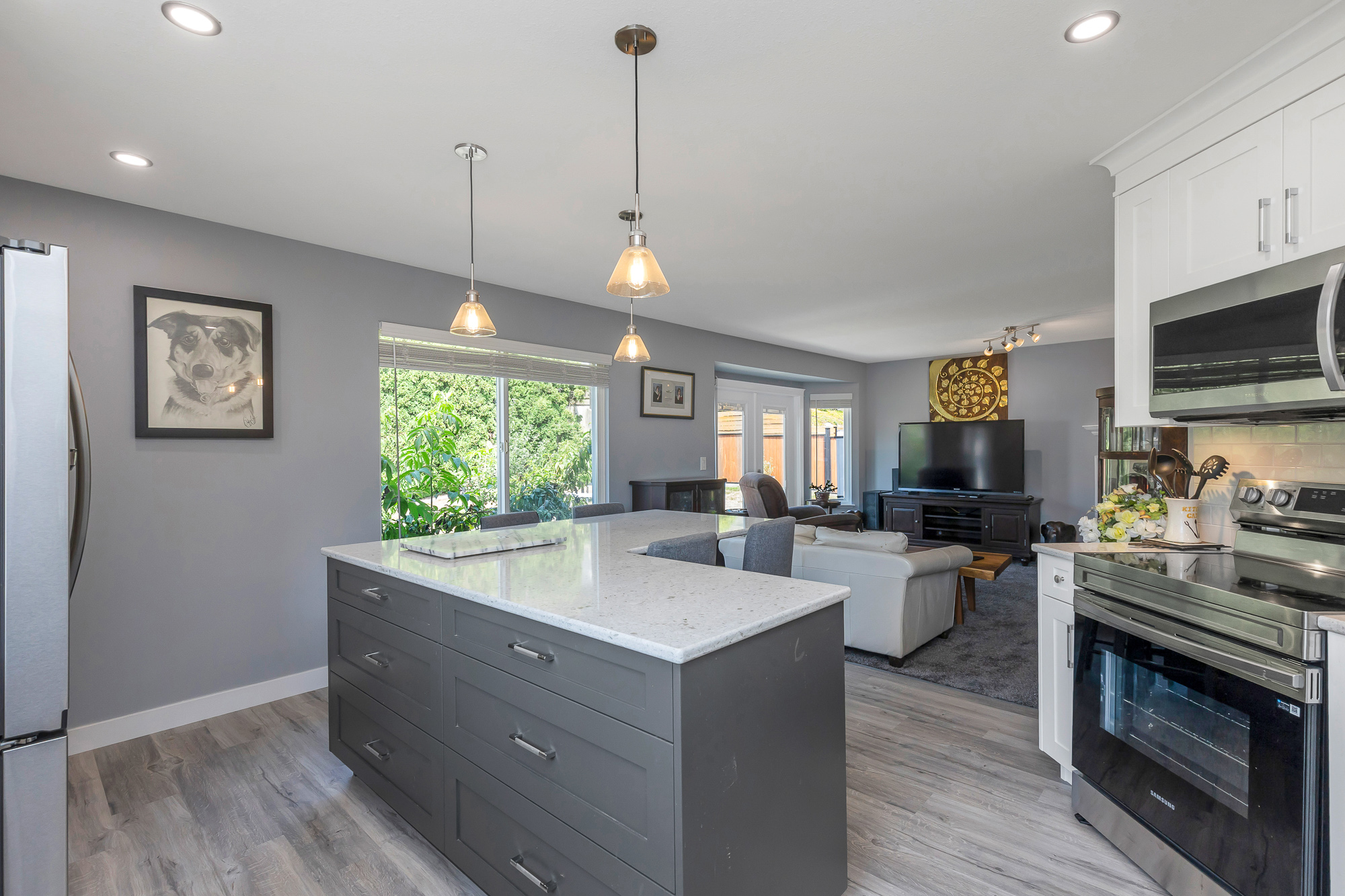 Located in highly desirable neighborhood close to schools, golf course and bus route you have to see the numerous recent updates seller has done including painting throughout, new appliances, new quartz countertops, modern blinds throughout, new carpet/flooring/tile main level, A/C installed 2020 plus much more see information in supplements. Legal 2 bedroom suite not rented with total of 6 bedrooms and 3 bathrooms. Fenced back yard with many fruit bearing trees. Move in ready seller is cabinet installer has done quality upgrades. Priced right for today's market.