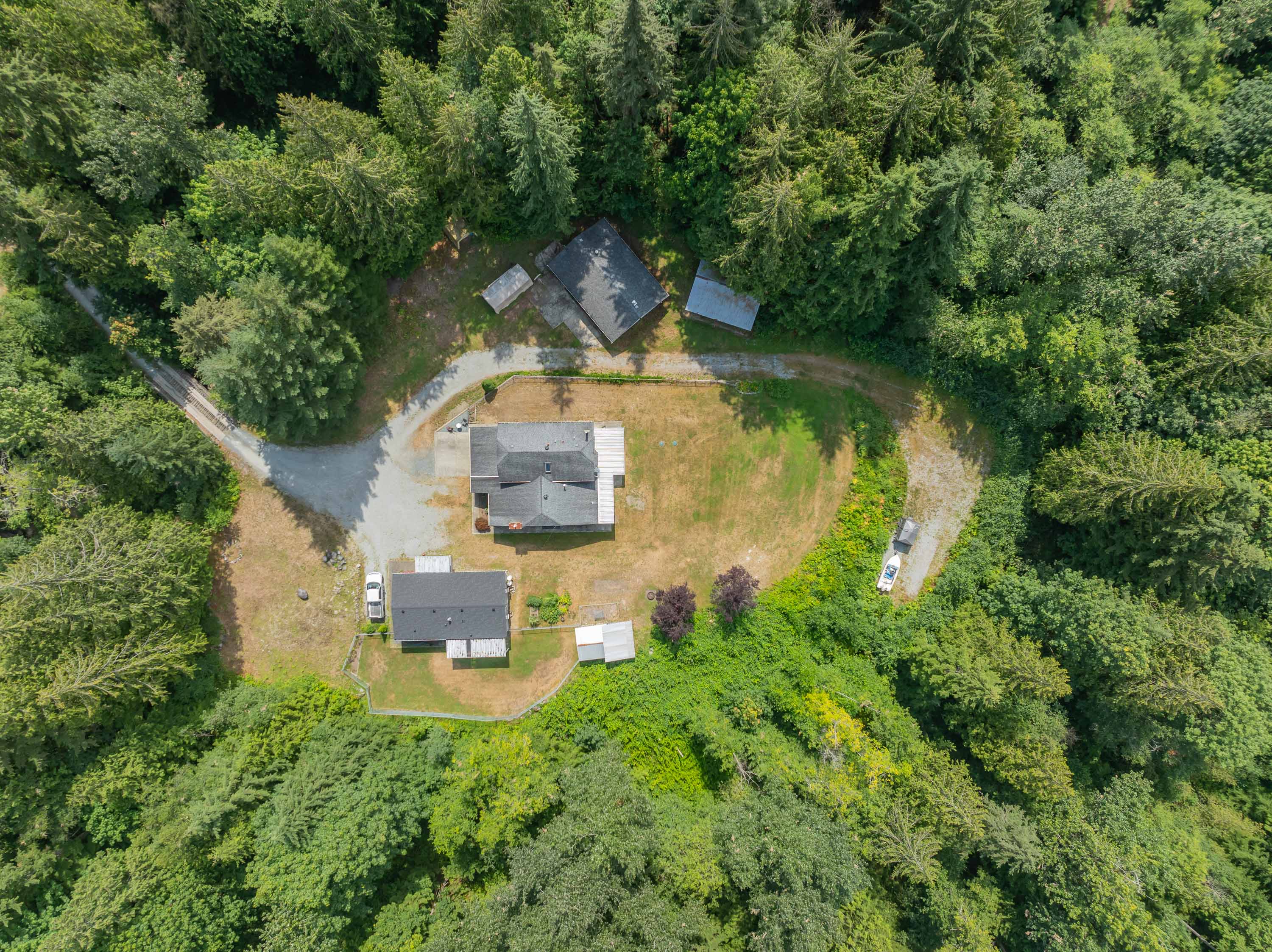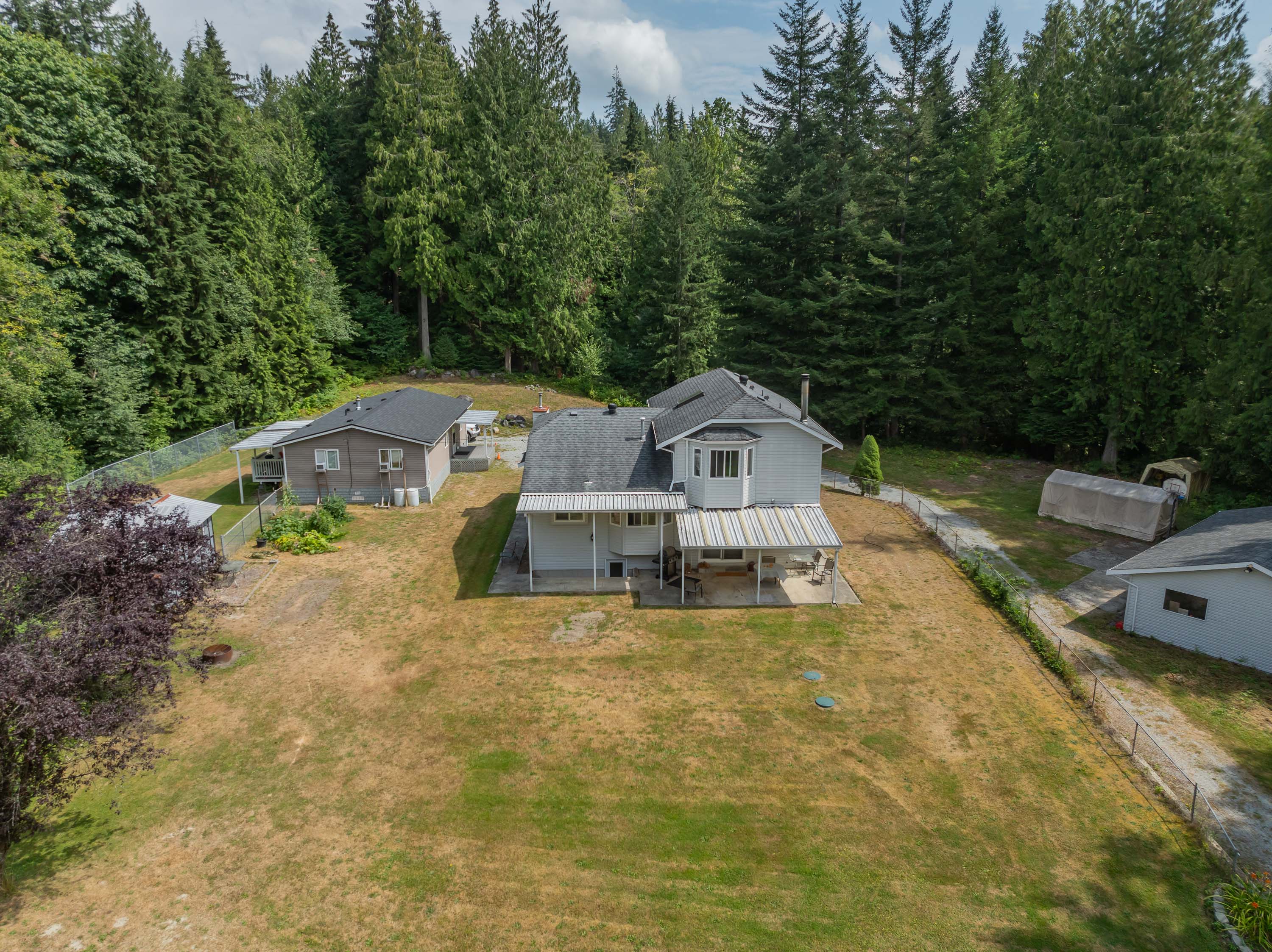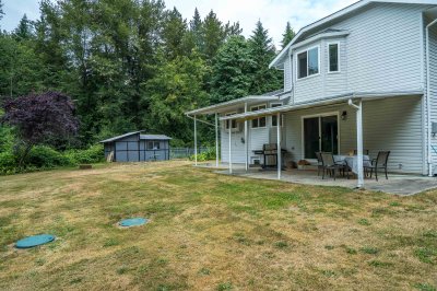 2 HOUSES& SHOP!! Drive down the long private driveway, over the bridge, & you will be welcomed by a beautifully maintained, 1-owner home! This four-level split entry home, with basement, offers four bedrooms and three bathrooms, all enhanced by fresh upgrades. Roof is 13 years old, hot water tank & plumbing are brand new. Inside, you will discover stunning new flooring and vibrant fresh paint. New Septic field installed. For car enthusiasts, a spacious detached shop measuring 20 x 38 feet, 5 Acres allows for generous storage for RVs and boats. Additionally, the property boasts a secondary residence featuring Vaulted ceilings,3 bedrooms, 1 bathroom, 1 Year New Roof, Separate fenced yard. This custom modular home is perfect for extended family.OPEN HOUSE SAT 18TH 12PM-2PM