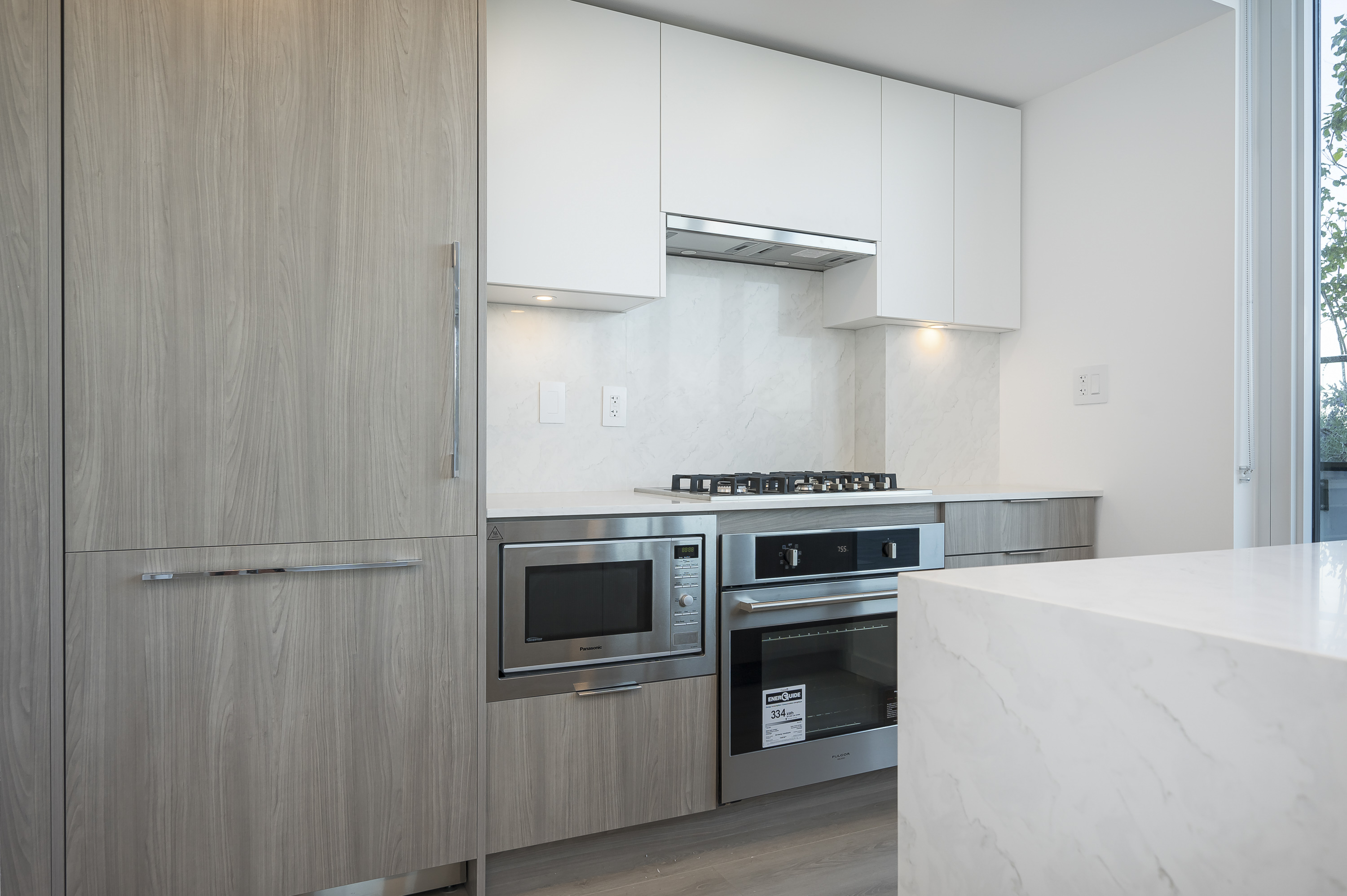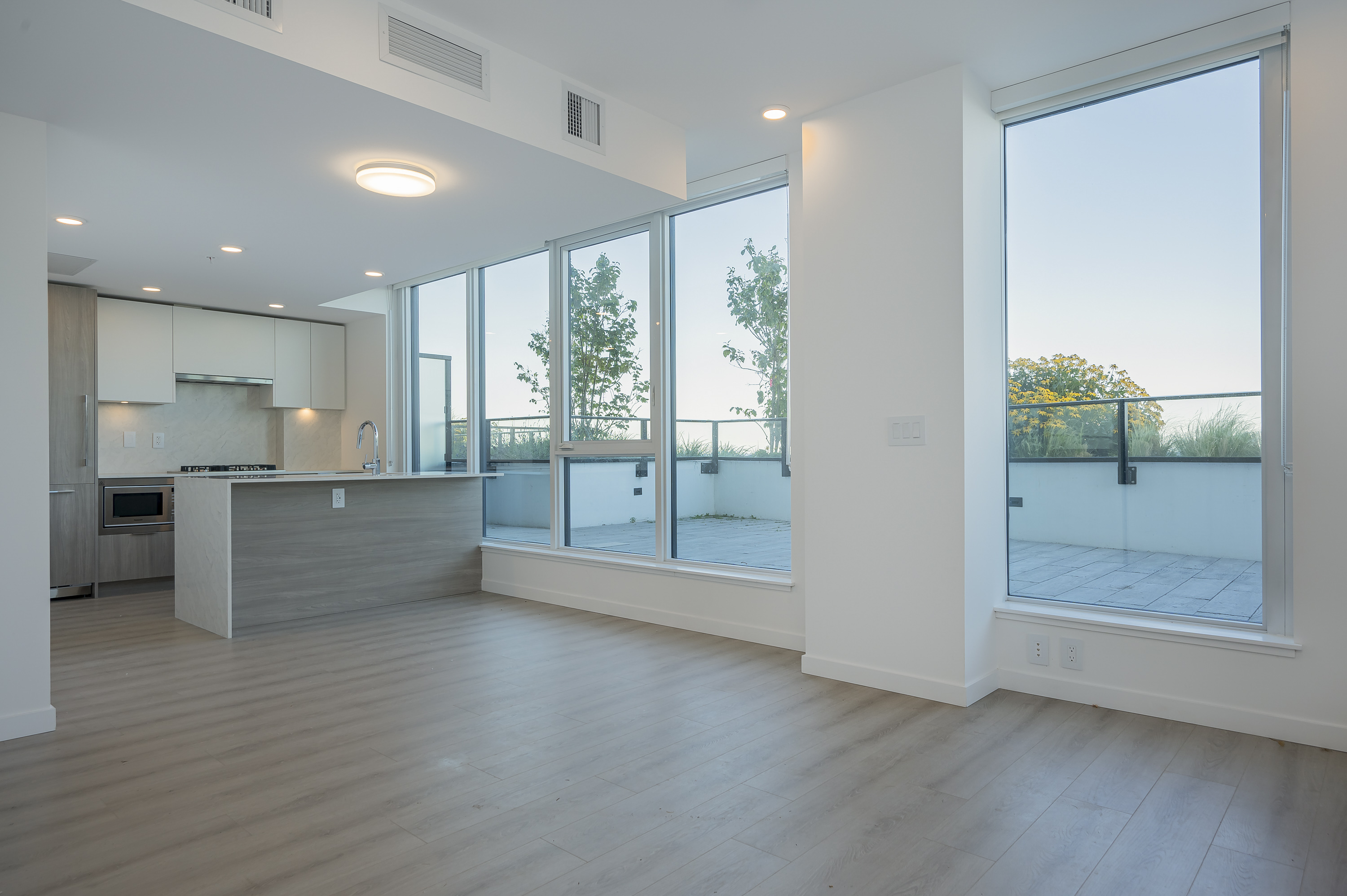 BRAND NEW MOVE IN READY W/BONUS OVER 1,000 SQ FT NW FACING WRAP AROUND BALCONY! This spacious 2 bed 2 bath home offers a functional layout with 9' ceilings, sleek two-tone cabinetry, premium Fulgor-Milano appliances with gas cooktop, and spa inspired bathrooms. Located in West Village, just a 5-min walk to Surrey Central SkyTrain, dining and parks. Enjoy top-tier amenities: rooftop lounge, BBQ area, games room, co-work space, infrared sauna, gym, yoga/spin rooms, and outdoor tai chi studio. Includes 2 parking stalls and 1 locker. A MUST SEE!