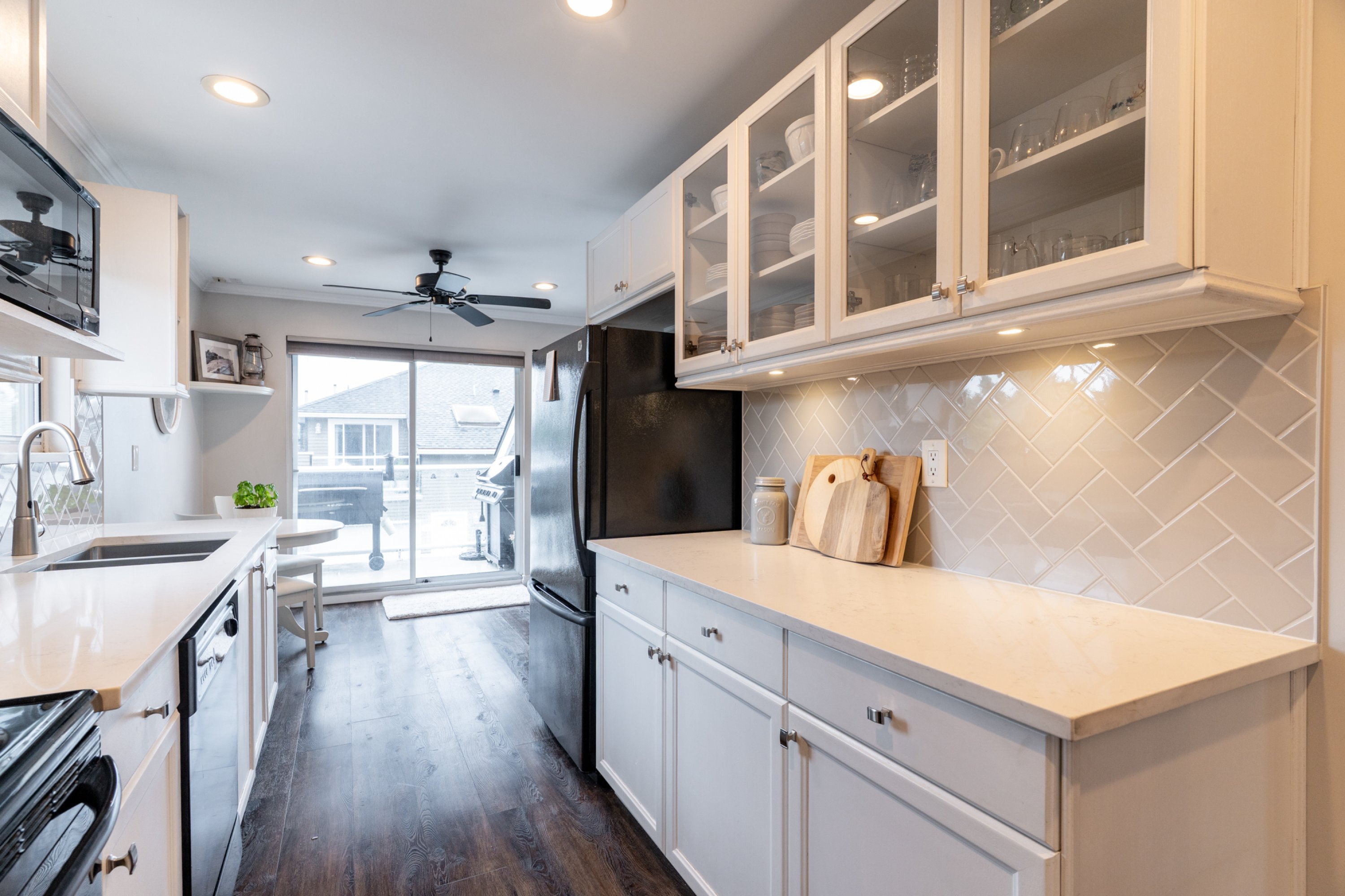 Absolutely beautiful and truly move-in ready! This tastefully updated 1,851 sq. ft. townhome offers bright, practical living with an open-concept main floor, cozy gas fireplace, and a 200 sq. ft. of outdoor space. The kitchen features white shaker cabinetry, granite countertops, tile backsplash, vinyl plank flooring, and exceptional storage. Bathrooms are refreshed with new sinks, counters, and flooring. Two generous bedrooms plus a den (easy 3rd bedroom option.) The spacious primary retreat includes a renovated 3-piece ensuite, electric fireplace, and a private balcony. Two parking stalls, including an enclosed single car garage, and plenty of storage throughout. Ideally located close to transit, schools, parks, shopping, dining, and everyday amenities. OPEN HOUSE SUNDAY APRIL 11, 2-4PM