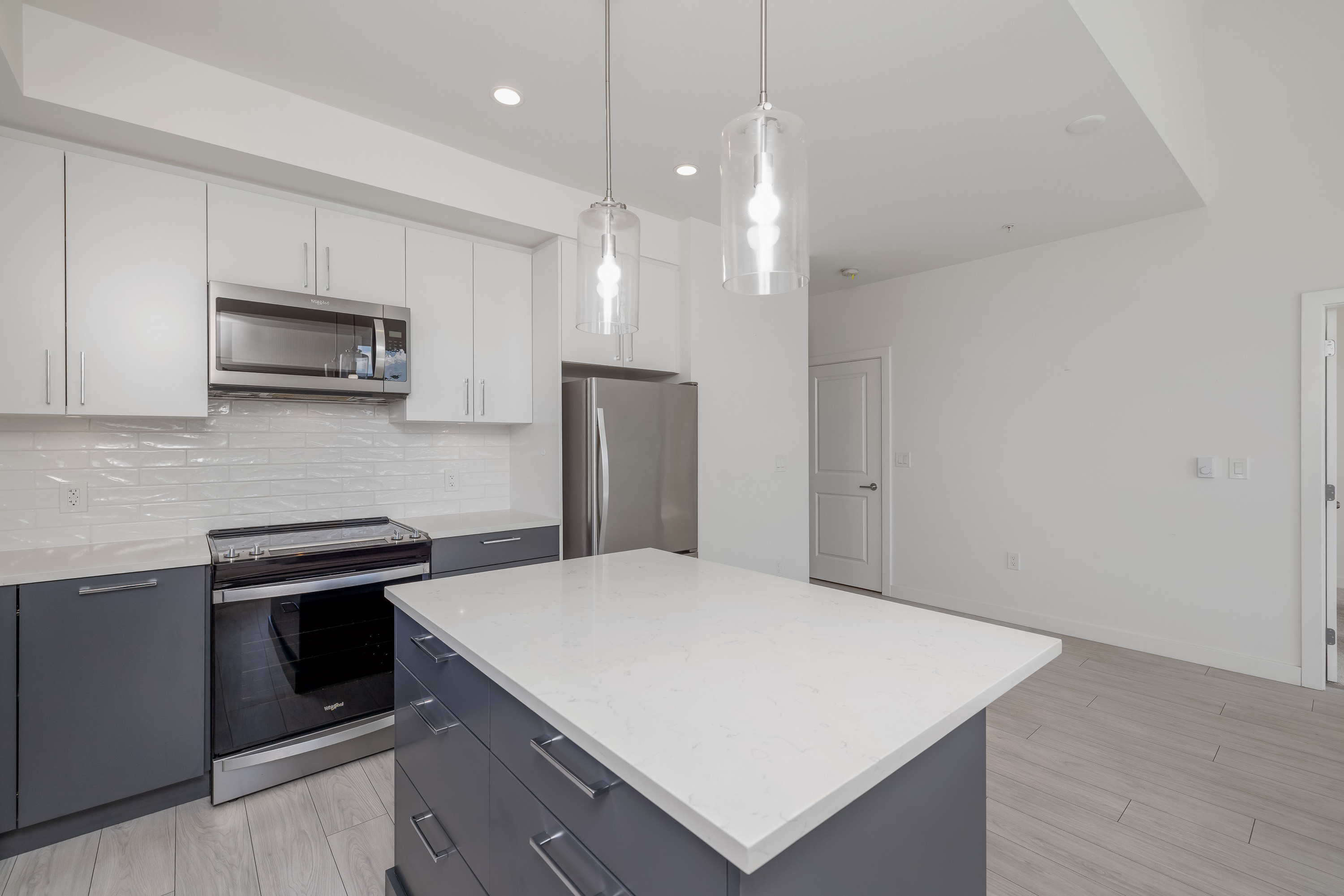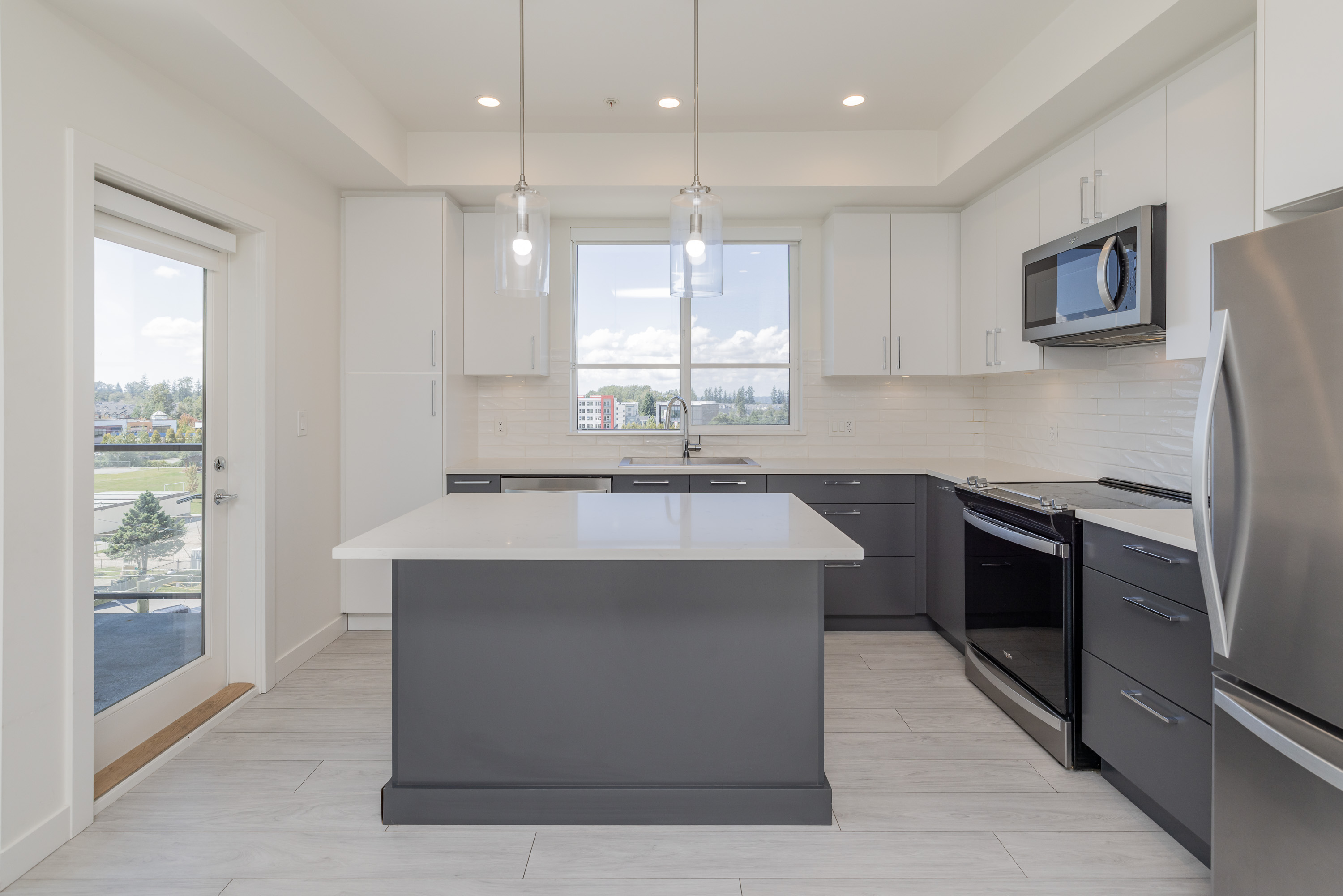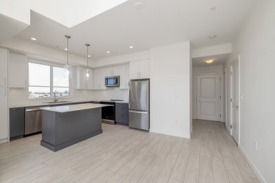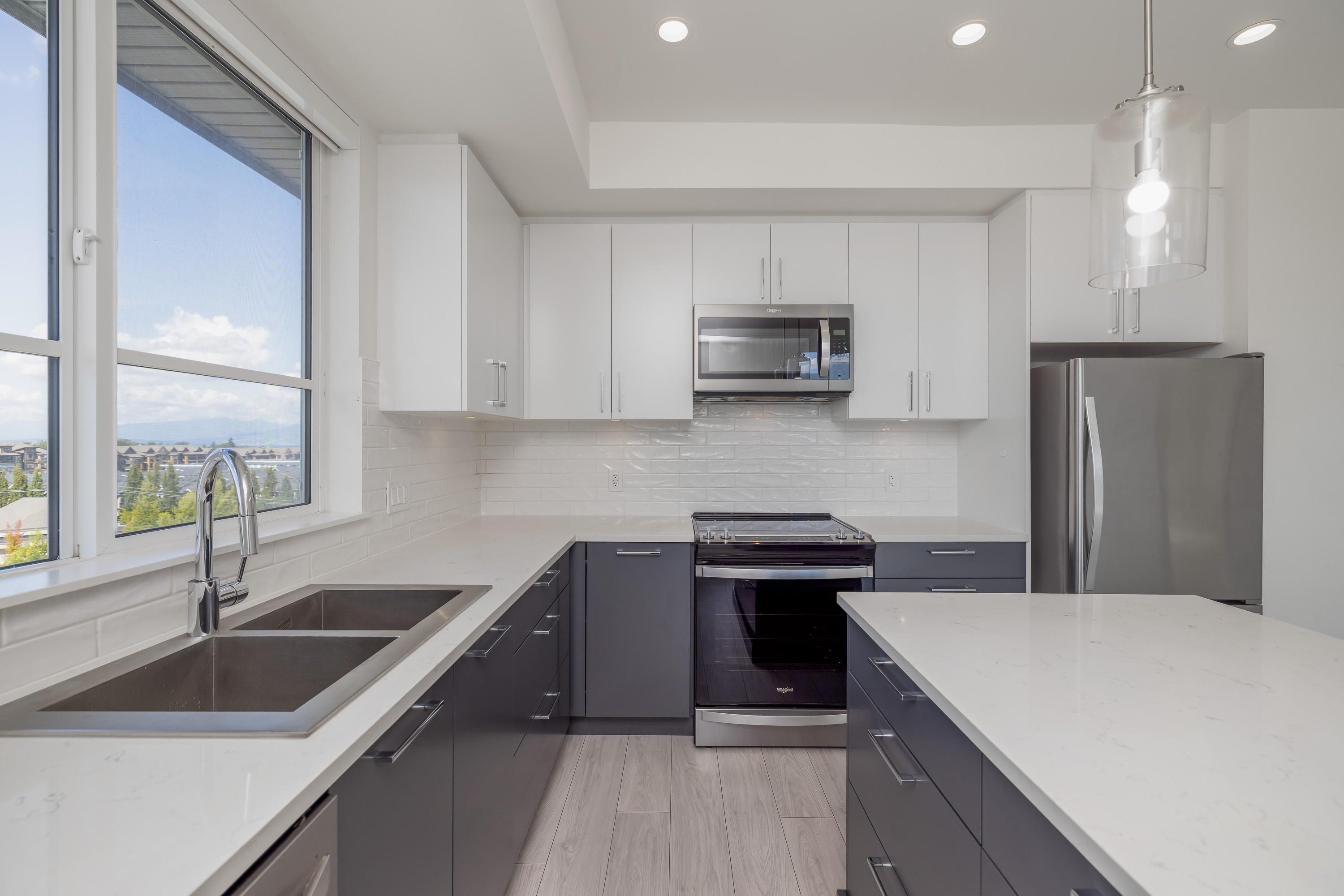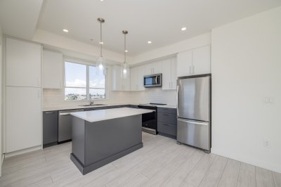 Penthouse Living at it's Finest! Spacious TOP FLOOR CORNER 875 sqft unit has 2 Bedrooms, 2 Bathrooms and soaring 13 Foot High Ceilings! Located at the heart of Willoughby with transit, shopping, restaurants and top rated schools steps from your home. Whether you're sitting inside or on your balcony, enjoy the all day South/East Facing Sun filled views! Modern kitchen has stainless steel appliances, quartz countertops and a spacious kitchen island. Amenities include Outdoor roof top BBQ Lounge with indoor and outdoor spaces. Main Floor has a Gym. Pets and Rental are welcome. Includes 1 parking and 2 lockers. Ready for you to move in!