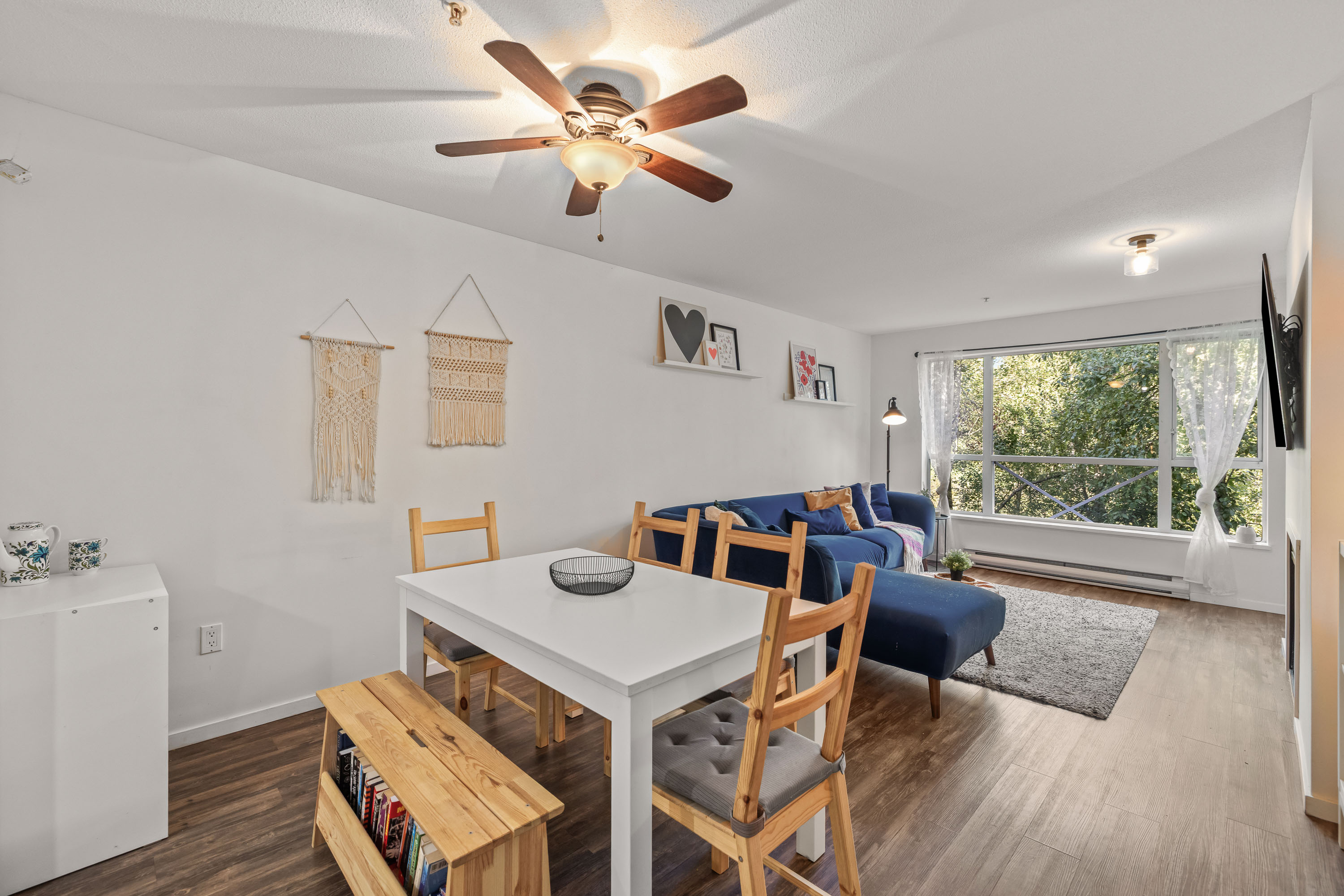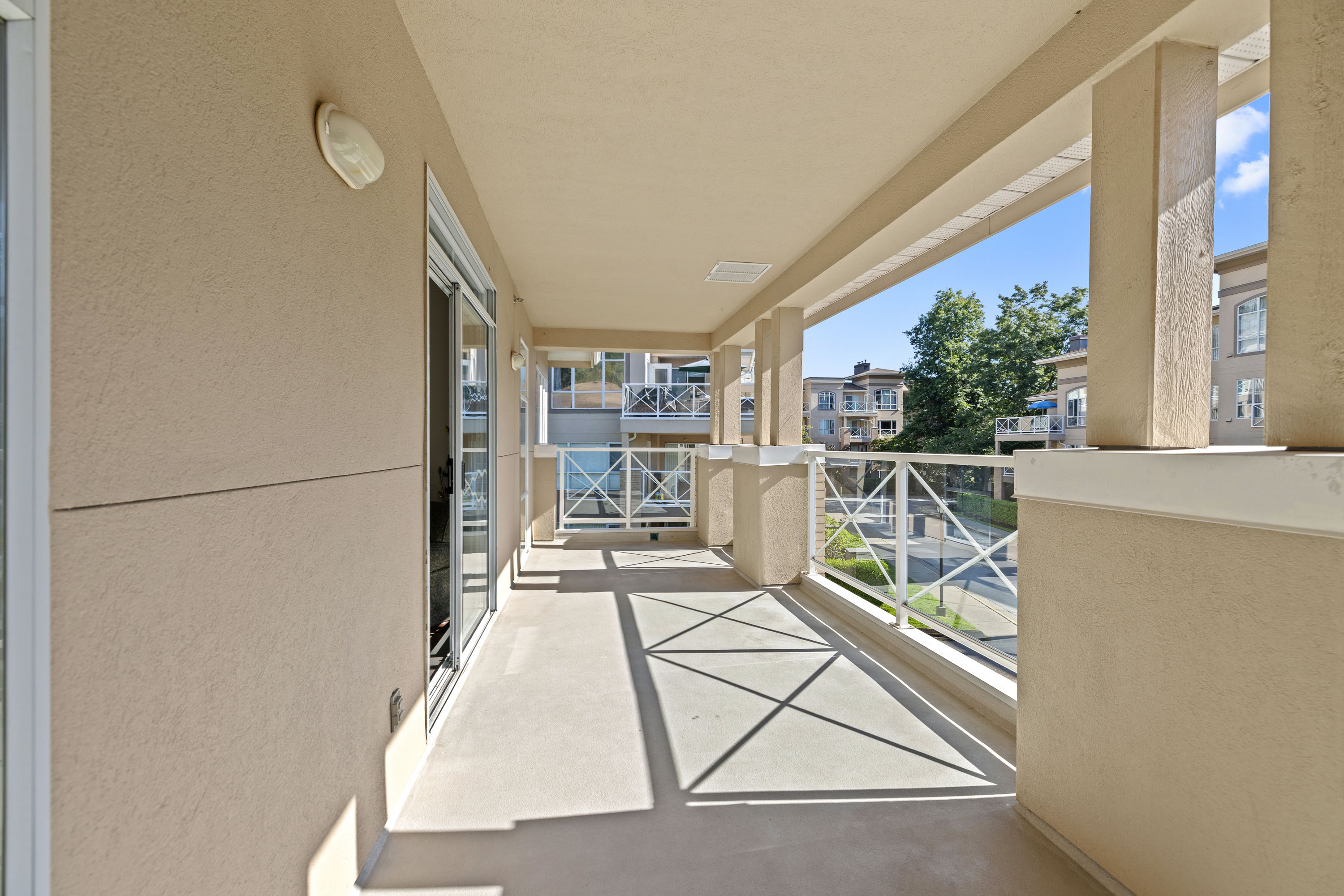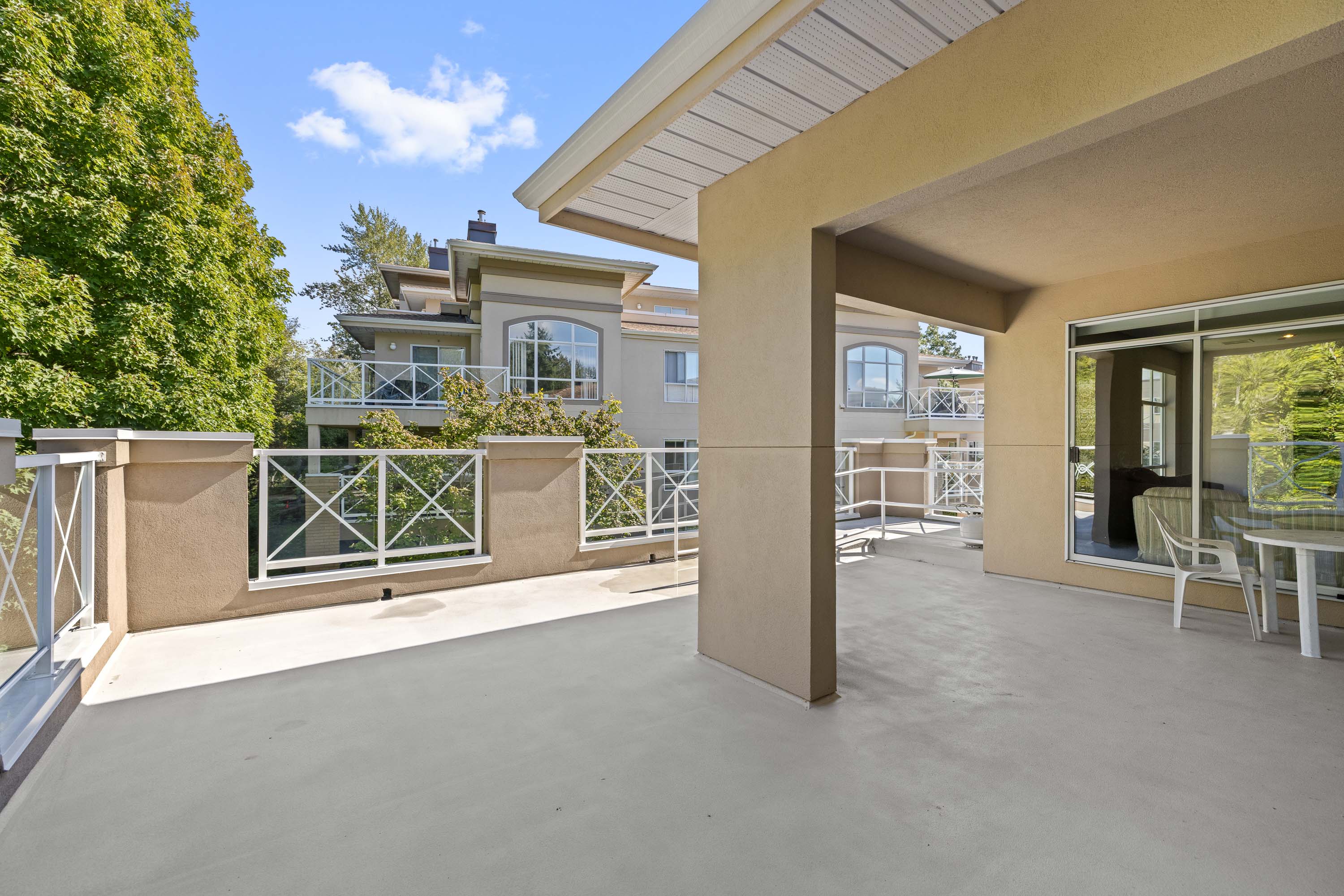 Welcome to The Crescent! This stunning 2 bed, 2 bath condo boasts a bright, spacious floorplan and gorgeous scenery out every window. Updated open-concept kitchen has stainless steel appliances and a large island. Primary bedroom is equipped with a gorgeous (full) ensuite and walk-in closet. Second bedroom is generously sized with sliding door to patio where you can enjoy lush green views and birds singing. Building amenities include a bicycle room, gym, sauna, club house with a full kitchen, games room and library. Additional features include 2 secured parking stalls, a storage locker on the same floor, ample visitor parking. Located walking distance to Gates Park, Traboulay Trail along the Coquitlam River, downtown Poco shopping, the new Poco Community/Rec Centre and transit. Call today!