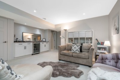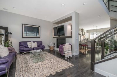 Beautiful, spacious 4 bedroom family home w bright open plan for entertaining & quality family life. Generous kitchen w exceptional counterspace, massive island w storage & seating. Gleaming stone countertops & SS appliances. Central A/C & gas fireplace for all season comfort. Powder room on main. Elegant primary bedroom w vaulted ceiling, walk-in closet & balcony. Professionally fully finished basement w sep entrance has bedroom, full bathroom & huge rec room. Suite potential. Enjoy sunny south-facing backyard w patio for bbqs. Artificial turf, so no mowing needed. Double detached garage off laneway w 3rd open parking space. Located on quiet tree-lined residential street. Walk to Edgewood Elem and pool.
