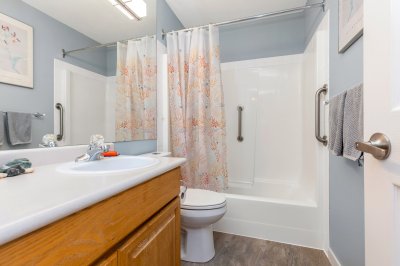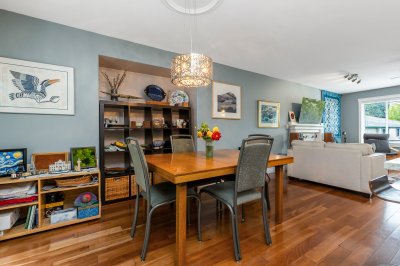 Still Creek is a family oriented town house complex, backing on to green space providing a private and quiet outdoor space. The large town house has 4 bedrooms, a large flex room, updated kitchen and bathrooms. The full size 2 car garage has plenty of room for a work shop and storage. The kitchen, dining and living area are open, bright and modern. A gas fireplace provides a cozy space for relaxing or entertaining. The soaker tub in the recently renovated, beautiful bathroom will ease all your stress away. This home offers loads of storage for a busy family.