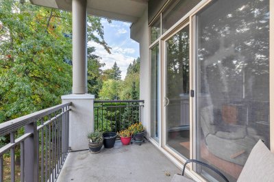 TOP FLOOR 1 bedroom plus den corner condo. This lovely spacious home is located on the second floor and YES is the TOP FLOOR!! Facing South/West on the quiet side of the building. The high living room ceiling with floor to ceiling windows give loads of natural light. Great quite location in the building facing South over the court yard. All newer appliances (clothes washer/dryer, dishwasher, stove and fridge) purchased in 2019 and 2020. The nice size den has a big window and a built in wall unit. 1 underground parking spot and storage locker. 1 dog or 1 cat allowed. Fantastic location walking distance to shopping and restaurants at McCallum Crossing. Easy access to Highway 1.