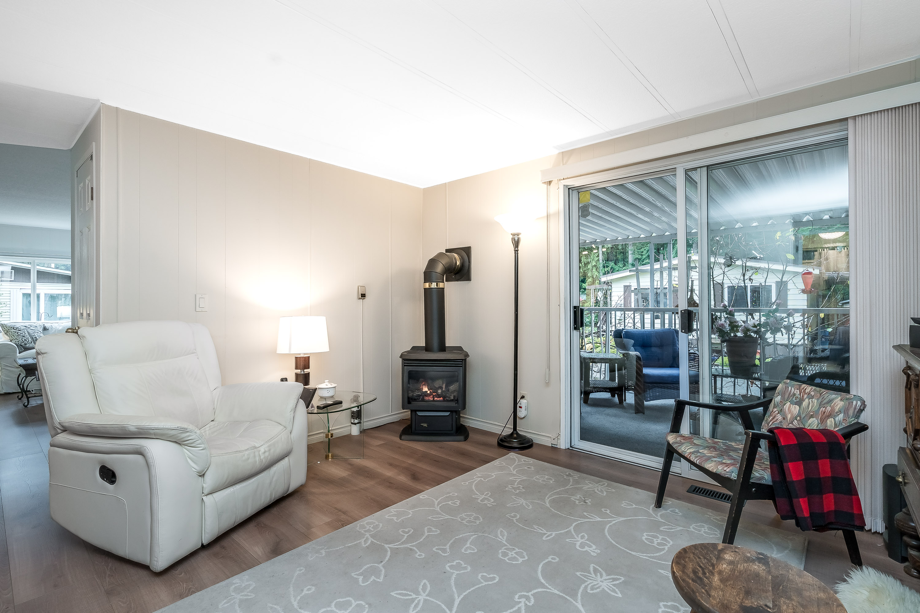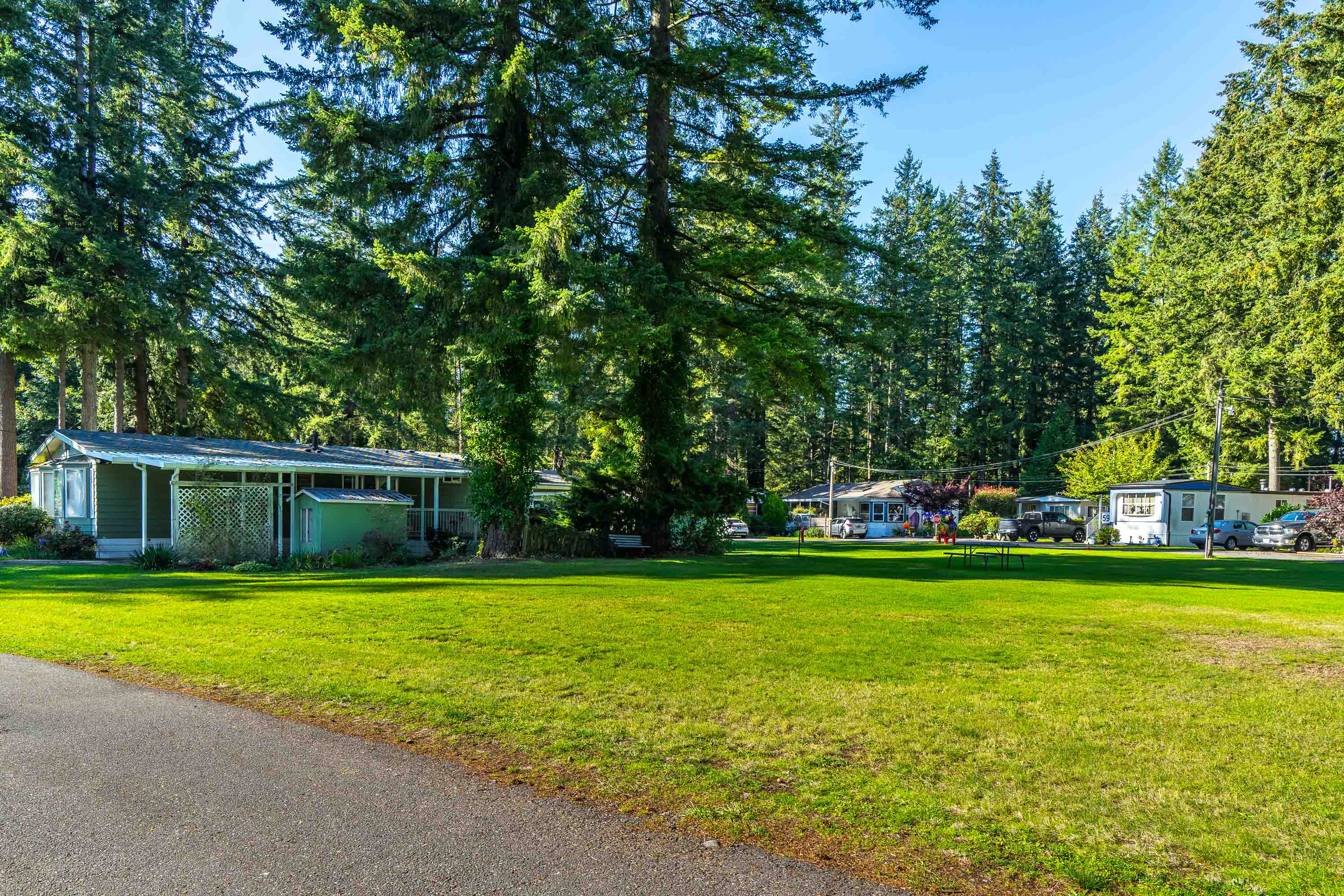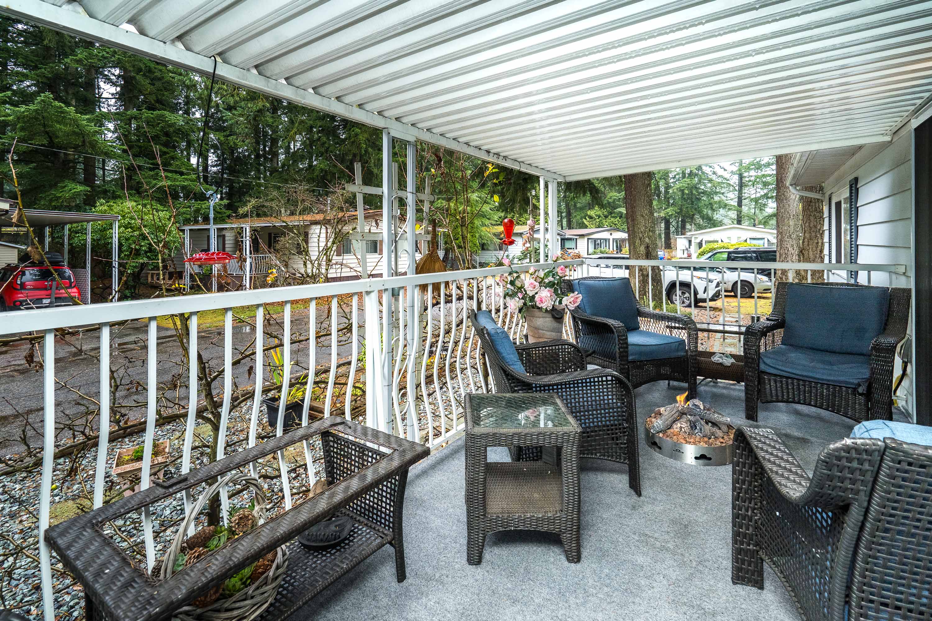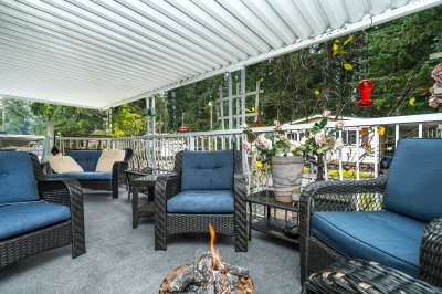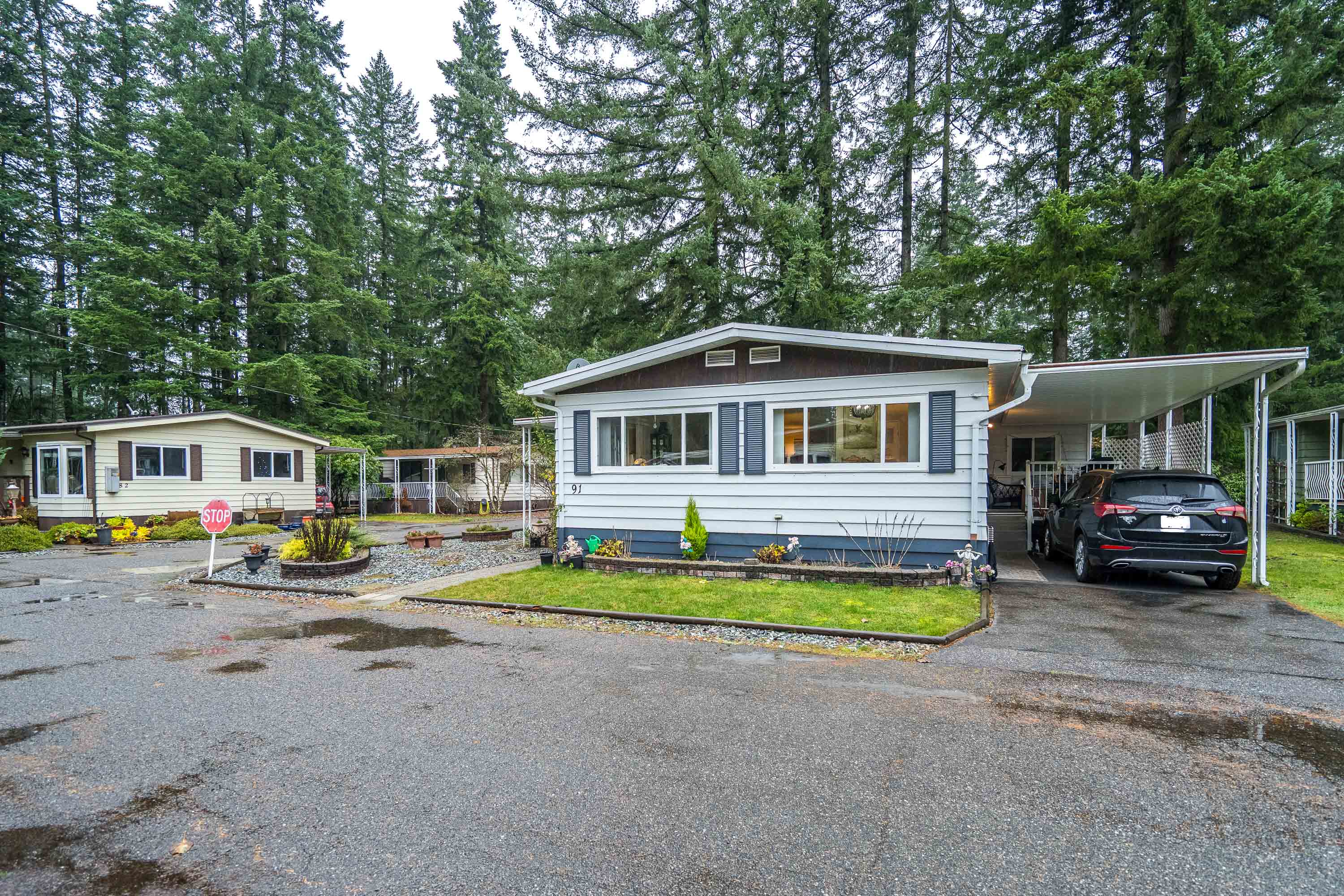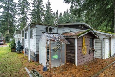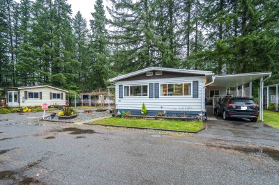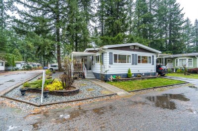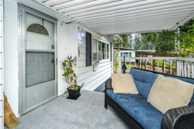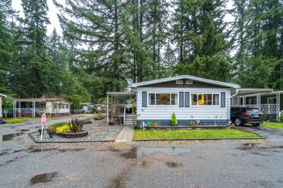 Not ready for condo living? This 2 bedroom 2 bath home in Fernridge Park! This home has been completely updated and is bright and beautiful, bright open Ikea kitchen, all new appliances, granite counter tops with adjacent family room that offers gas fireplace, spacious dining/Livingroom, MBR features full ensuite with walk in shower! Nestled among mature trees, this corner lot offers a peaceful setting with two covered decks for year-round BBQs, entertaining and also has covered parking. There's loads of space for your gardening desires, two large sheds for storage or create a workshop. The bonus room off the deck has its own entrance and could be a studio, or hobby space. Enjoy the community clubhouse & welcoming neighbors in this well-run 55+community. RV parking, pad rent approx 900