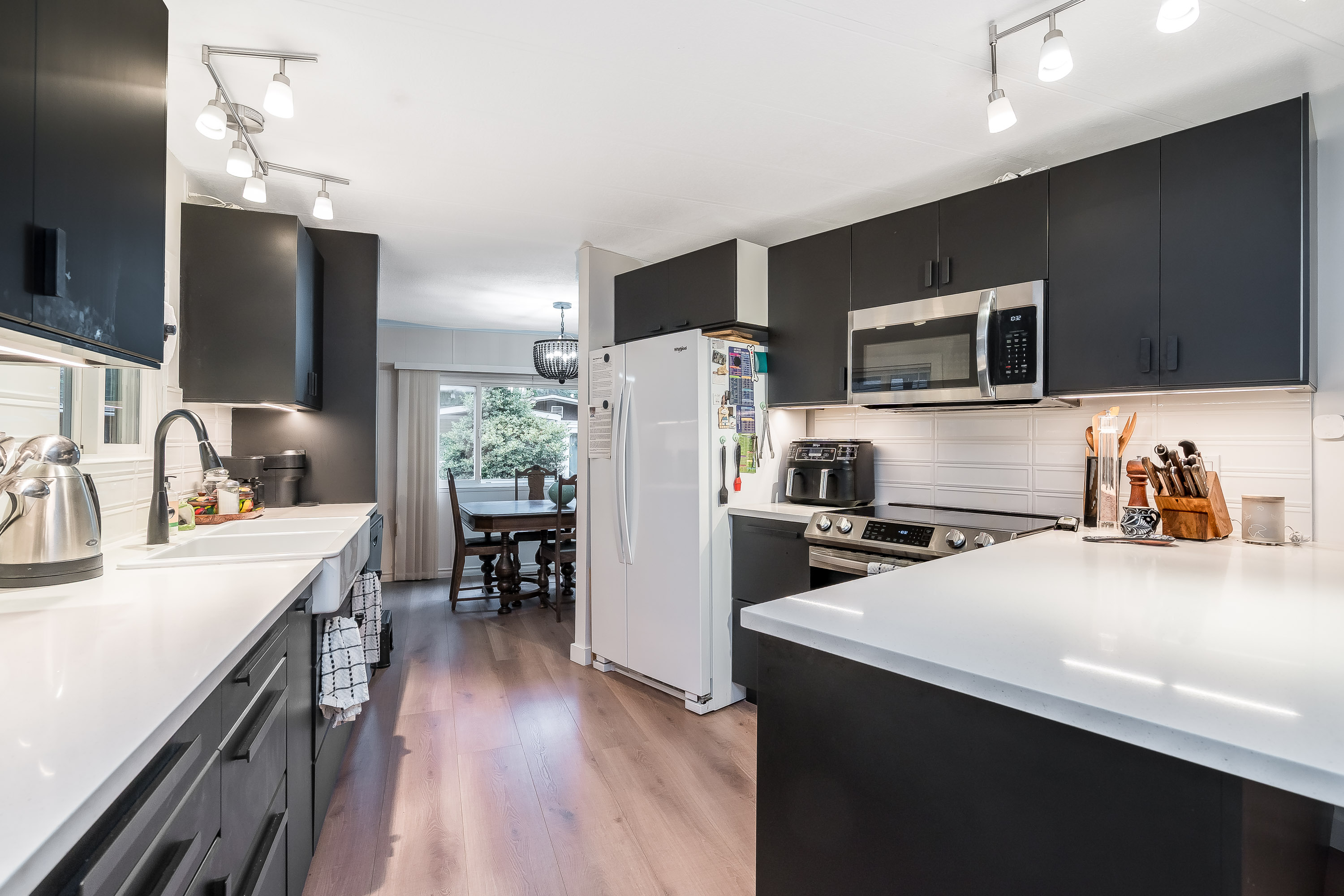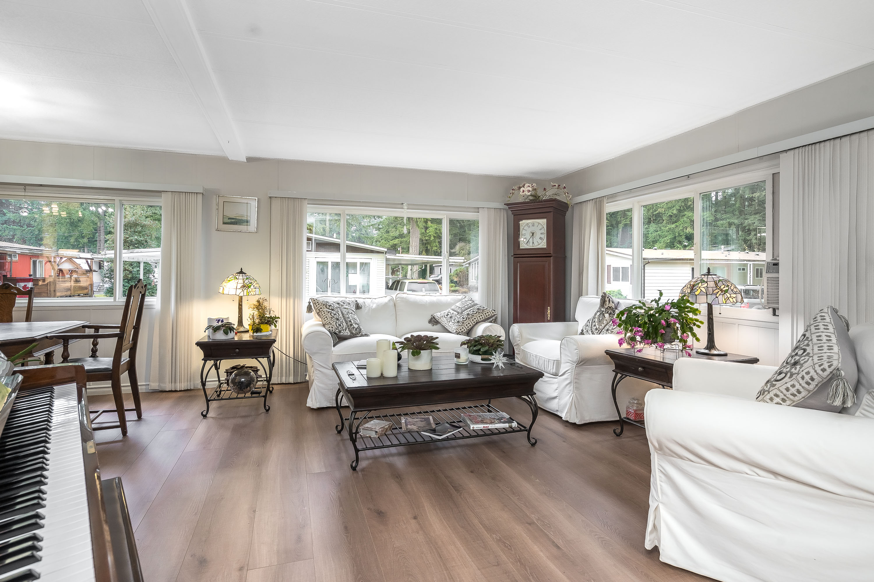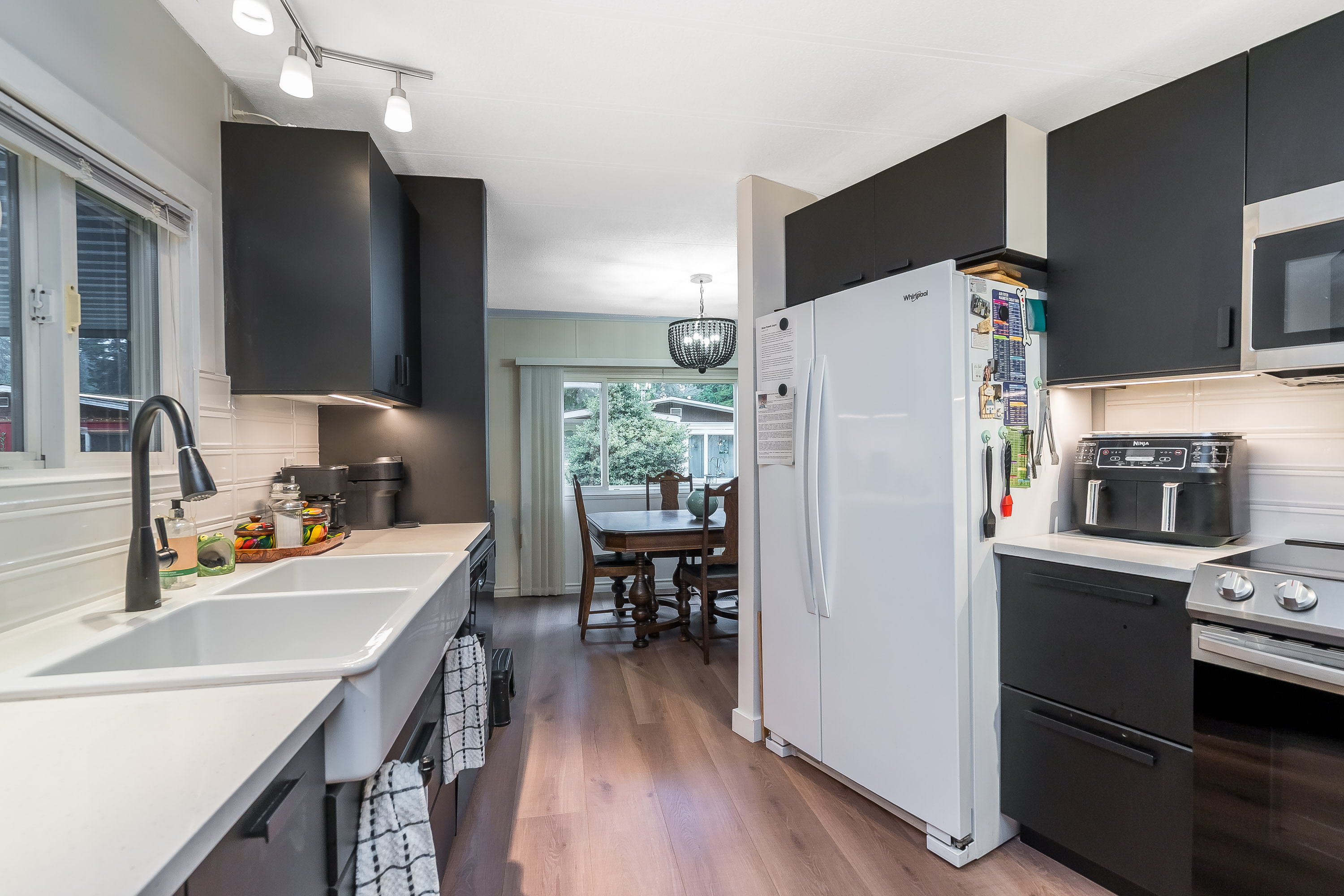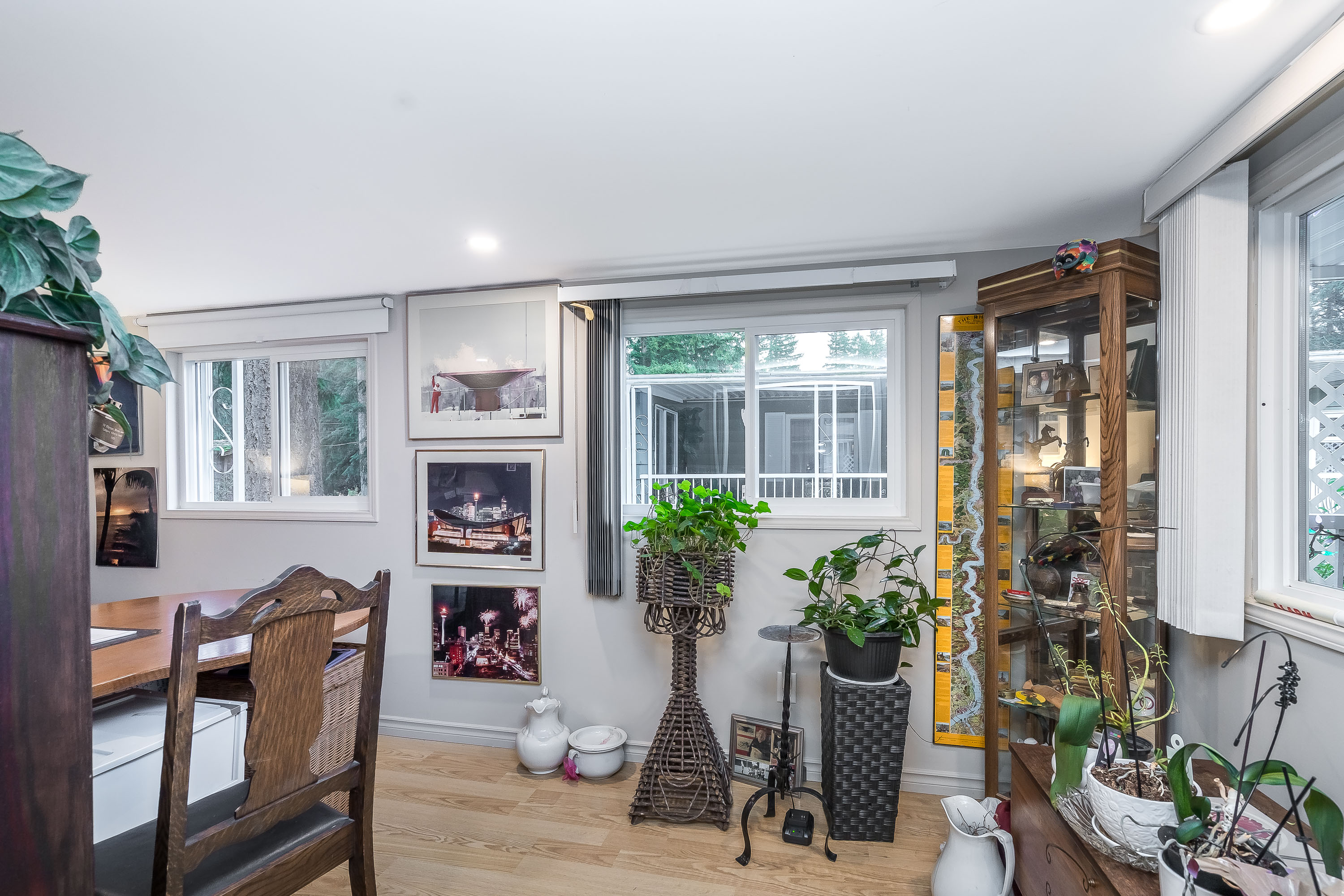 Not ready for condo living? This 2 bedroom 2 bath home in Fernridge Park! This home has been completely updated and is bright and beautiful, bright open Ikea kitchen, all new appliances, granite counter tops with adjacent family room that offers gas fireplace, spacious dining/Livingroom, MBR features full ensuite with walk in shower! Nestled among mature trees, this corner lot offers a peaceful setting with two covered decks for year-round BBQs, entertaining and also has covered parking. There's loads of space for your gardening desires, two large sheds for storage or create a workshop. The bonus room off the deck has its own entrance and could be a studio, or hobby space. Enjoy the community clubhouse & welcoming neighbors in this well-run 55+community. RV parking, pad rent approx 900
