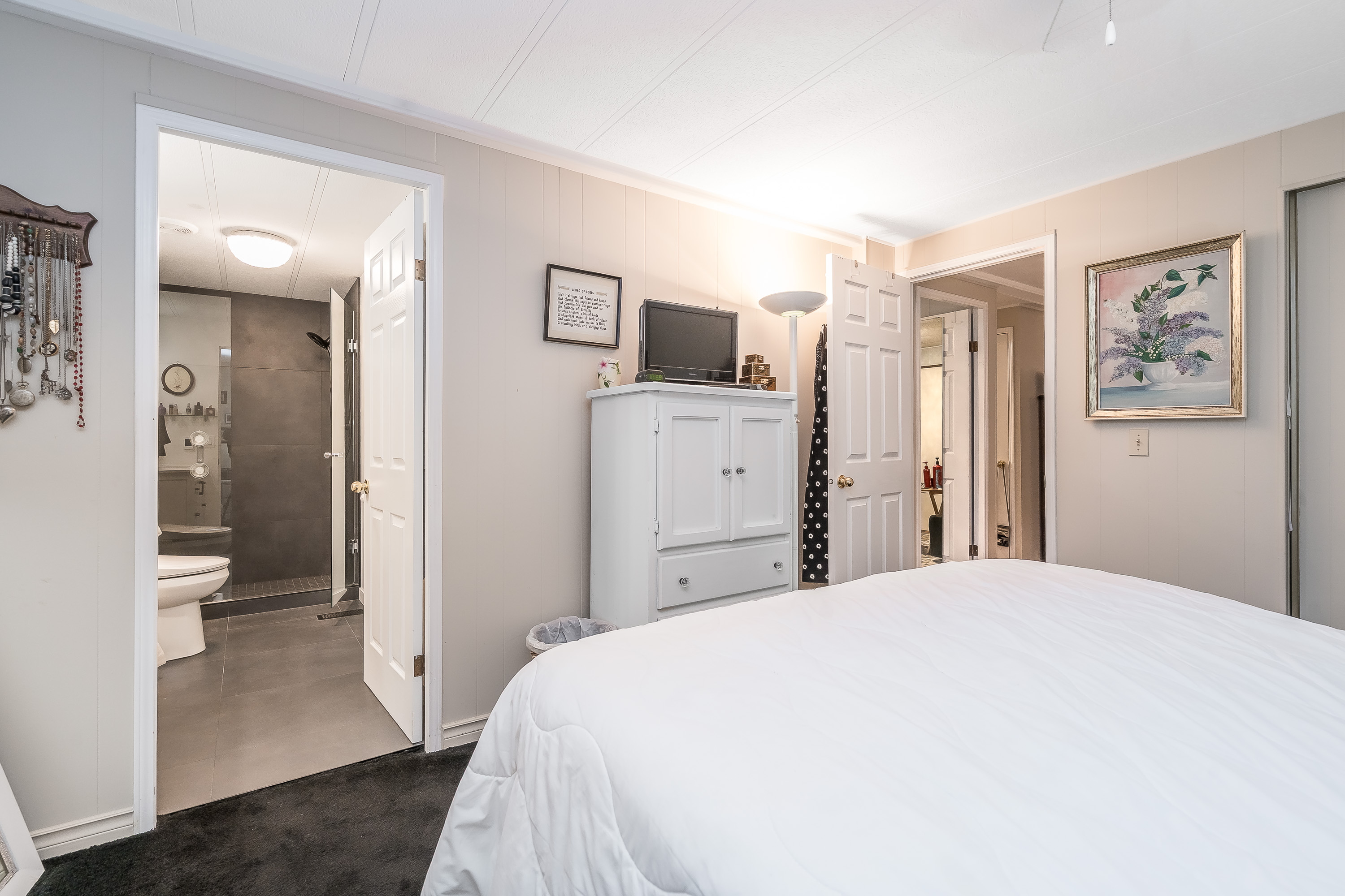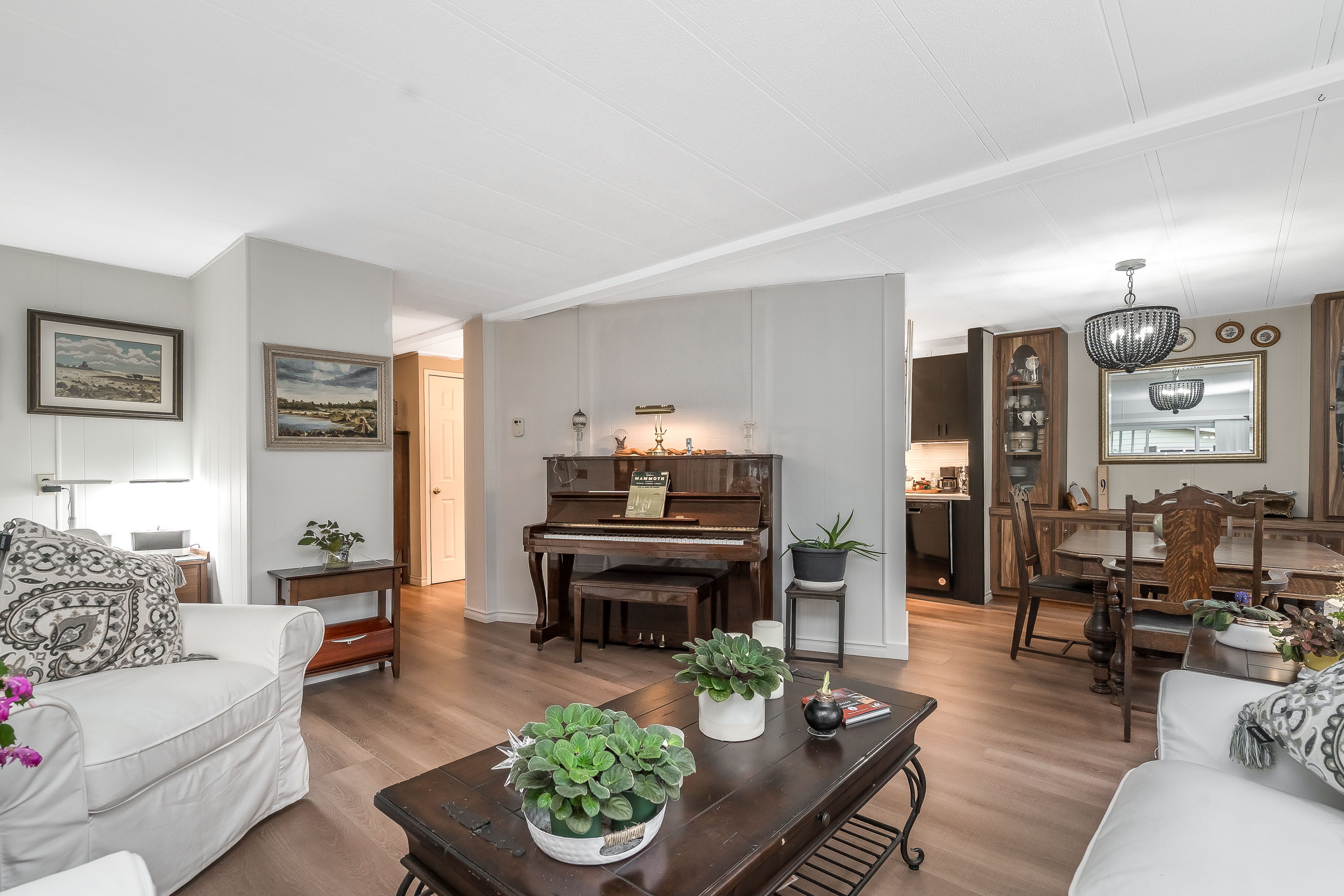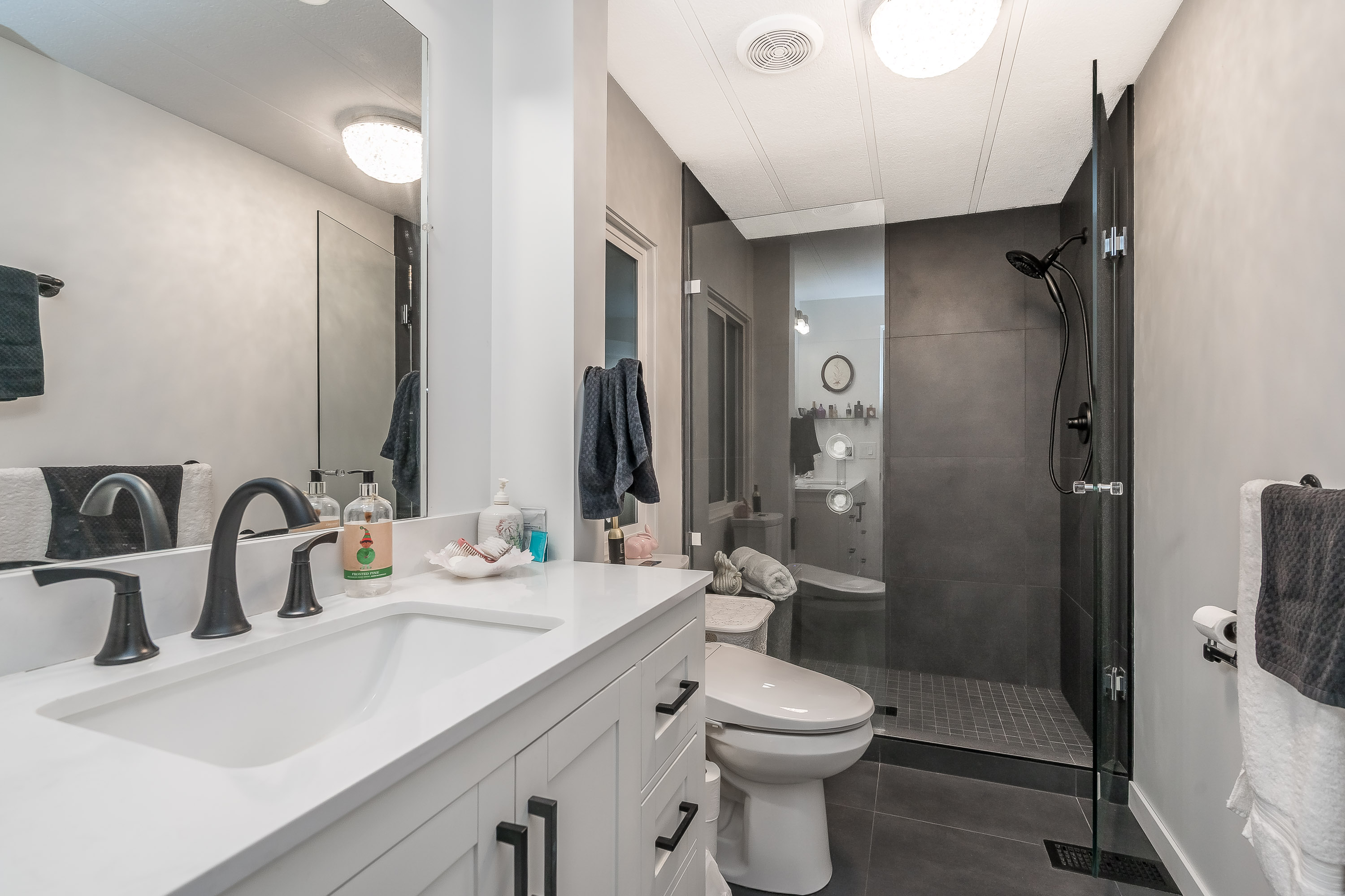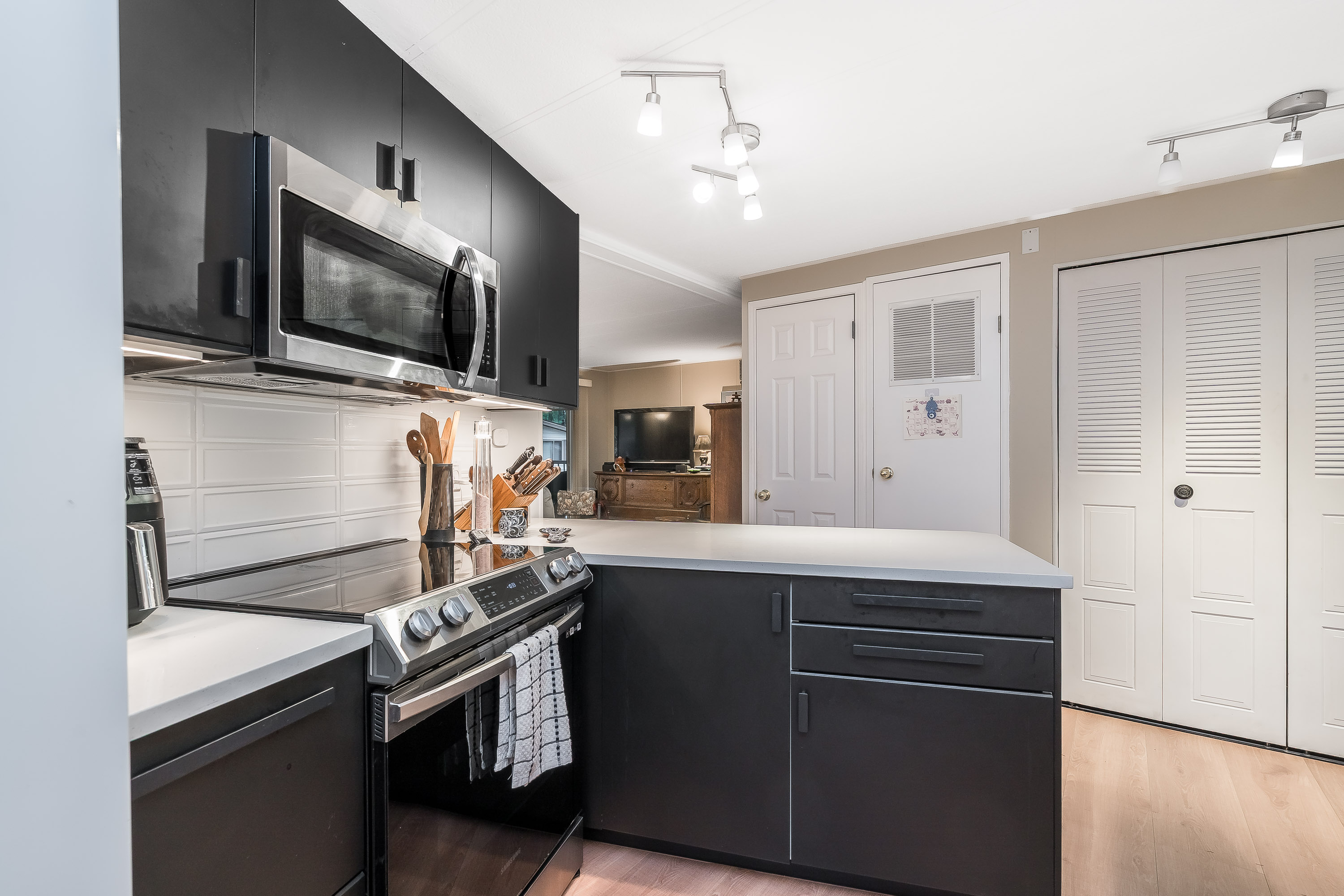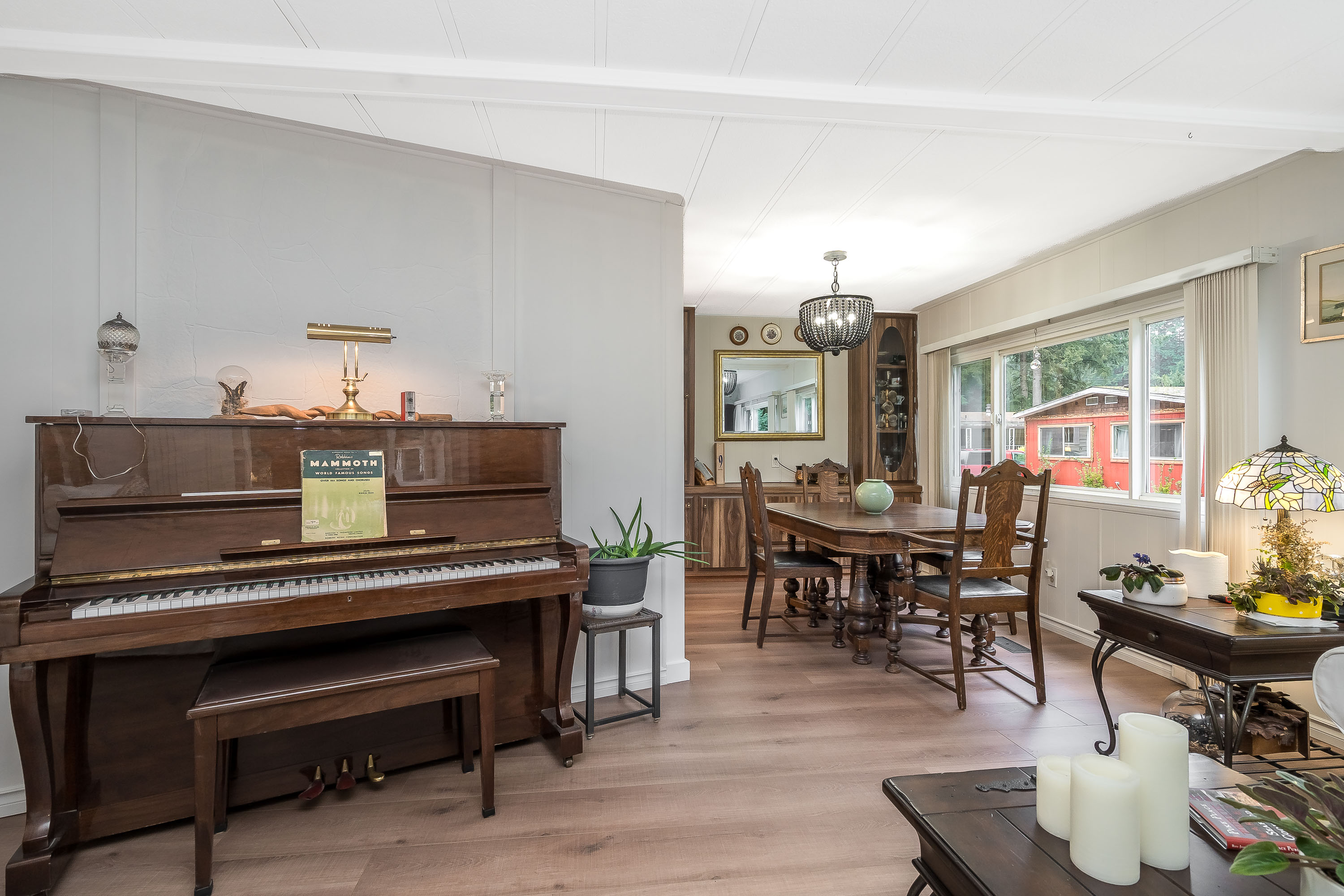 Not ready for condo living? This 2 bedroom 2 bath home in Fernridge Park! This home has been completely updated and is bright and beautiful, bright open Ikea kitchen, all new appliances, granite counter tops with adjacent family room that offers gas fireplace, spacious dining/Livingroom, MBR features full ensuite with walk in shower! Nestled among mature trees, this corner lot offers a peaceful setting with two covered decks for year-round BBQs, entertaining and also has covered parking. There's loads of space for your gardening desires, two large sheds for storage or create a workshop. The bonus room off the deck has its own entrance and could be a studio, or hobby space. Enjoy the community clubhouse & welcoming neighbors in this well-run 55+community. RV parking, pad rent approx 900
