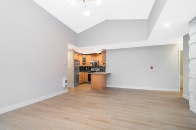 Stunning upper corner unit has it all — space, style, and comfort. With vaulted ceilings, new appliances, and modern blinds this beautifully updated 2-bed, 2-bath home offers elegance in every detail. Natural light pours through large window enhancing the open-concept living space while the cozy fireplace adds warmth and charm. Spacious primary suite features an en-suite bathroom and a generous walk-in closet. Second bedroom is ideal for guests, family, or a home office. Large private deck with a partially covered patio, complete with a sitting area and garden — perfect for relaxing, dining, or enjoying fresh air year-round. Centrally located, close to shops, restaurants, parks, and offers quick highway access. Move-in ready, combines convenience, modern upgrades, and a peaceful lifestyle.