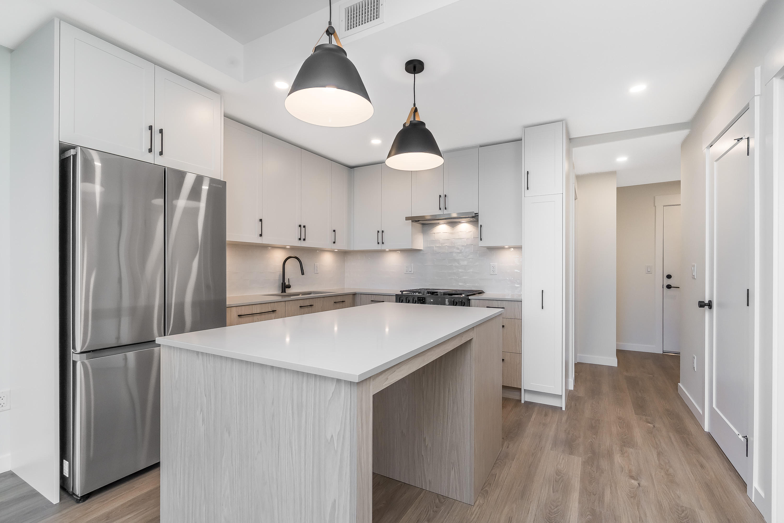 Introducing Jackman at Aldergrove Town Centre!! This perfect 1st time buyer home faces North, away from Fraser Hwy, and offers built in A/C, a gourmet kitchen with Top of The Line Samsung s.s. appliances and incl a gas range, pantry and a large quartz island! Large windows allow plenty of natural light and a wonderful view of the mountains which will never be obstructed. This well built complex has so much to offer with an exercise centre, clubhouse, day care, a bike room and in-suite laundry! The den (with a closet) is perfect for your home office. A short walk to the new $11ml rec centre, shopping and restaurants/cafes. Quick, easy access to Hwy 1 & the U.S. border. 1 parking & 2 storage lockers. 2 dogs or 2 cats or 1 of each allowed. Here's your opportunity to own a brand new home!!