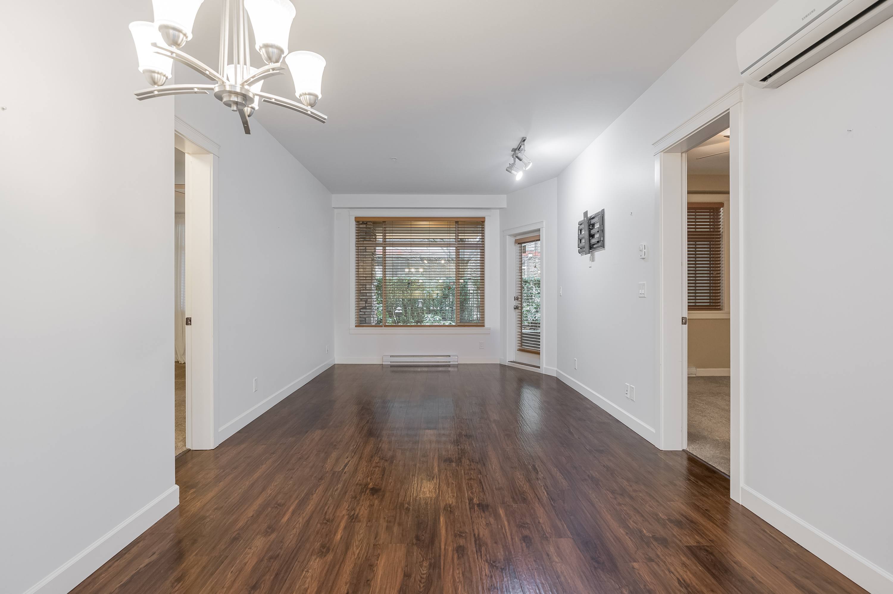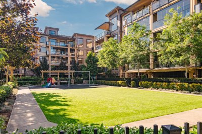 2 BED | 2 BATH | LARGE FLEX/DEN | PRIVATE PATIO. Bright & beautifully designed OPEN CONCEPT home that is functional, well laid out & exceptionally built. Bedrooms are positioned on opposite sides for added privacy, each with walk-through closets and ensuites featuring heated floors. Versatile DEN/FLEX room with closet works as a home office or potential 3rd bedroom. Updated white kitchen with quartz counters, 5-burner stove, walk-in pantry & BRAND NEW fridge with ice & water. Large private patio for year-round use. AIR CONDITIONING & high-efficiency heat pump. Updated carpets in both bedrooms. Vacant & move-in ready. 2 parking stalls plus secure garage-style storage with power. Excellent location close to shops, restaurants, schools, trails & HWY 1. Strata fee incl gas, hot water & gym.