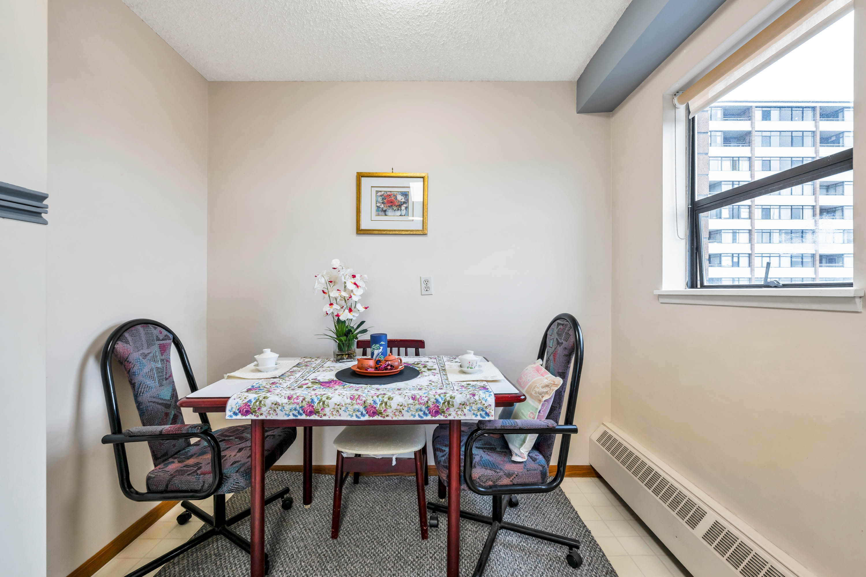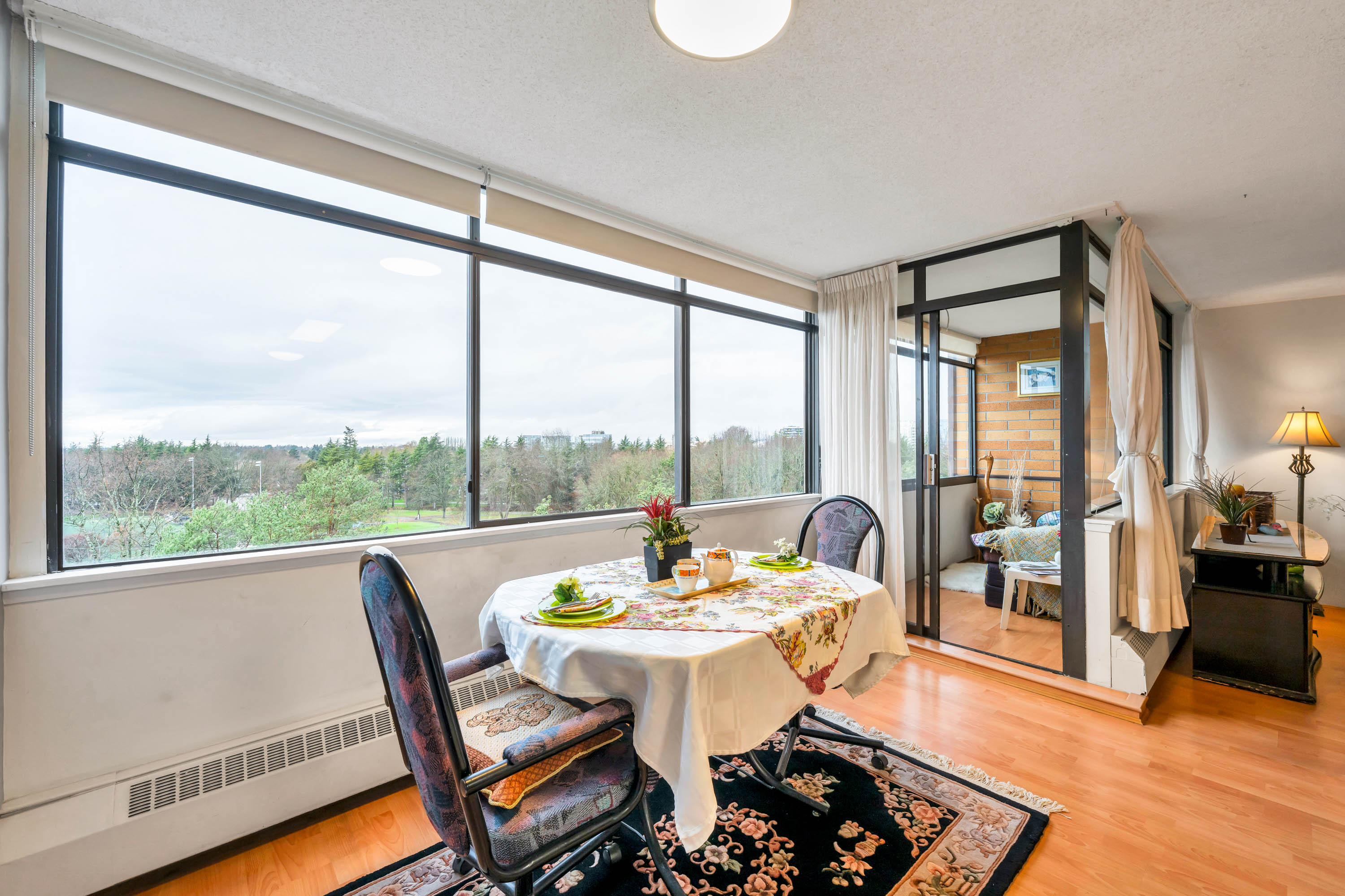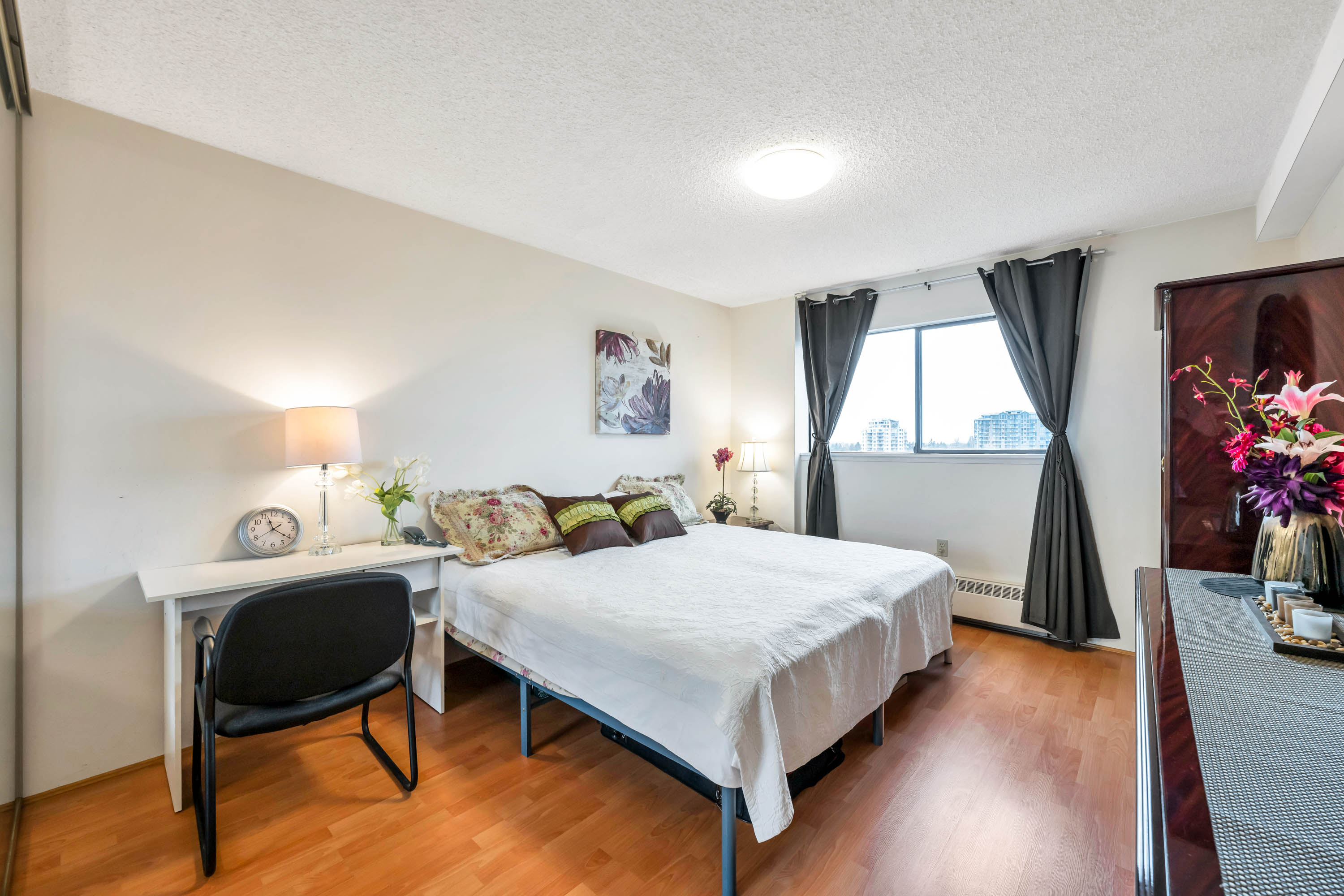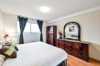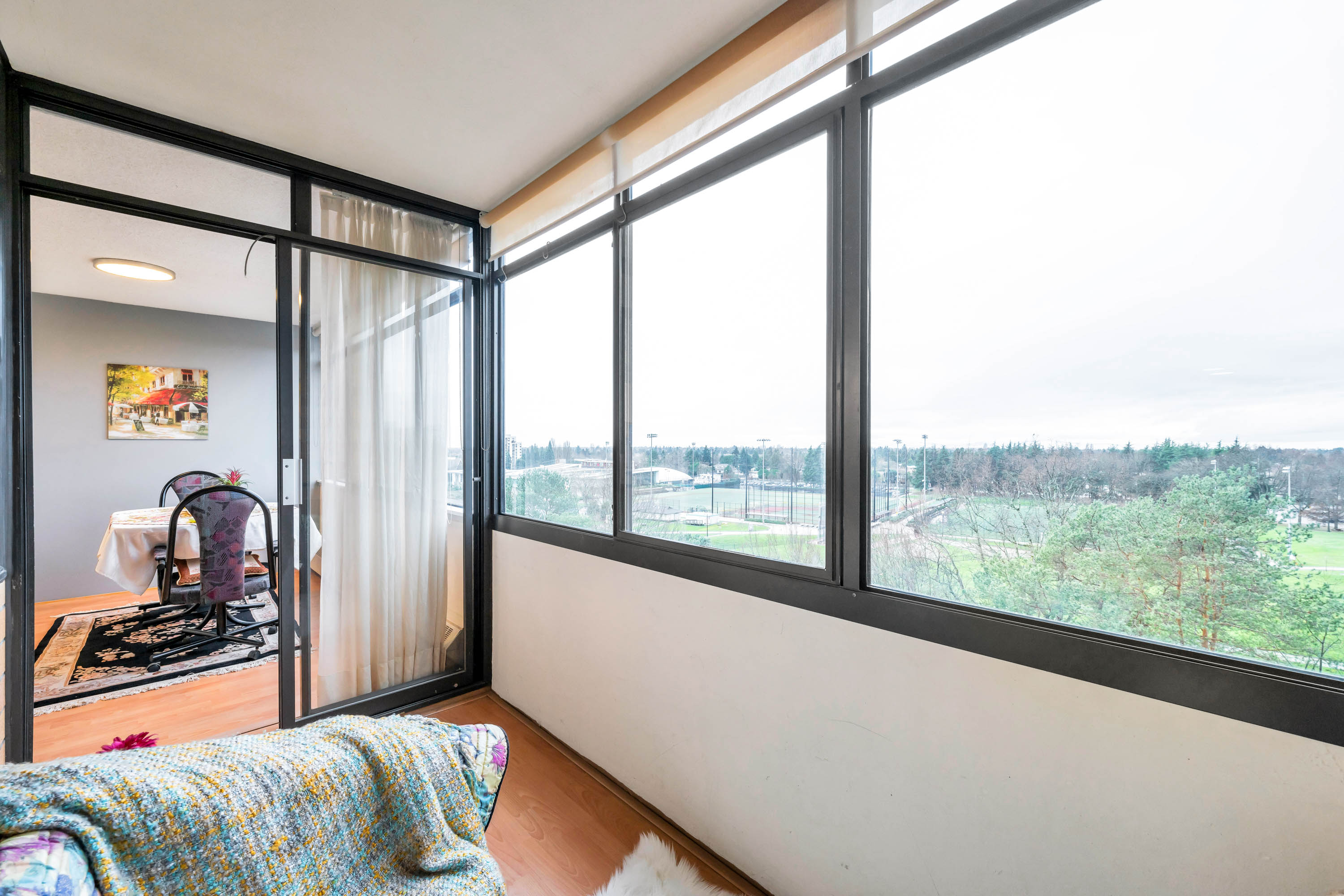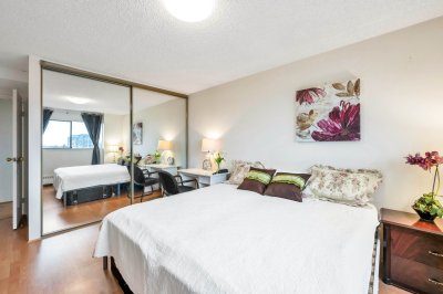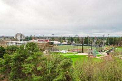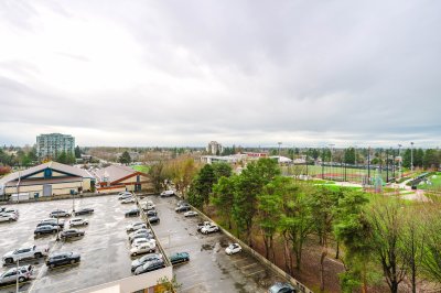Day and night views of Minoru Park from this spacious corner 1 bedroom unit is spectacular. The largest 1 bedroom floor plan in the building. Concrete high-rise with prime location ! Regency Towers just a short stroll to Richmond Centre Mall, Canada Line SkyTrain, Aquatic Centre, Minoru Park at your doorstep, & restaurants, stores & much more. Bright unit with 180Β° unobstructed views of the city, park & mountain. Extra window in this corner unit provides cross breeze making it very comfortable during summer months. Enclosed balcony can be used as den/office & its 61 sq. ft is not included in the 833 SF. Donβt miss!