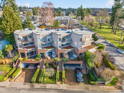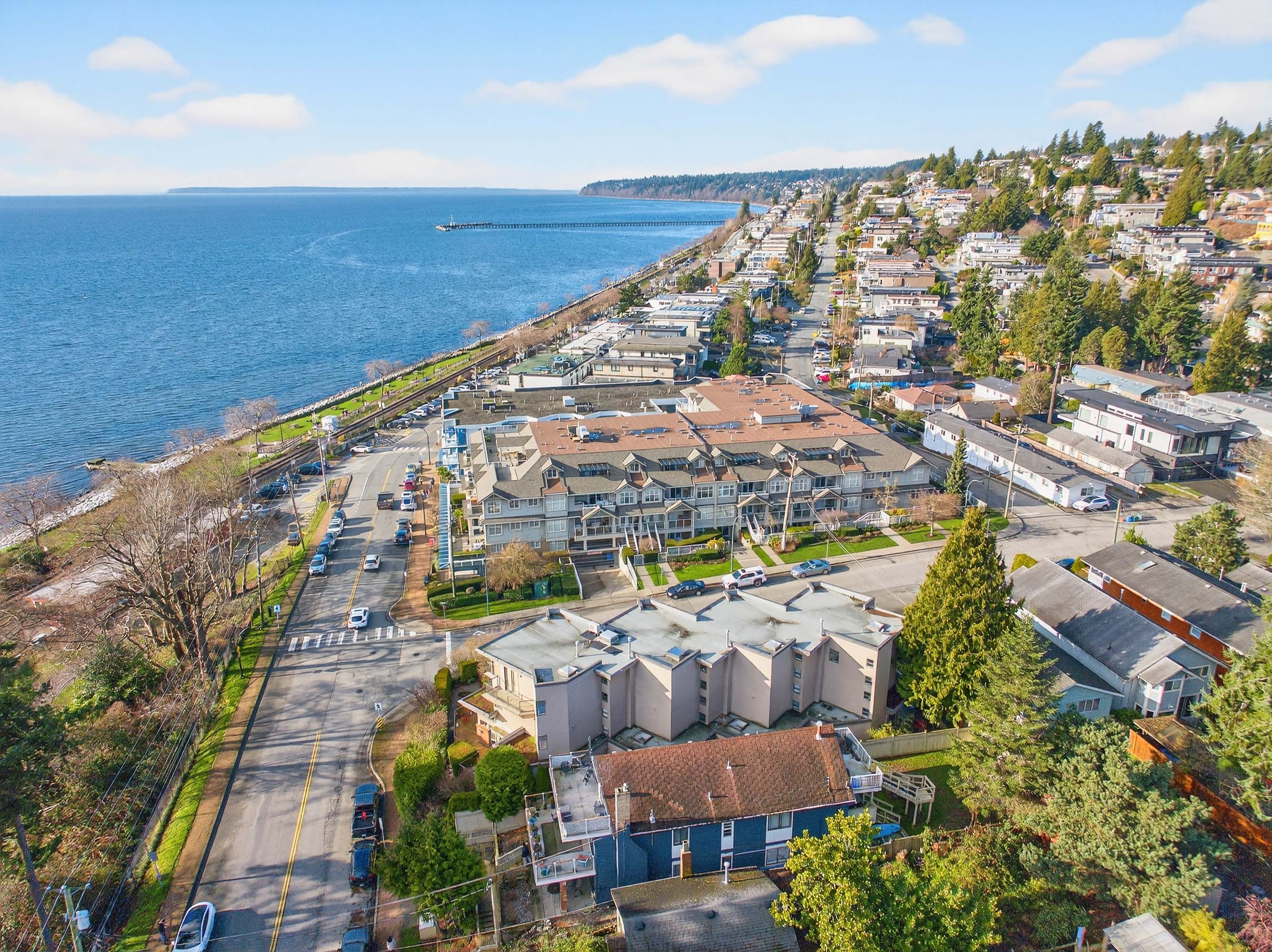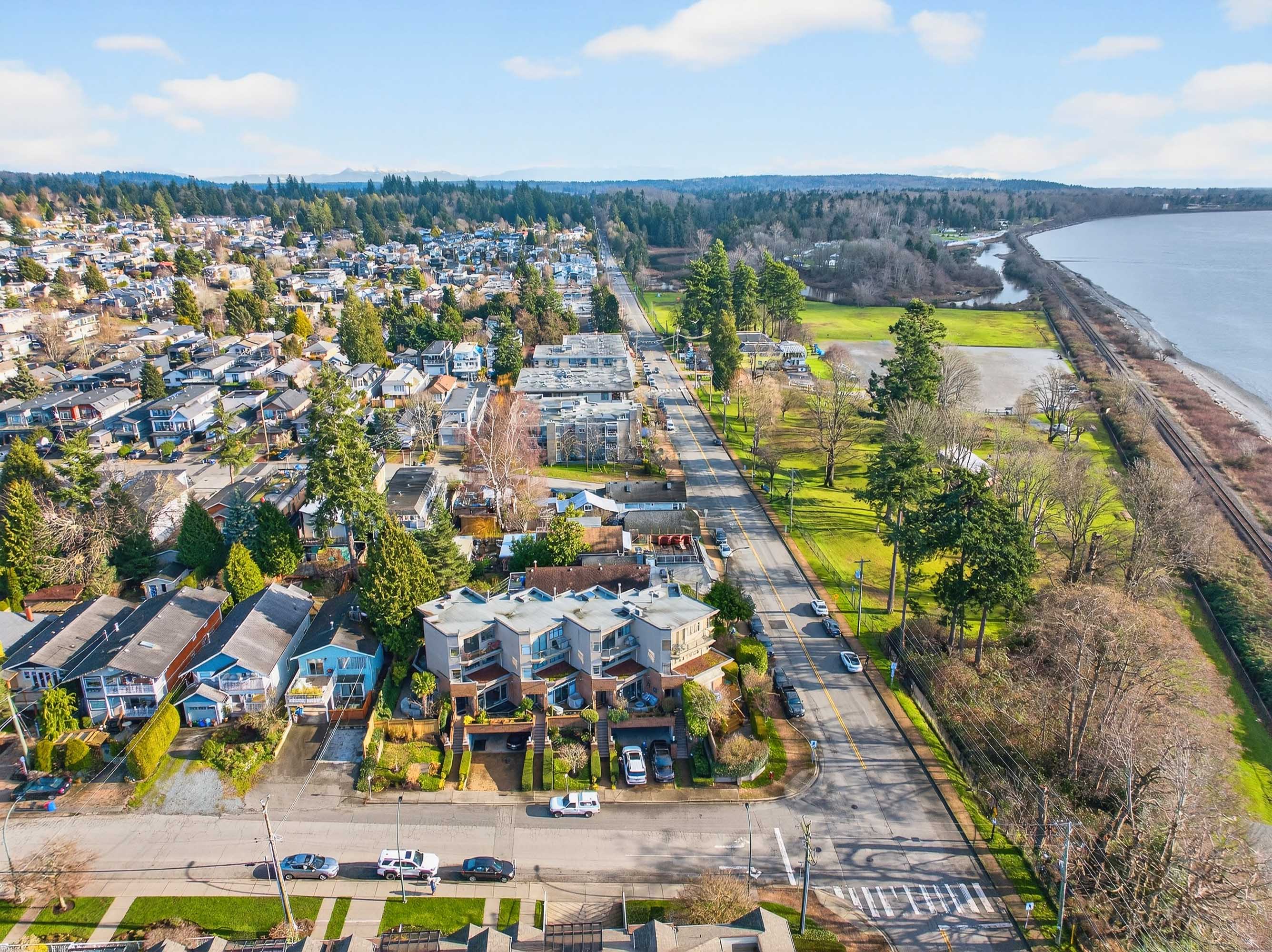 The beach is calling you! This one of a kind, 2,354 sq ft townhome sits right across from White Rock Beach with amazing VIEWS from all 3 levels. Only 4 units in this exclusive complex, - an open main floor plan features a beautifully updated modern gourmet kitchen with quartz countertops, wood cabinetry, and upscale stainless steel appliances. The entire top floor is your stunning primary (with heat pump!) and all new renovated en suite. Gorgeous luxury vinyl on the main level and high end laminate on stairs; this home has been completely painted throughout. SO MANY extras; EV charger, gas lines to front and back patios, irrigation system... the list goes on. Move in, and never lift a finger. Easy access to major routes and shopping. Your ocean oasis awaits!