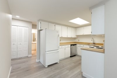 Affordable adult living on the top floor! Lovely 1 bedroom plus den south-facing unit with wide patio. Freshly painted and full bathroom renovation in 2025 with walk in shower for ease if mobility challenged. Maintenance pays for heat, hot water. Laundry room is located right next door. Call today to view this unit !