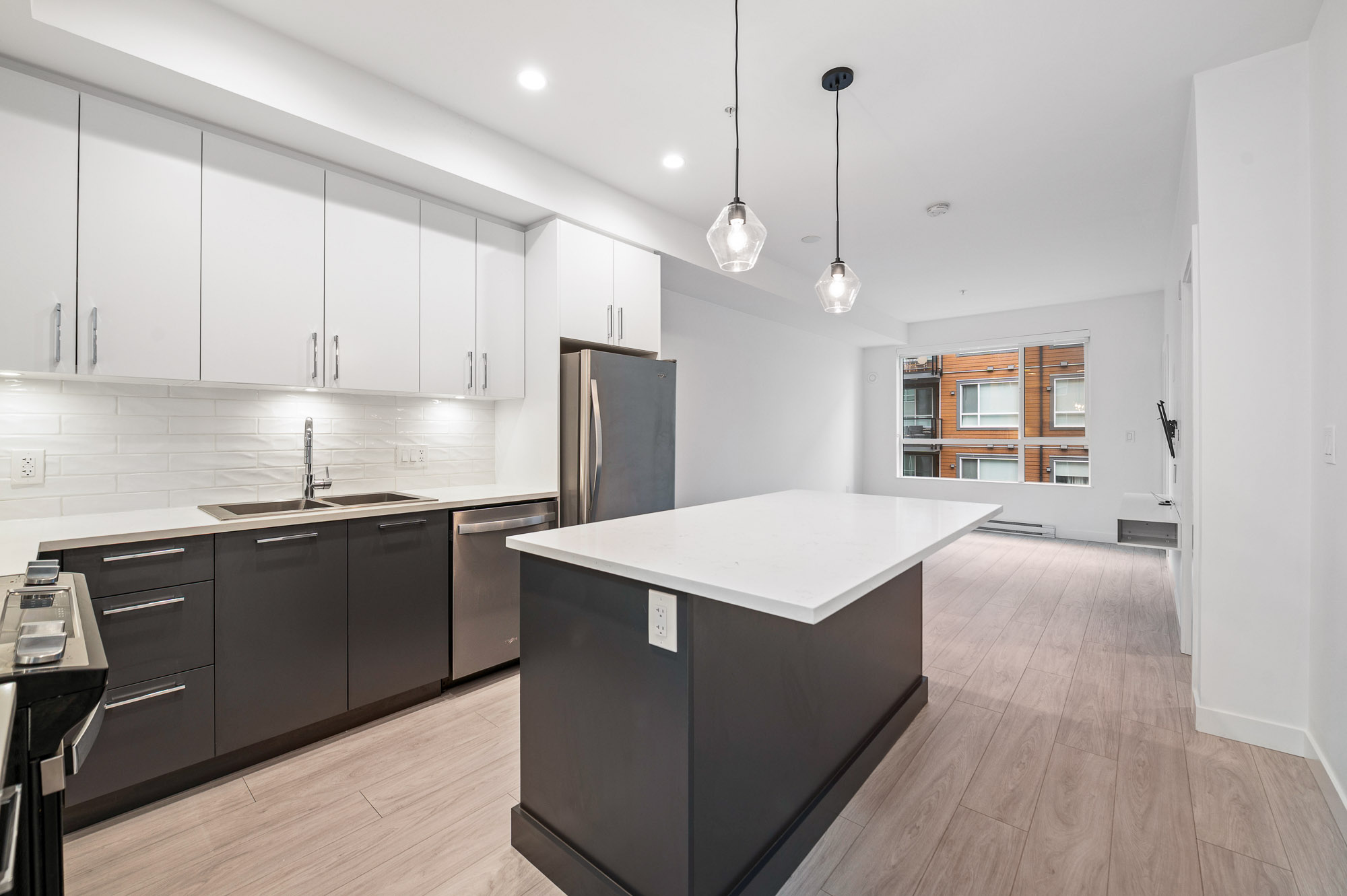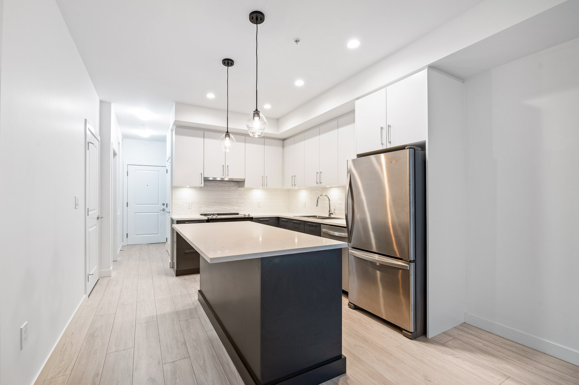Discover this inviting and spacious 2-bedroom, 2-bathroom home ideally located in the heart of Willoughby. Just steps from shopping, transit, parks, and with easy access to Willoughby Town Centre, this home offers both convenience and lifestyle. The open-concept layout is bright and functional, featuring high ceilings and a spacious living area perfect for everyday living or entertaining. The primary bedroom is filled with natural light and offers excellent comfort and privacy. This well-maintained building includes an exercise centre, recreation room, and an outdoor rooftop patio for residents to enjoy. Locker room 6 #40 and 2 Parking stalls 359-360 are included Turn-key and move-in ready, this home is an excellent opportunity for first-time buyers or investors