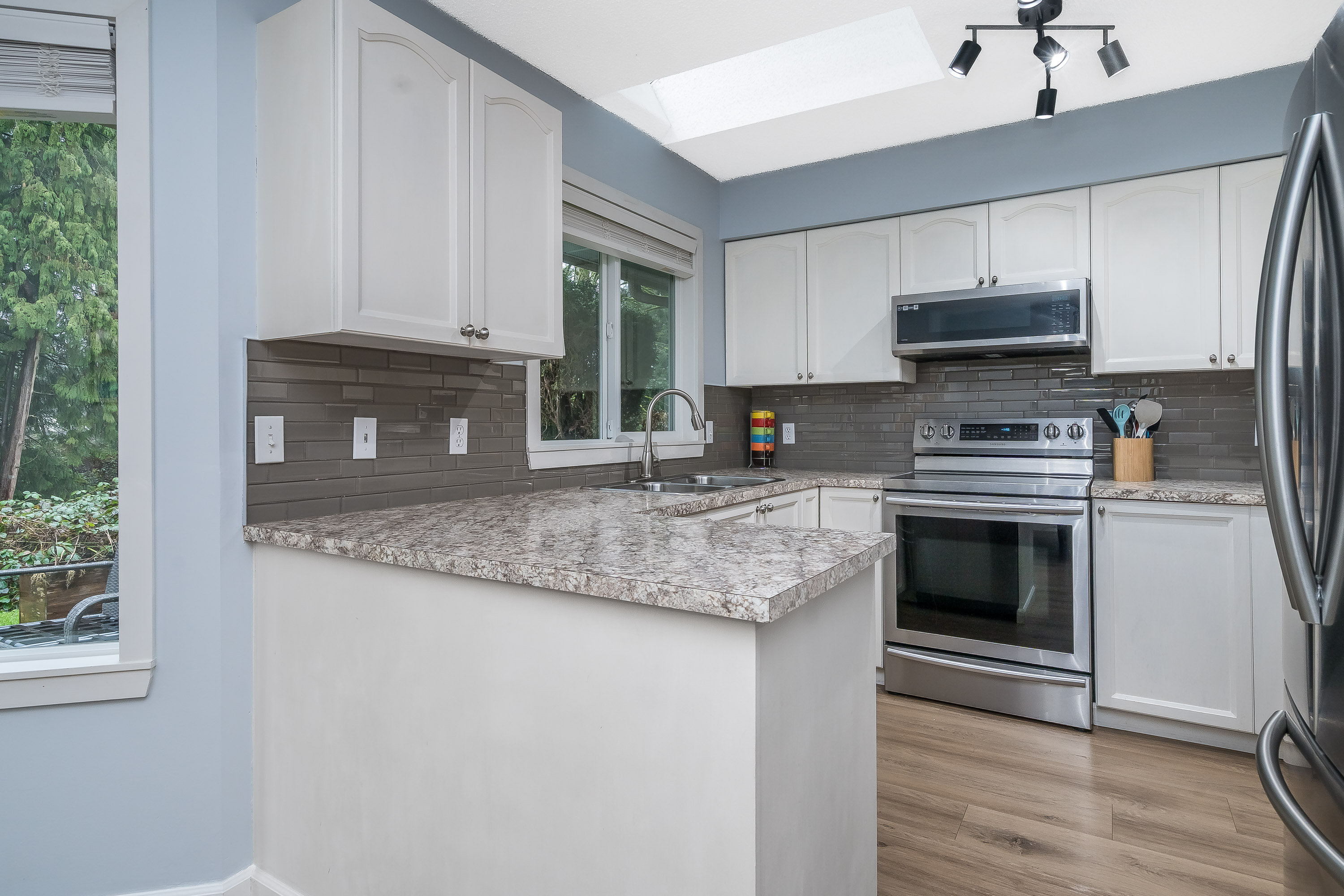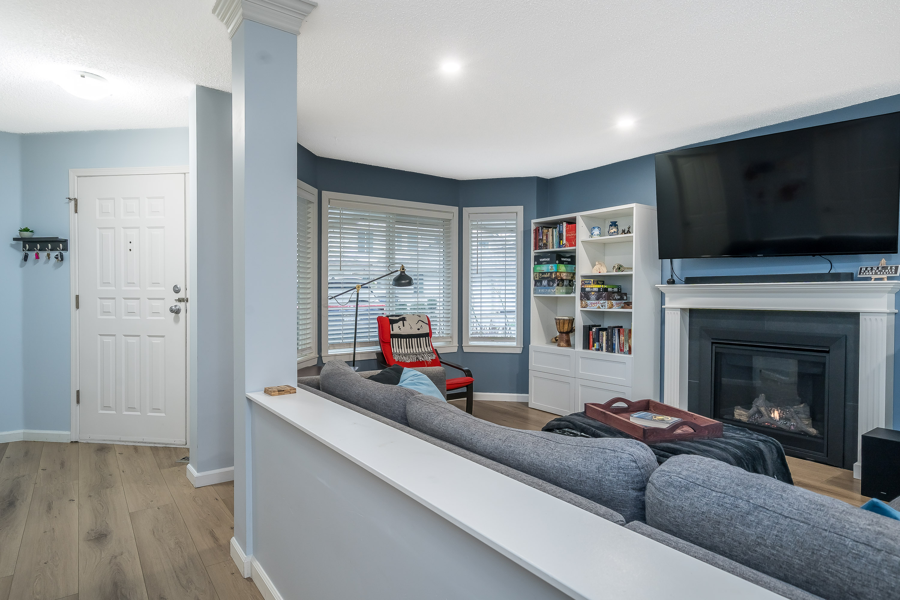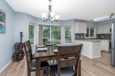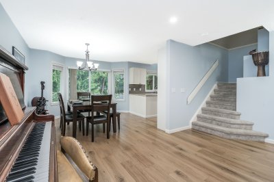 BRIDLEWOODS – in the heart of Walnut Grove. This 1,567 sq. ft. two-storey townhome offers an ideal layout and a preferred end-unit location backing onto a private greenbelt. The main floor features a spacious living and dining area with a cozy gas fireplace, updated laminate flooring, a 2-piece bathroom, and convenient in-suite laundry. The bright kitchen and eating nook open directly to the rear patio and yard—perfect for summer BBQs and entertaining. Upstairs you’ll find 3 bedrooms, including a large primary suite, plus 2 full bathrooms. Parking includes a single garage and an additional spot right out front. Family and pet-friendly complex in a prime location close to schools, shopping, restaurants, and parks.