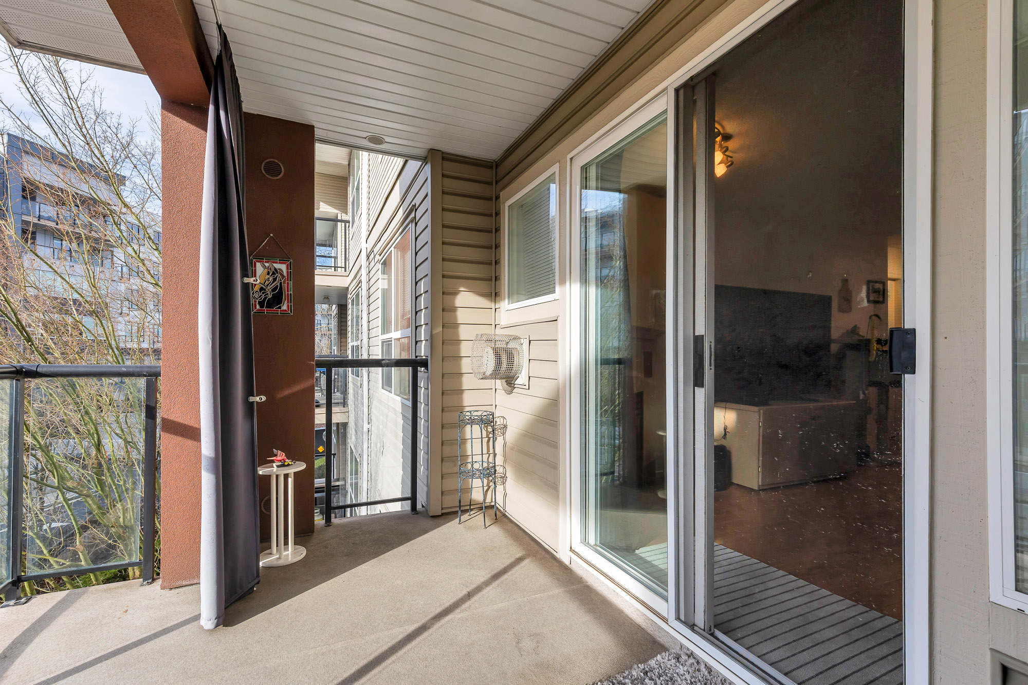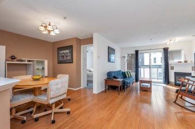 City Grande 3rd floor Condo, nice building with curb appeal. The open concept plan features a spacious dining area, open from the kitchen to living room. Cozy gas fireplace in living room and easy balcony access. The large private west facing balcony is a perfect place to relax, enjoy some sunshine and fresh air. The home has lots of natural light plus the two bedrooms are separate for maximum privacy. The primary bedroom has a 3pce ensuite and lots of closet space. A well run complex with convenient building amenities, including a recreation room, exercise centre and bike storage. This great space is in a prime downtown location yet in the residential area. Just a short walk to Buses, Parks, Library, Restaurants, lots of Shopping, Recreation, and the future new Sky Train Station.