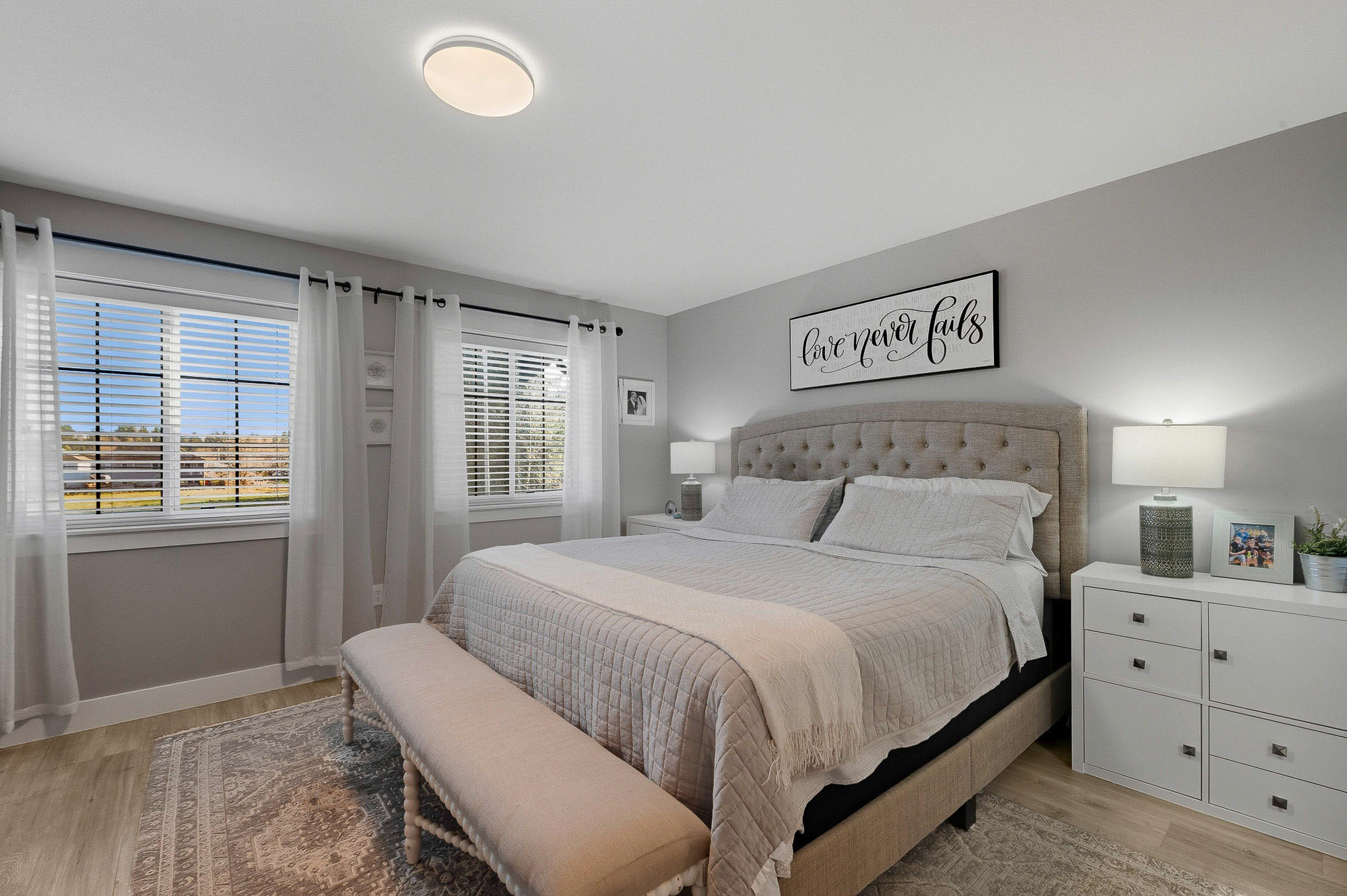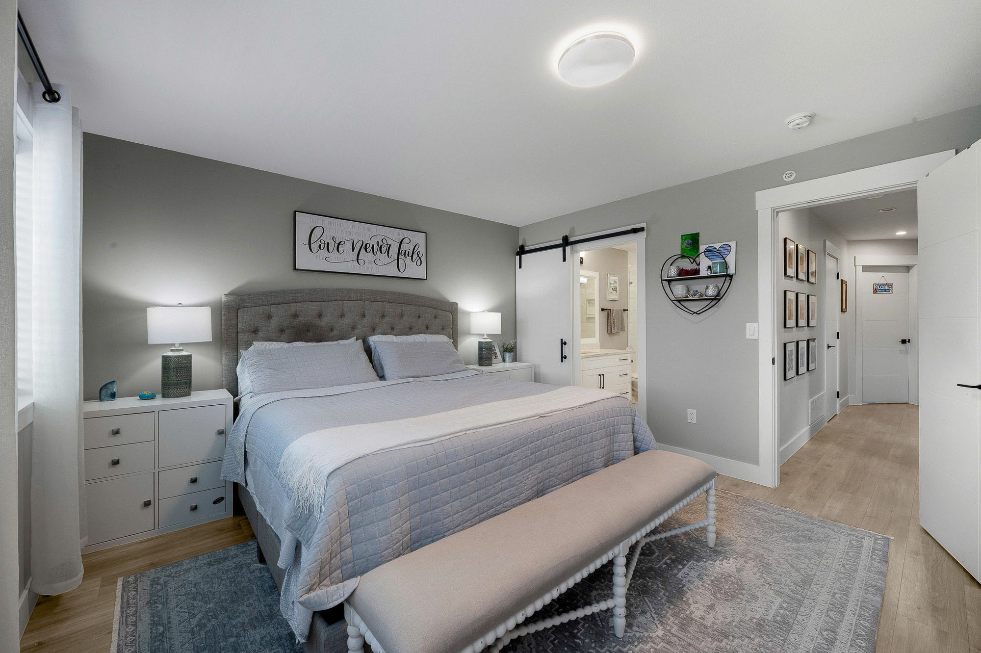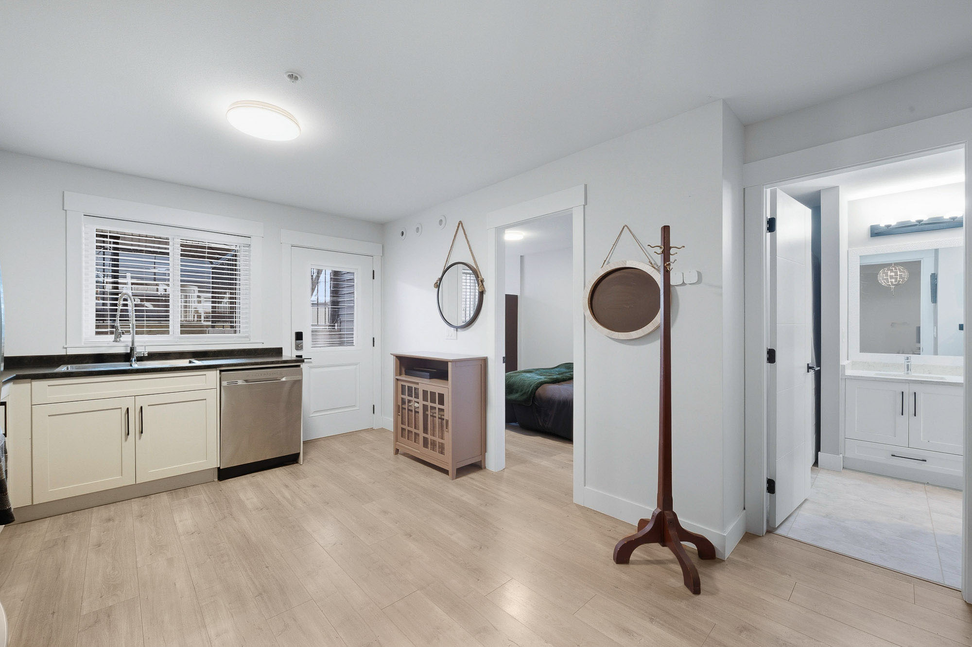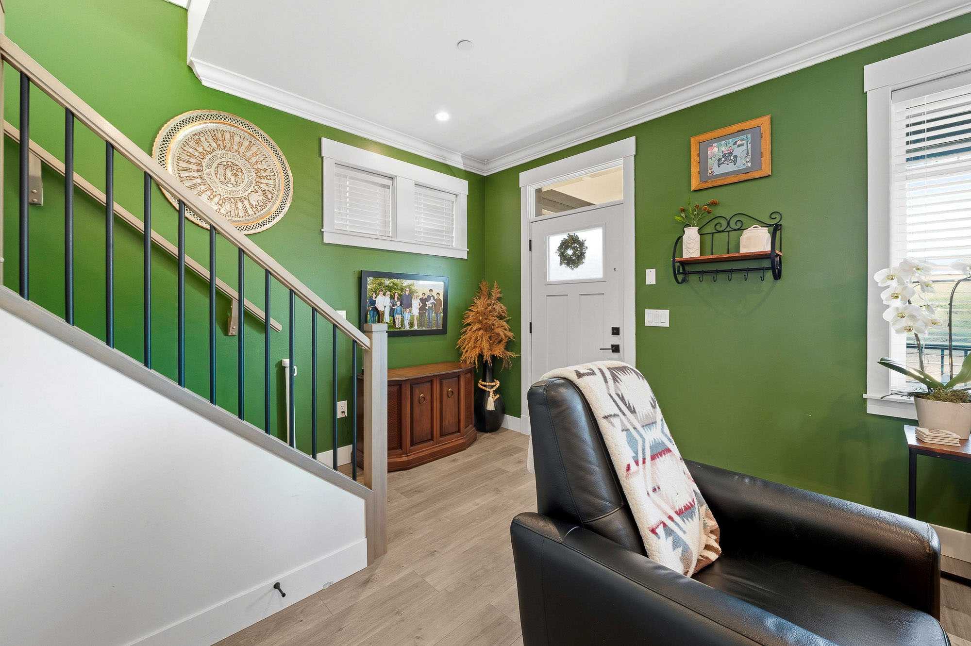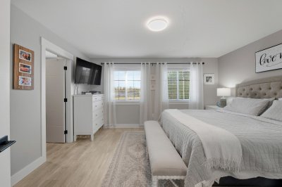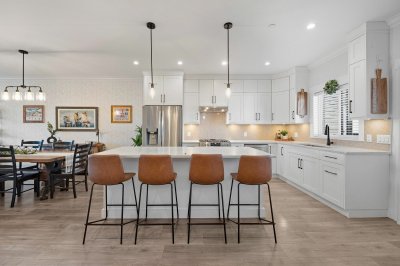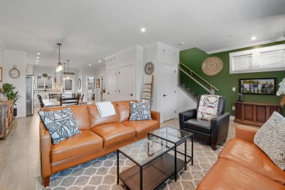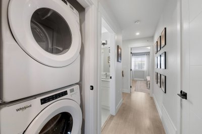 ROW HOME/NO STRATA 2,809 sq ft corner home featuring an open concept floor plan w/5 bed & 4 baths. Just 3 years old w/remaining home warranty coverage. Bright main living area w/ large entertaining island w/built-in bar fridge, oversized walk-in pantry, quartz countertops and stainless steel appliances, opening into generous living and dining spaces filled w/natural light. Bedroom on main ideal for guests, office or multi-generational living. Upstairs features 3 large bedrooms, including spacious primary w/spa-inspired ensuite w/glass walk-in shower, dual vanities and built-in makeup vanity. Basement w/media room and 1 bedroom suite, easily converted to 2 bedrooms. Large covered patio, backyard deck w/gas hookup, fenced yard and detached 2 car garage complete this exceptional home.