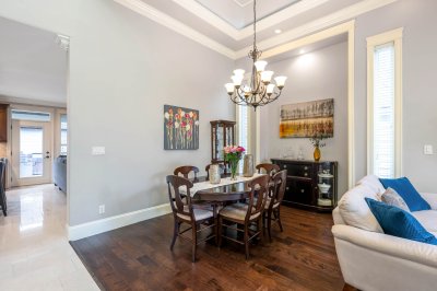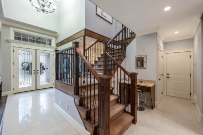 Beautiful, well-maintained 6 bedroom, 5 bathroom home in a private setting in a highly desirable area. Spacious open plan with 12' ceilings, hardwood floors, and a large gourmet kitchen plus spice kitchen, oversized island with cooktop, and quartz & granite counters. Main floor office can serve as a bedroom. Upstairs offers 4 bedrooms, each with its own ensuite, plus a convenient laundry room. Enjoy private sundecks and a large paved patio. Added value with a 1,600 sq ft unfinished basement and a 1-bedroom legal suite with separate entry. Close to transit, schools, shops, and library. Open House Sunday March 29th 11:30am-1pm
