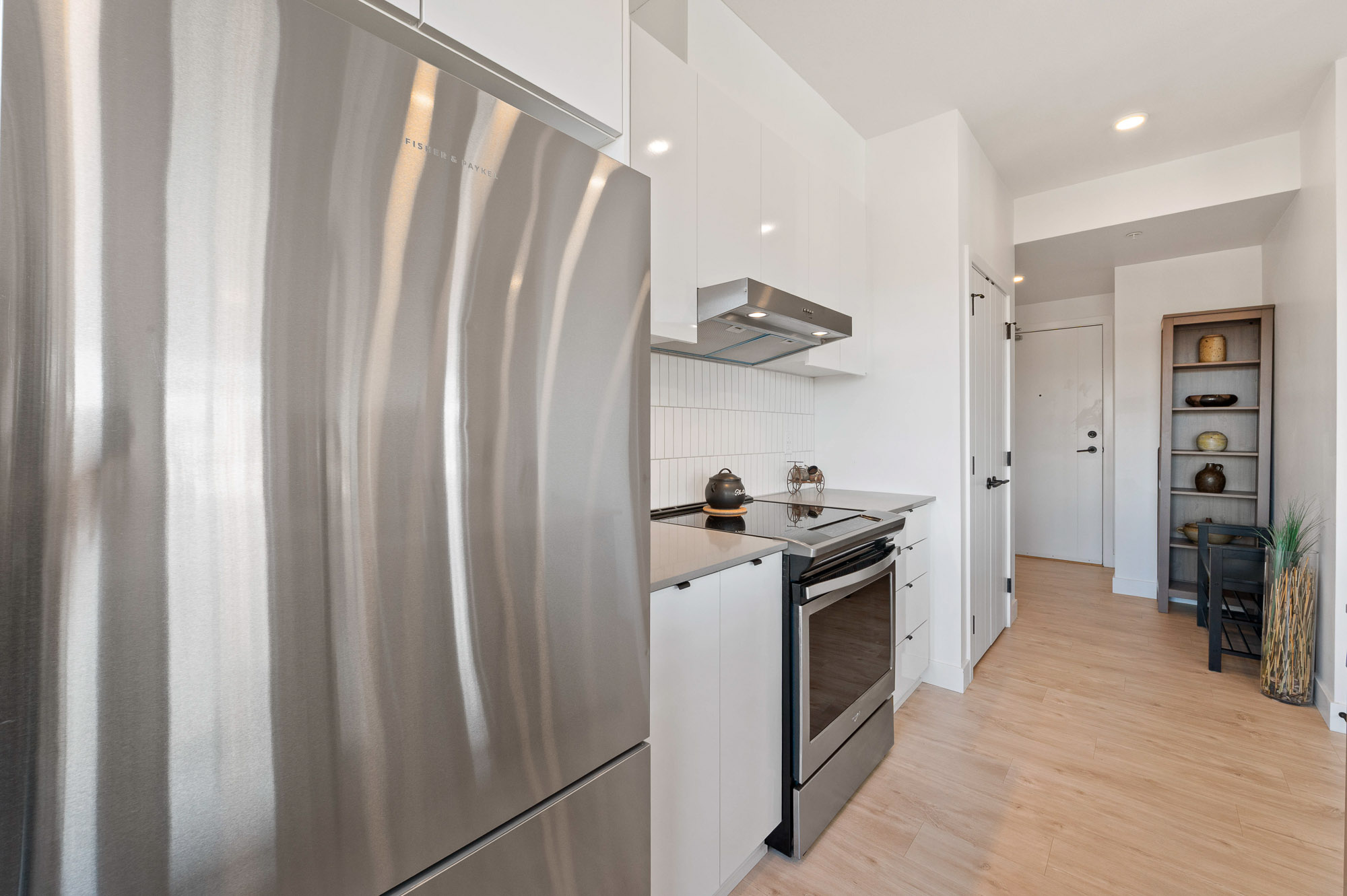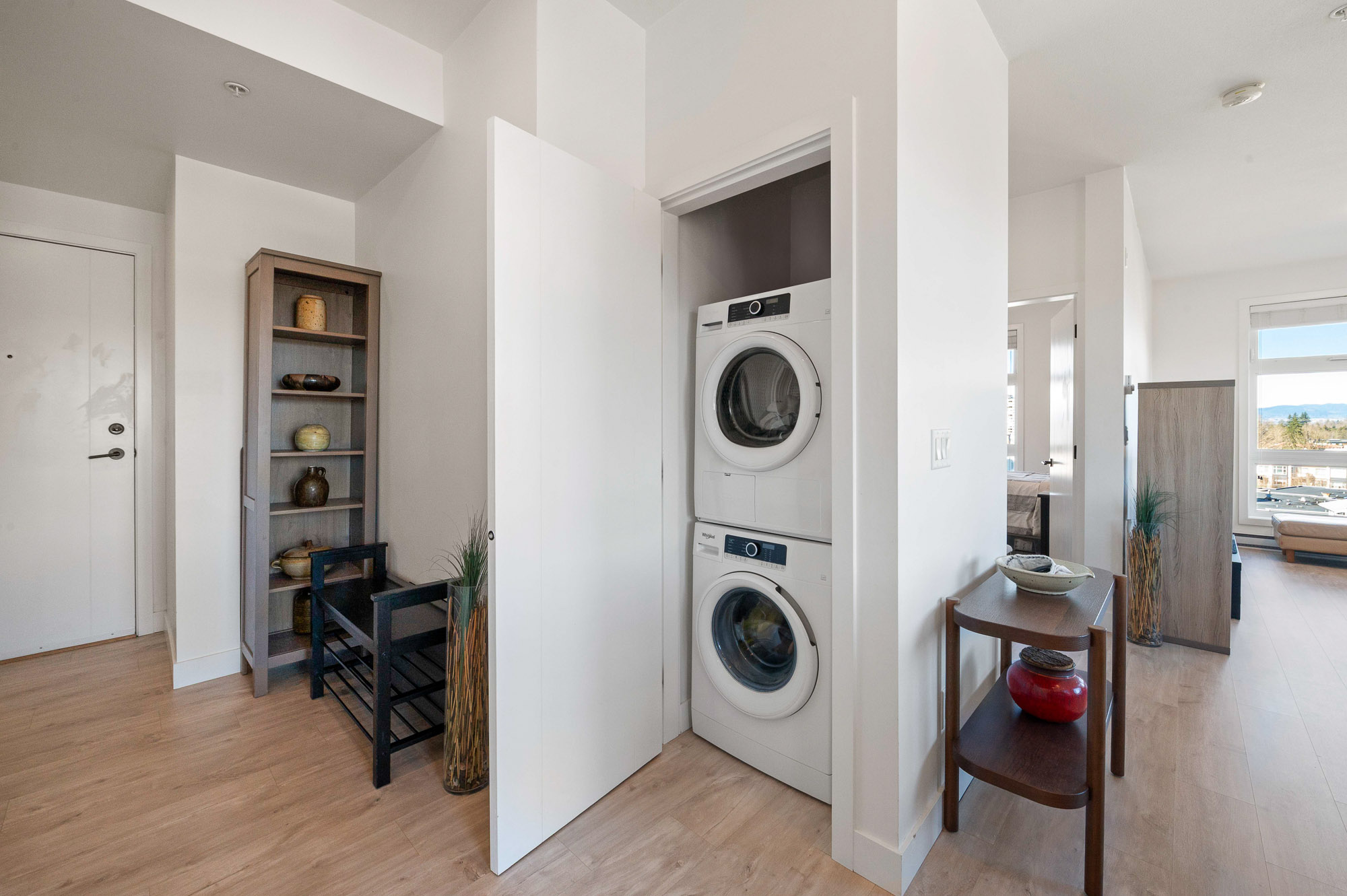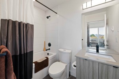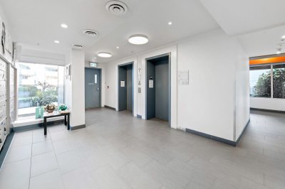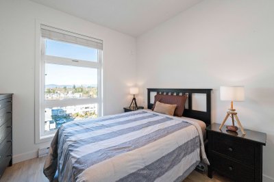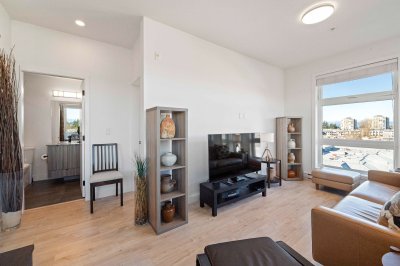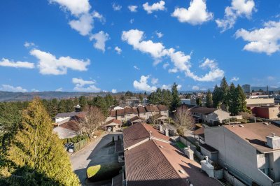 Penthouse living at The Court. Stunning Corner Unit with 180+ unobstructed panorama to enjoy your morning coffee. Scenic views from every room of Snow Capped Mountains to Mount Baker and beyond. Enjoy the privacy this of top-floor privacy in this bright 1 bed, 1 bath home with floor-to-ceiling windows, 9' ceilings, and an open-concept 630 sq ft layout. Modern kitchen with quartz countertops, stainless steel appliances and a large island. Brand-new A/C/Heat Pump. Upgraded bath fixtures. Two large, secured parking stalls including EV charger, plus an oversized storage locker. Steps to restaurants, cafes, shopping, transit, recreation, Mill lake, Hospital and Hwy. 1. Ideal for first-time buyers or downsizers. One of Abbotsford's finest one bedroom condos. Don't miss out on this gem.