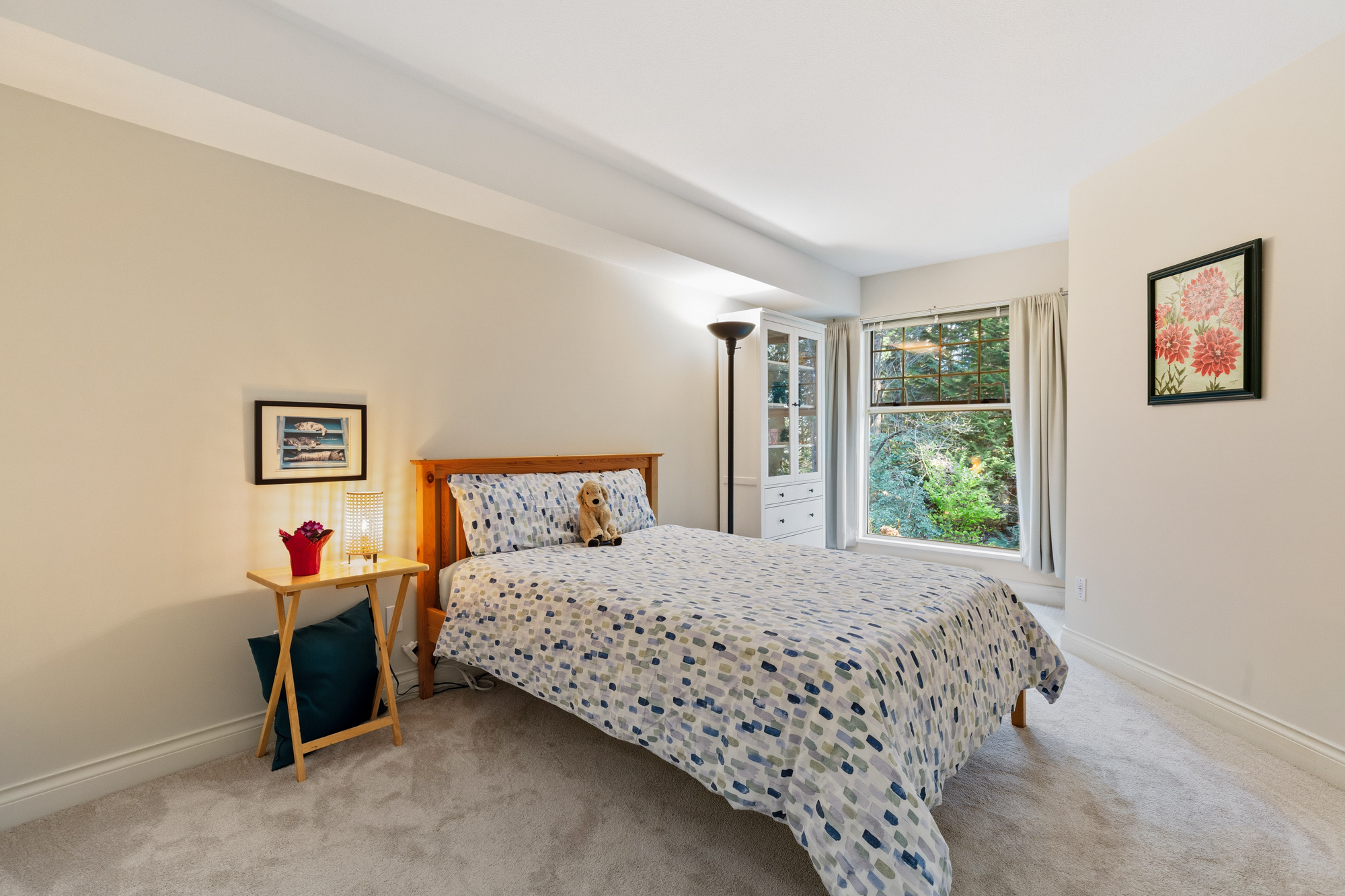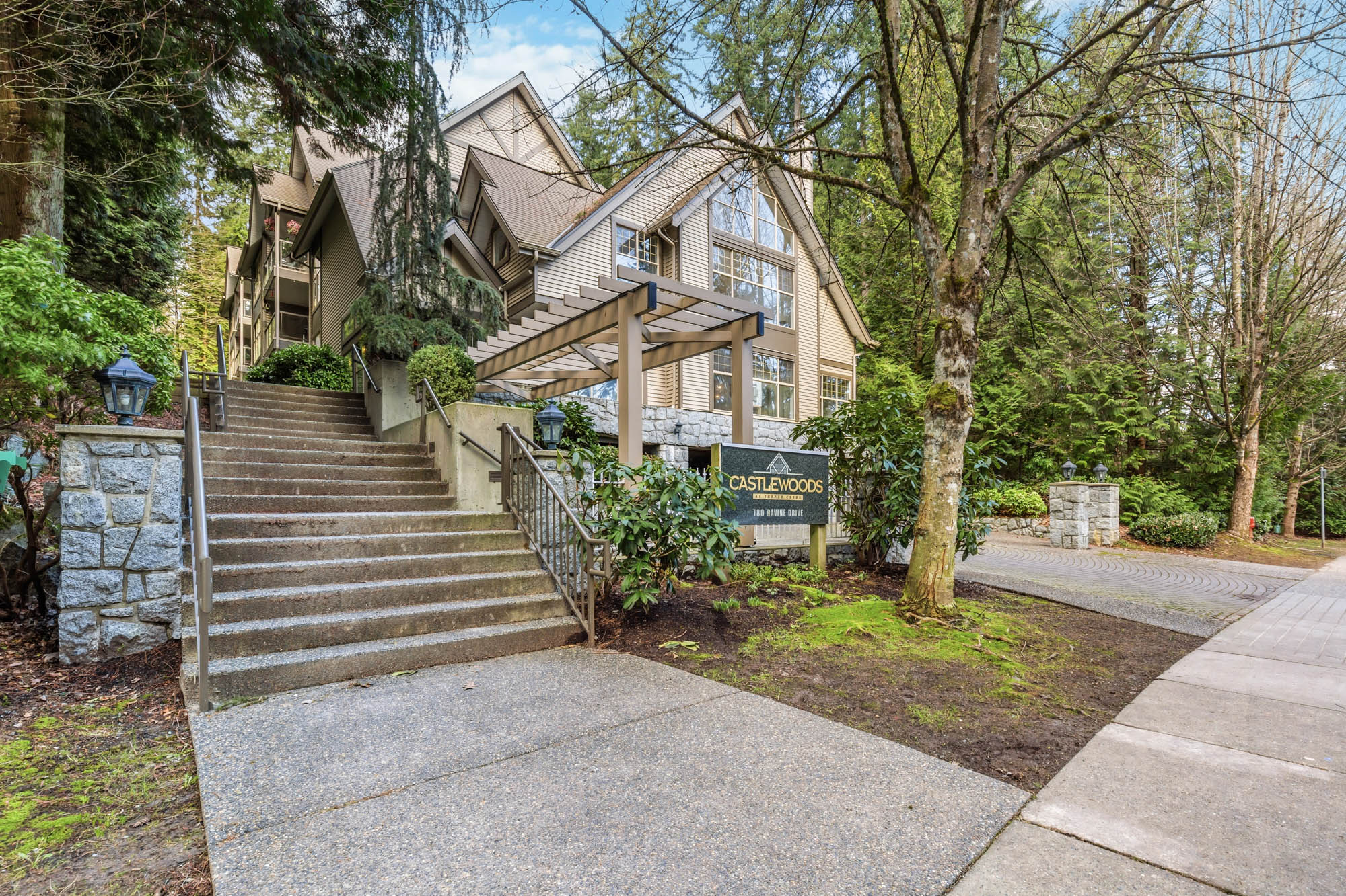 A Rare Opportunity to own a grand 1,465 sq ft view condo overlooking the trees of Turner Creek & the pleasant garden path of Castlewoods. The perfect location for the nature lover who truly appreciates privacy yet wants to reside near amenities. 201 has all the luxuries of a small home: 2 large bdrms & 2 full baths on either side, dining area, cozy gas FP, family & living rooms. No compromises: proper entertaining areas, full sized WI laundry room, W/I Closet & luxurious ensuite. Tastefully & professionally renovated. The owners left no stone unturned. An incredible list of updates is available for you. Move In Ready! Immaculately Maintained. PARKING #24 & STORAGE #17. We hope you love Deer & Owls! O/H SUN APRIL 26 (3-4pm)