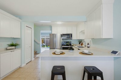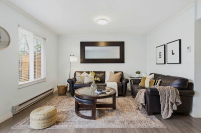 The perfect place to put down roots. Beautifully renovated 3 bedroom, 2 bathroom townhome in a quiet, family-friendly SW Maple Ridge community. The bright main floor features an updated kitchen with quartz counters and stainless steel appliances, opening to generous dining and living spaces — the true heart of the home. Sliding doors lead to your private, fully fenced yard where kids and pets can play safely while you BBQ and unwind on warm summer evenings. Convenient 2-piece bath on the main. Upstairs offers 3 spacious bedrooms including a large primary and updated 4-piece bath. Roof replaced in 2016 and newer windows add peace of mind. Covered parking at your door plus second stall. Walk to schools, parks, shopping, transit and quick Golden Ears Bridge access for commuters.