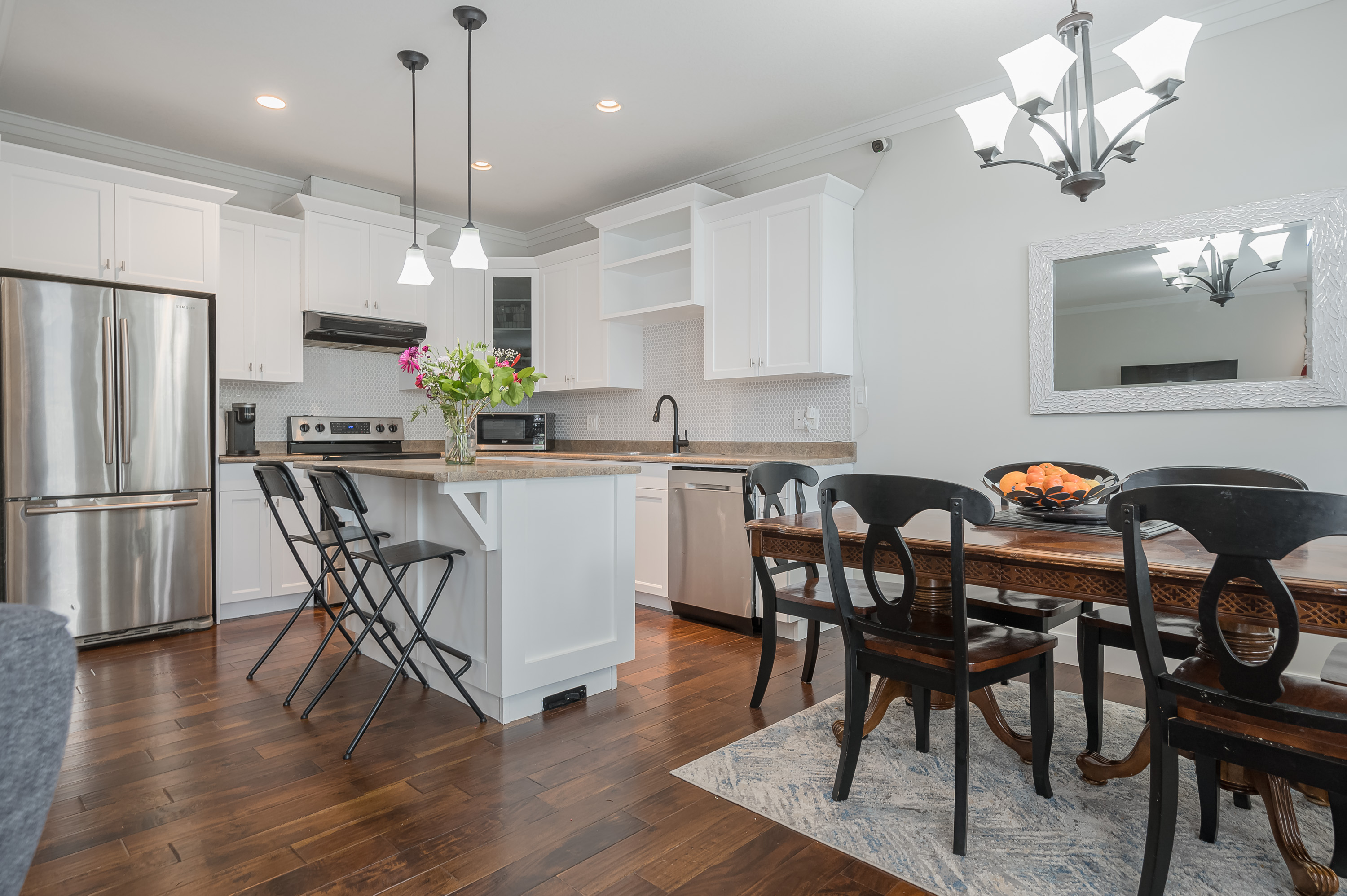 3 Floors- 2 Storey with basement townhome in Arbour Ridge in East Abbotsford. Quiet inside unit,Spacious 4 BEDROOMS & 4 BATHROOMS, OVER 2400 sqft. Bright open livingroom features partial mtn views & floor to ceiling mantle w/ nat gas F/P & TV alcove. Kitchen has S/S appliances, high end cabinets and an island w/ power, storage & bar seating plus a pantry. Modern finishing. Double garage and visitor parking. Private fenced backyard with patio. Laundry room conveniently located on top floor. Central A/C. 1 Dog and 1 Cat allowed. No size restrictions. Close to all the best schools, shopping, Golf and easy access to Highway 1. Check out this awesome family home in a great neighborhood. Arbour Ridge is a quality development, quiet complex and a great place to call 'My New Home'.