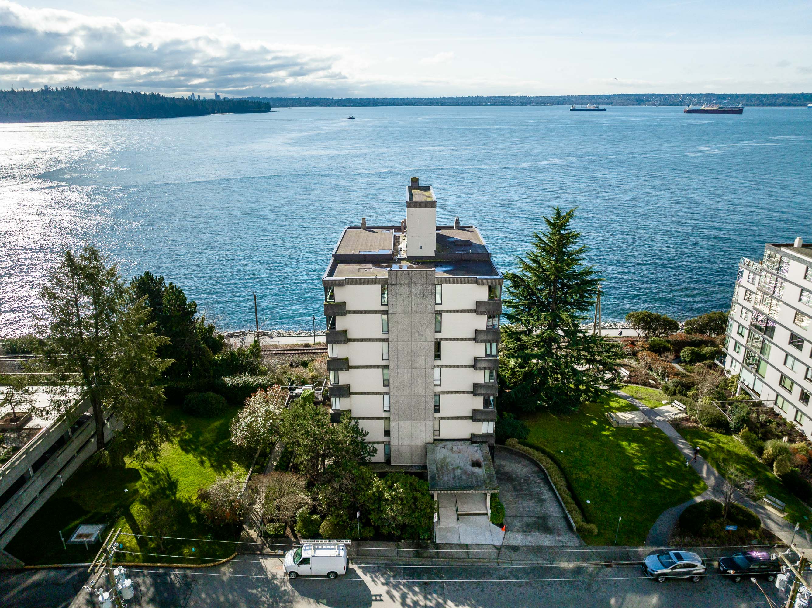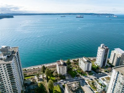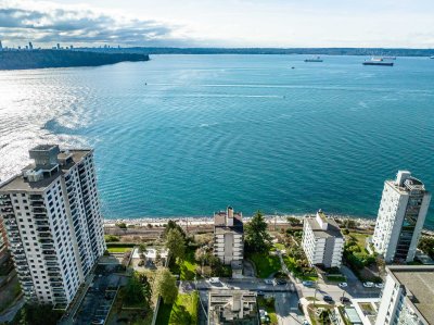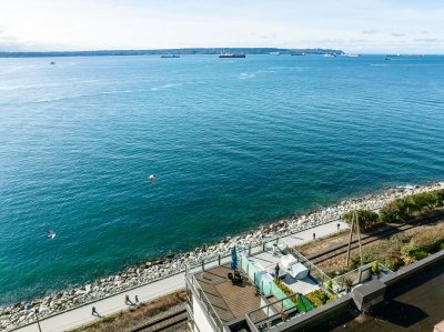 A beautiful 2BD, 2BTH waterfront residence in the heart of Dundarave. This bright & spacious home captures stunning unobstructed ocean views through expansive windows that fill the living space w/ natural light and the calming presence of the water just beyond. The open living & dining area is ideal for entertaining, while the thoughtfully designed kitchen offers quality finishes & excellent functionality. The generous primary suite features a private ensuite & a peaceful outlook. Located just steps from the Seawall and Dundarave Village, you will enjoy easy access to cafés, restaurants, & boutique shops. The West Vancouver Memorial Library, Lawn Bowling Club, Seniors’ Activity Centre, West Vancouver Community Centre & main bus route are all within walking distance.