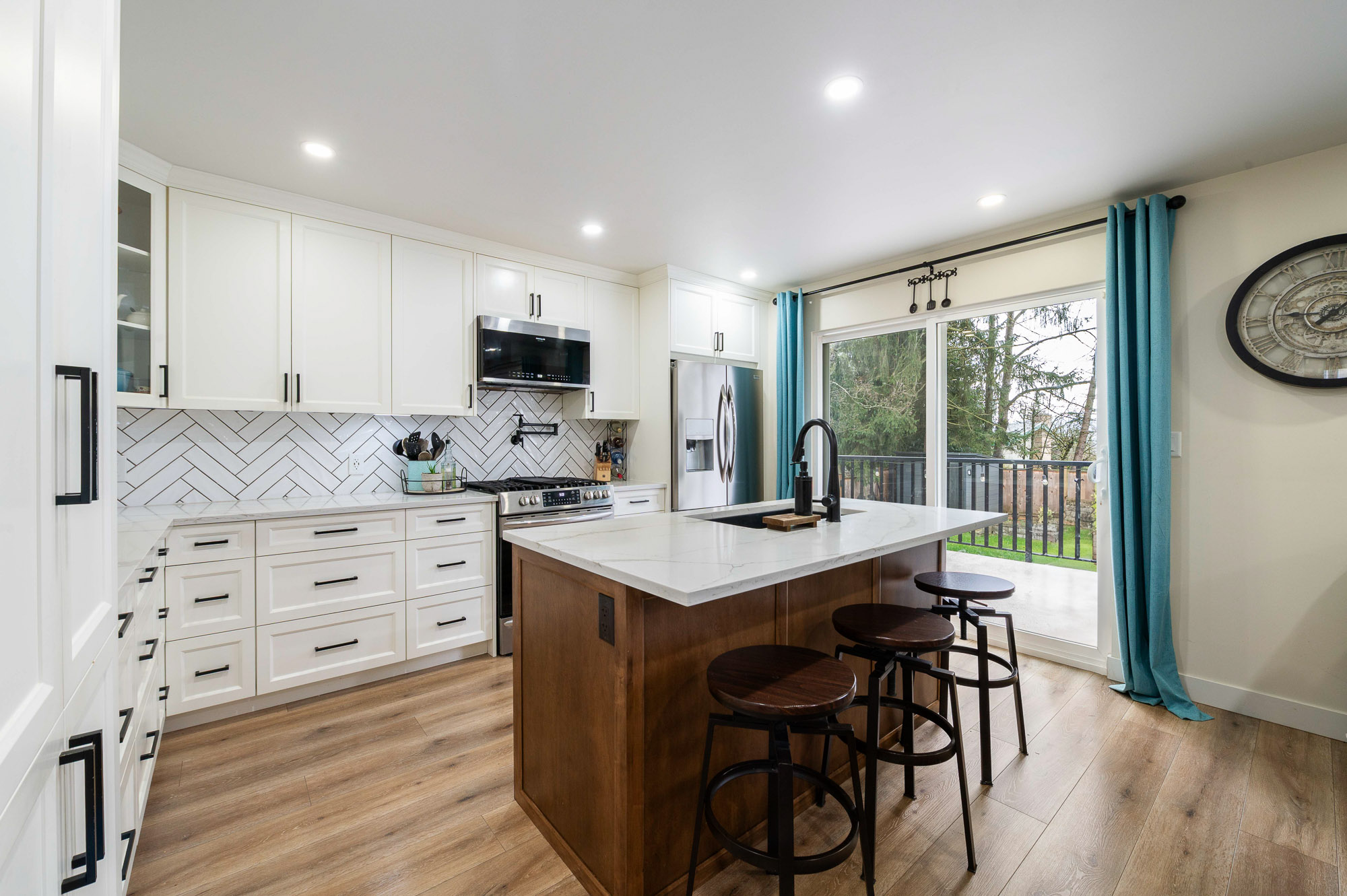 Beautifully renovated 4 bedroom rancher with basement on a large, private lot. Ideally located just minutes from shopping, schools, parks, and the rec centre. The main floor features a custom kitchen with stone countertops, stainless steel appliances, and an open layout connecting the living and dining areas, along with three spacious bedrooms. The fully finished basement includes a move-in ready 1 bedroom mortgage helper. Outside, enjoy the fully fenced and very private yard with a large deck, patio space, and hot tubโperfect for relaxing or entertaining. The garage and driveway provide ample parking. Roof approximately 9 years old.