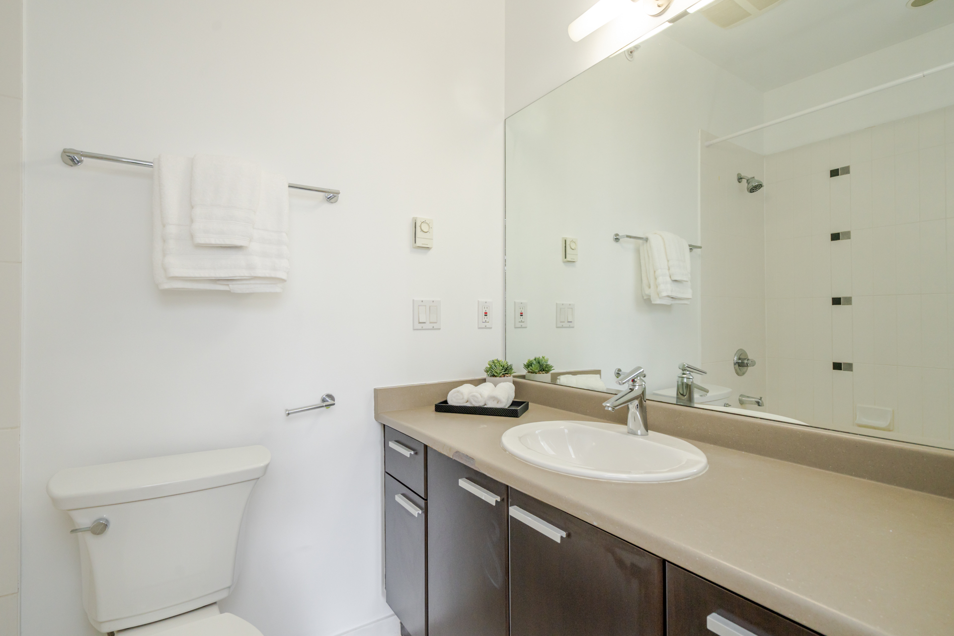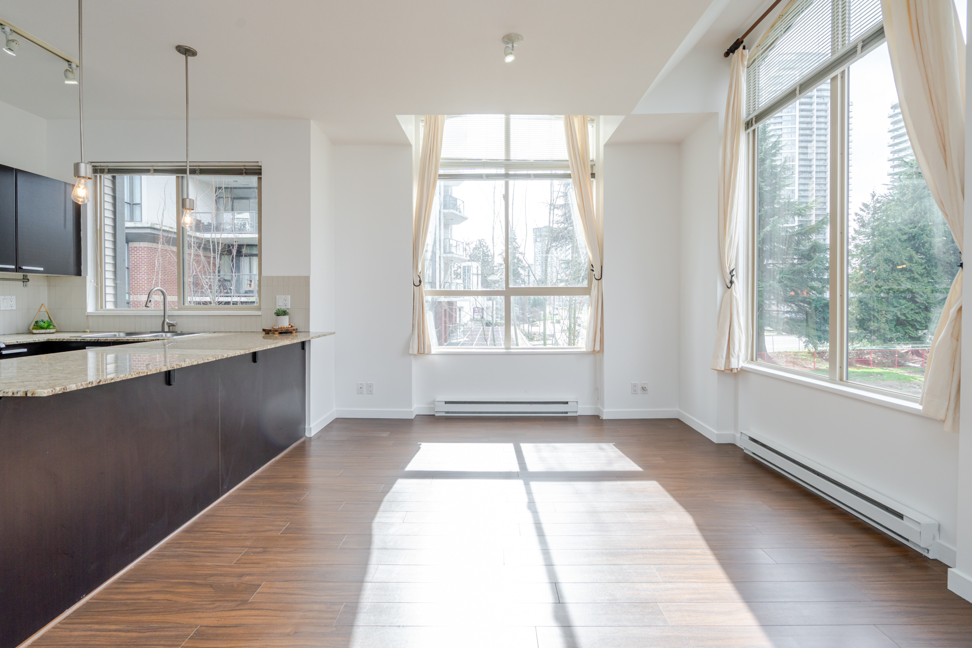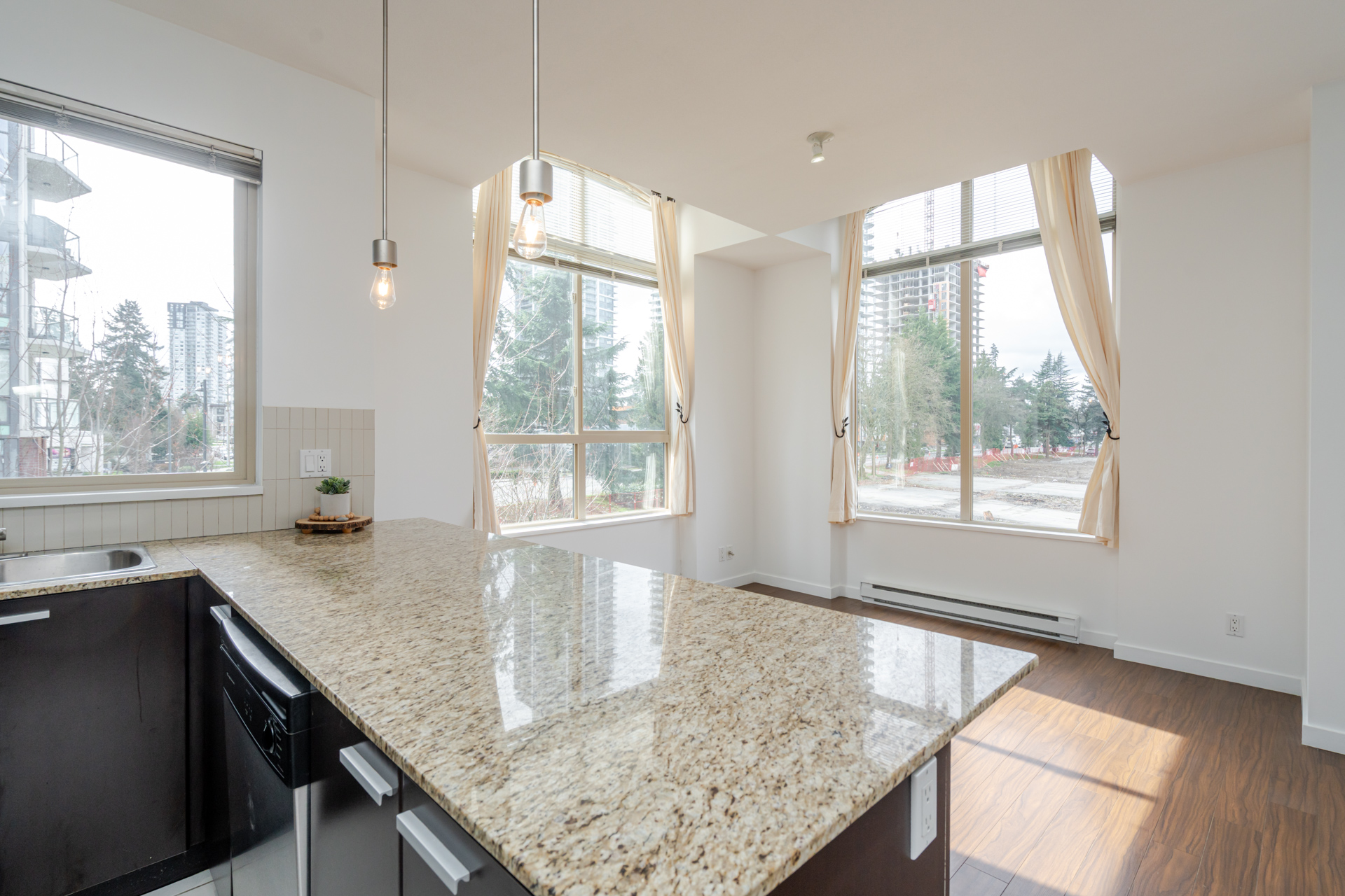 Welcome to DβCor in the heart of Surrey Central! This 880 sqft bright, top floor, corner unit offers 2 bedrooms and 2 bathrooms both with their own ensuite and thoughtfully positioned on opposite sides of the home for added privacy. The open concept living area features high ceilings, spacious peninsula kitchen with granite countertops, stainless steel appliances, laminate flooring and large windows throughout that brings in plenty of natural light from the southwest exposure. Includes 1 parking & storage locker. Located just steps to Surrey Central SkyTrain, SFU campus, City Hall, library, parks, T&T, Walmart and Surrey Central Mall, making everyday living incredibly convenient. A fantastic opportunity for homeowners or investors looking for walkable urban living or to commute downtown.