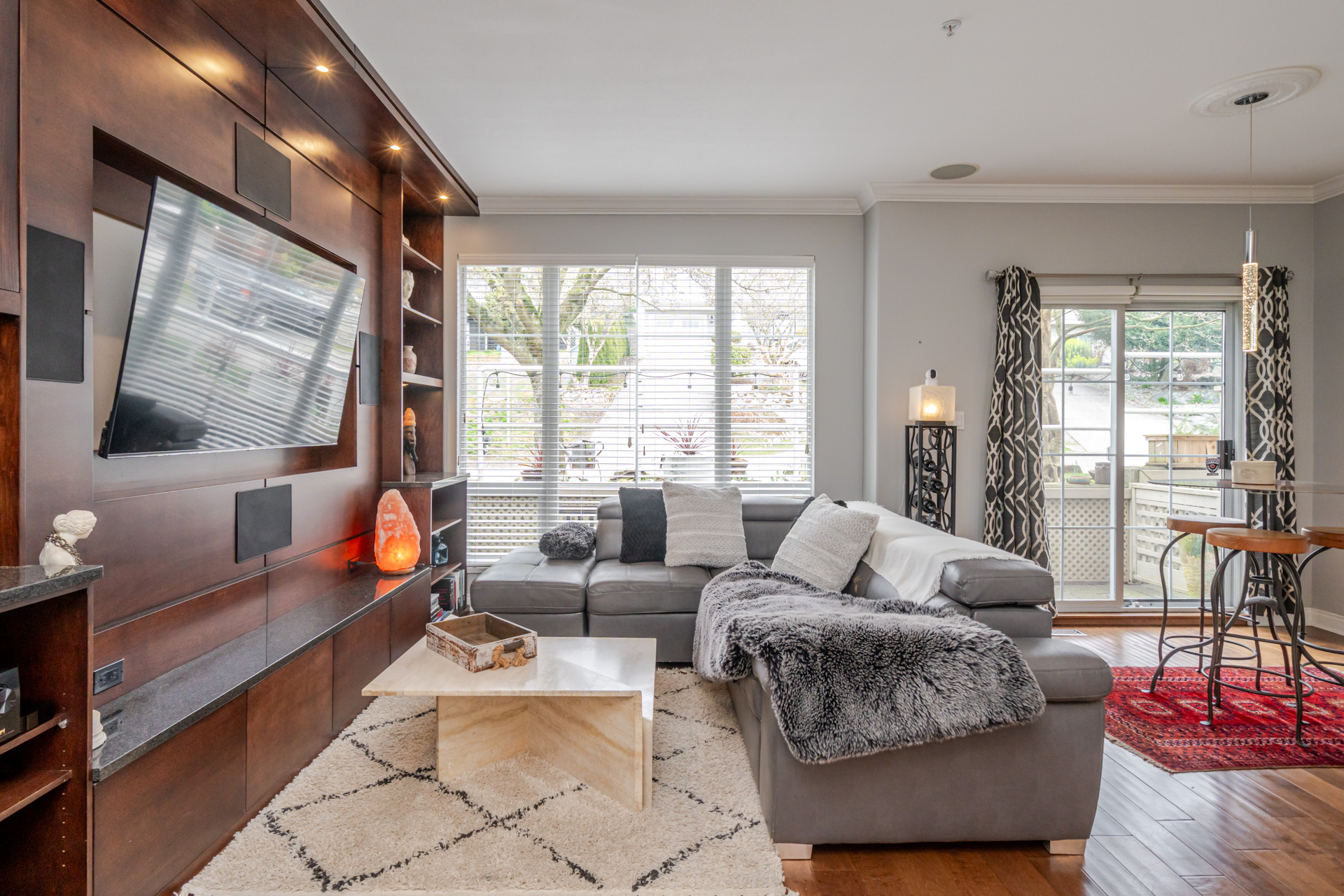 The best of seaside living steps from the White Rock Pier. This beautifully updated three-level townhome offers over 1,850 sq.ft. of thoughtfully designed space, blending comfort and style. This gated courtyard entry leads to your end unit. You will enjoy privacy, 9' ceilings and the rare advantage of a garden view from the main floor. Updates incl. custom built in entertainment unit wired with six speakers for ultimate surround sound, additional upgrades include lighting,flooring and granite kitchen counter tops. The spa-inspired ensuite is a standout feature with a steam shower perfect for unwinding on crisp winter days. Additional highlights include a unique cold-room and storage area for wine enthusiasts & home canners. Lower level offers flex room and a coveted double garage.