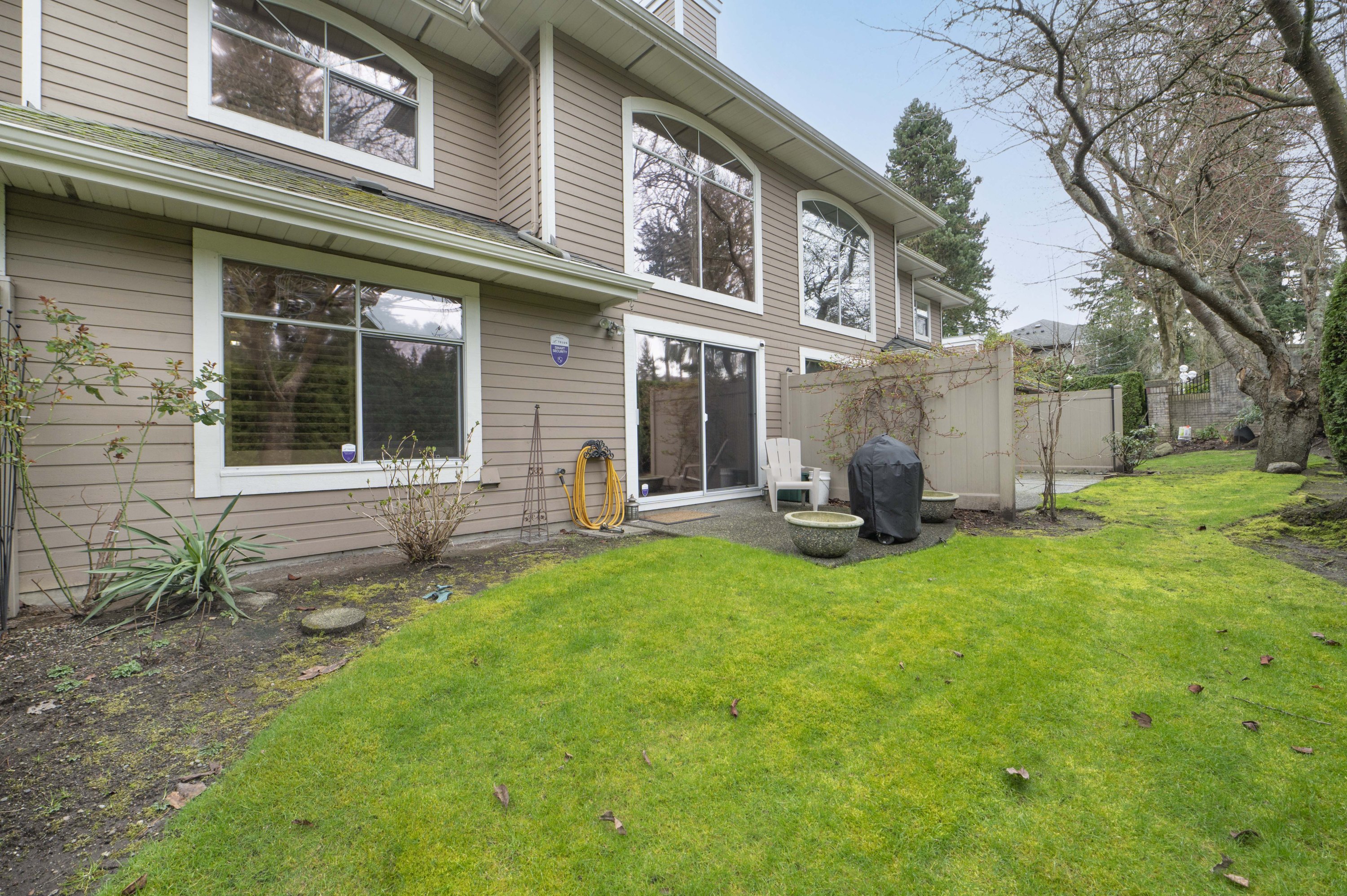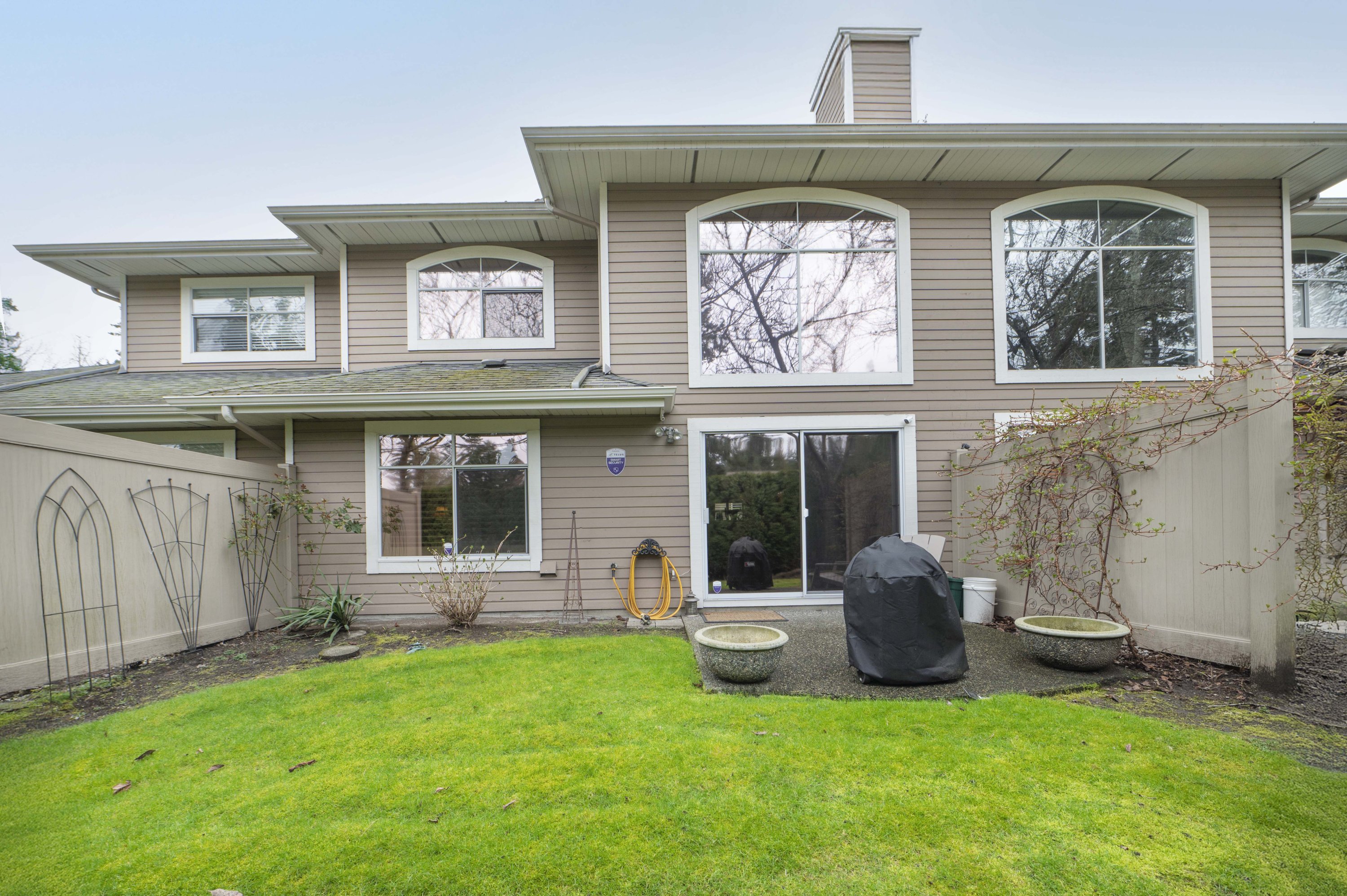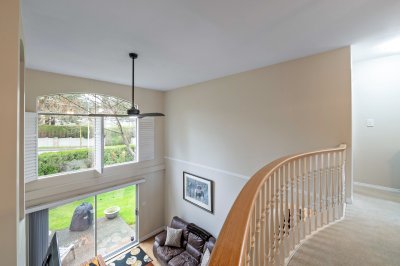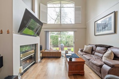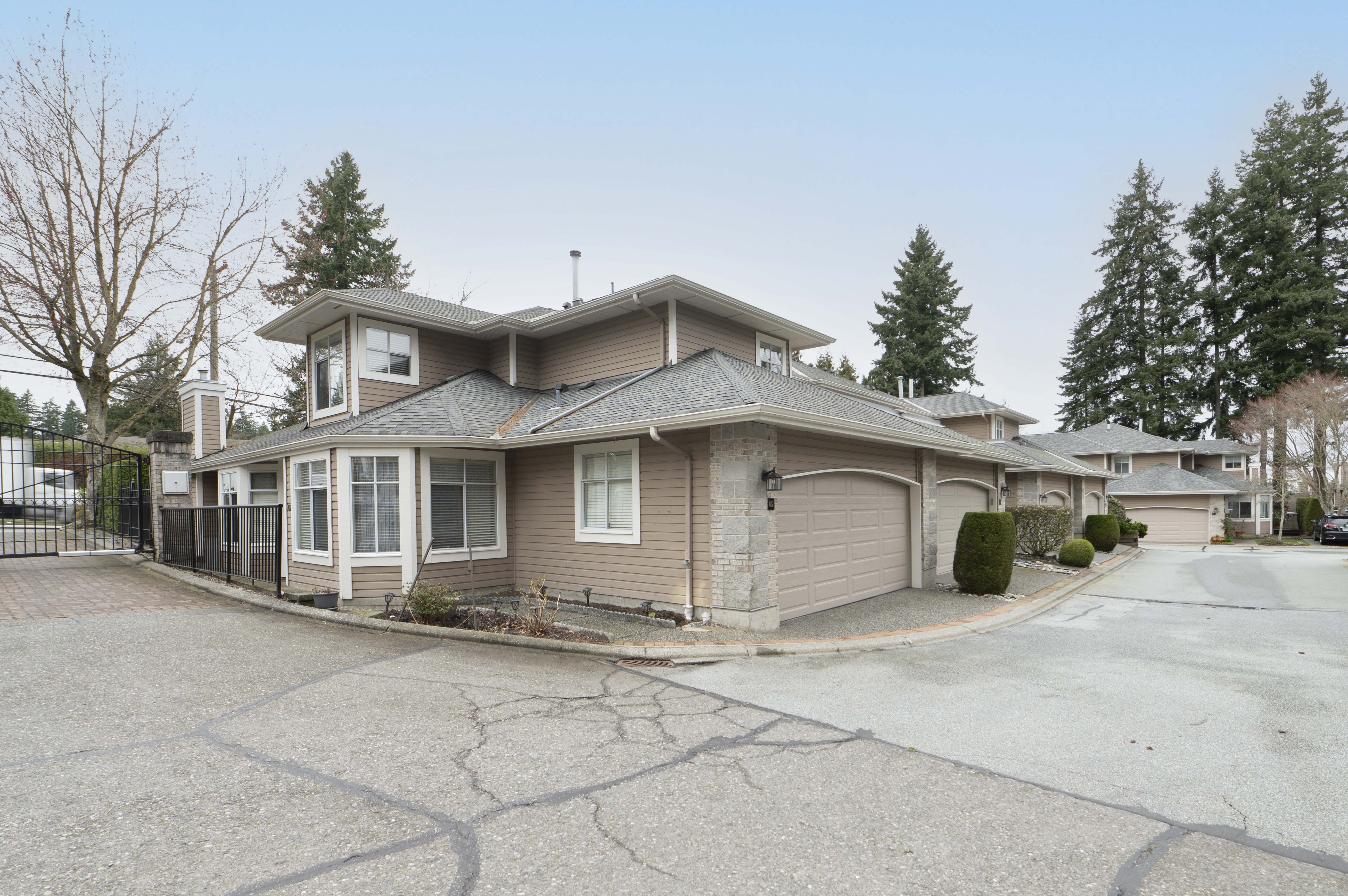 PENINSULA VILLAGE in South Surrey! 3 bed, 3 bath townhome offering 1753 sq. ft. of living space in this gated complex. PRIMARY BEDROOMS ON MAIN AND ABOVE.... Main floor features newer engineered hardwood flooring, a cozy bright living room with vaulted ceiling, oversized windows, gas fireplace & large sliding glass doors off your patio and private back yard. Spacious kitchen with updated counter tops, a formal dining room & 2 pc. powder room. Upstairs features 2 large bedrooms, additional full bathroom & an open flex/loft area overlooking the living room. Radiant hot water heat & beautifully maintained grounds with clubhouse. Private gate to Peninsula Village Shopping Center and steps to restaurants, public transit and a short drive to White Rock Beach. 55+ age restriction and pets ok.