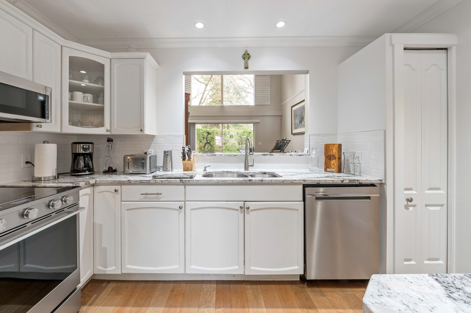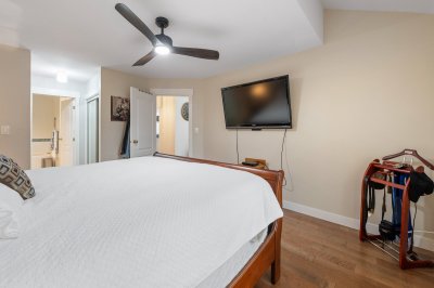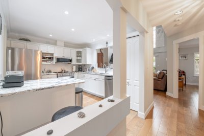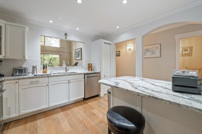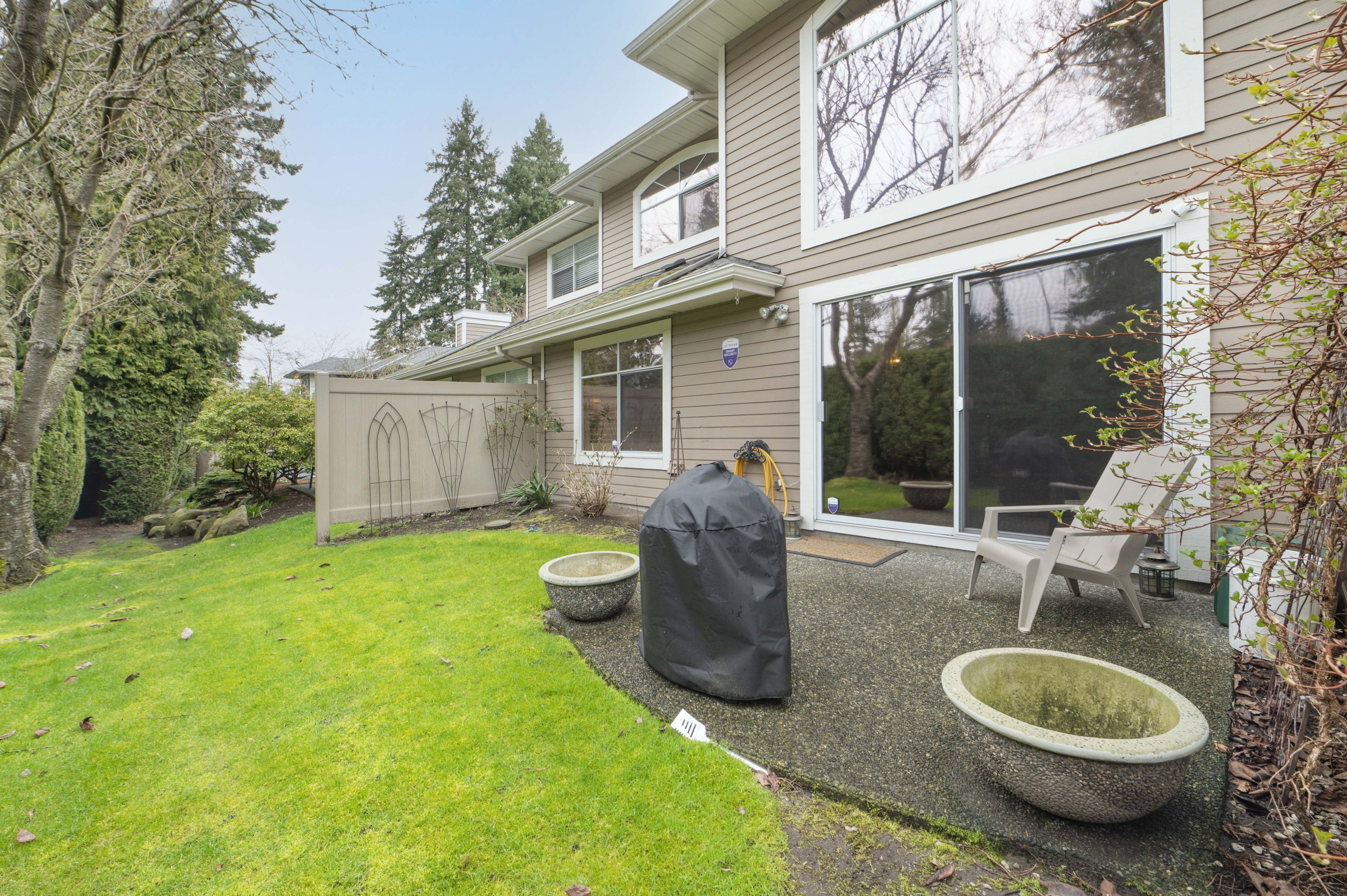 PENINSULA VILLAGE in South Surrey! 3 bed, 3 bath townhome offering 1753 sq. ft. of living space in this gated complex. PRIMARY BEDROOMS ON MAIN AND ABOVE.... Main floor features newer engineered hardwood flooring, a cozy bright living room with vaulted ceiling, oversized windows, gas fireplace & large sliding glass doors off your patio and private back yard. Spacious kitchen with updated counter tops, a formal dining room & 2 pc. powder room. Upstairs features 2 large bedrooms, additional full bathroom & an open flex/loft area overlooking the living room. Radiant hot water heat & beautifully maintained grounds with clubhouse. Private gate to Peninsula Village Shopping Center and steps to restaurants, public transit and a short drive to White Rock Beach. 55+ age restriction and pets ok.