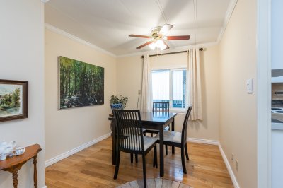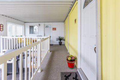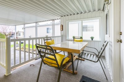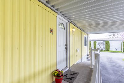 Spacious, updated single-wide manufactured home with a huge extension on its own land. Quiet location away from busy roads. Lots of important updates: silver seal 2025, new furnace 2024, roof, extension, vinyl windows, kitchen and bathroom, paint. One-level living in your own rancher-style home. Enjoy your own garden, large deck, storage shed, parking for 3 cars. Dog owner? You can have two, with no size restrictions. Sea Ridge Bays is 55+, has generous visitor parking, a lovely club house and a friendly village atmosphere. Bare land strata with low monthly fees: $210 includes water.