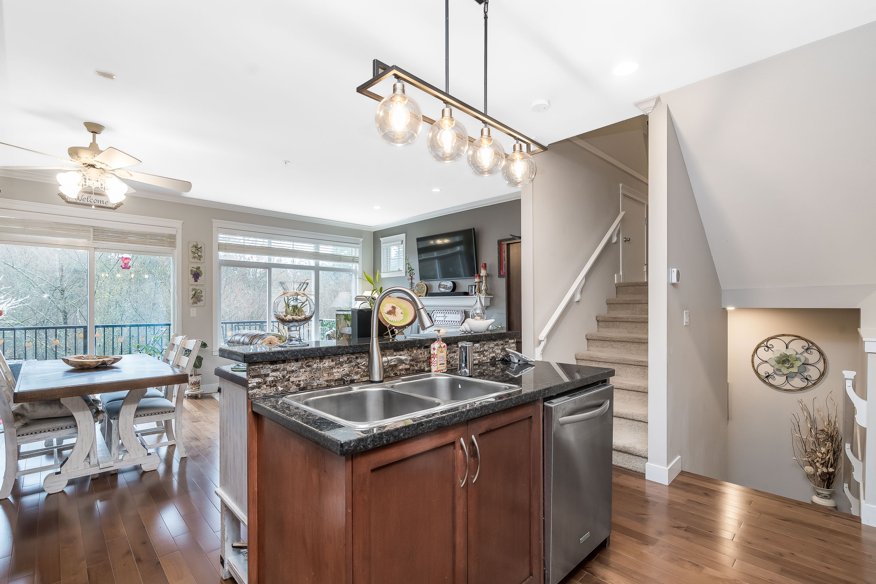 WELCOME TO "THE MEADOWS at VERIGIN'S RIDGE!" One of Maple Ridge's finest TOWNHOME Complexes. This well cared for & RARELY AVAILABLE PERMANENT GREENBELT & MAIN FLOOR ENTRY 3 level townhome boasts many fine features including: A SOUTHERN EXPOSED GREENBELT LOCATION with a FULLY FENCED & PRIVATE BACKYARD. Enjoy having both a PATIO & SUNDECK with GLASS SLIDERS to indulge the peace & tranquility of the GREENBELT SPACE with your morning coffee! Main floor boasts, private powder room with SPACIOUS dining, living & kitchen areas, with GRANITE countertops, SOLID MAPLE SHAKER cabinets & STAINLESS STEEL appliance package, 3 GENEROUS sized BDRMS UP with 4 piece BATH incl. LARGE PRIMARY UP with 5 piece ensuite. The WALKOUT BASEMENT boasts the same spacious floor plan as the main. OPEN HOUSE SUN 2 - 4 PM
