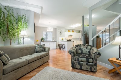 3 LEVEL TOWNHOUSE in Walnut Grove's "Heritage Glen!" 2212 sqft END UNIT. Exceptional living on three floors, w/bright living room, 9' ceilings, 2 gas fireplaces & adjoining dining area. Updated w/gorgeous flooring & fresh paint throughout the home. Amazing open kitchen & family rm w/large movable Island! 3 bedrooms up incl. luxury soaker tub, dble sinks, New shower & massive Primary walk in closet. Bsmt has 4th bdrm or family rec room/office/gym & bathroom! Plus - u/stairs storage! NEW Side x Side garage doors & motors w/space for kayaks! New A/C & window screens 2023. Private deck & yard. NO POLY B, Pet friendly (any size). Super Central location. Easy commuting routes, Great Schools, Community Centre, Pool, Parks, Shopping close by! A MUST SEE! Book your viewing today!