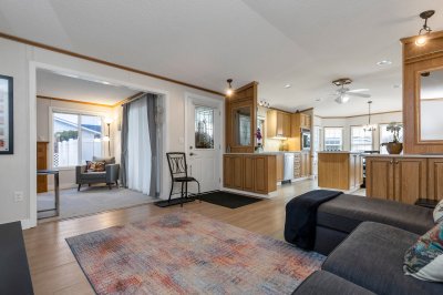 COUNTRY PARK VILLAGE....Close to Shopping, Recreation, and HWY 1. This 3 bed, 2 full bath unit is in move in ready condition with tons for updates done in the past 5 years. Updates include Roof, plumbing, flooring, large private covered deck, landscaping, front door and many more. Beautiful manicured yard is fully fence with a wired 8X10 workshop and dog run. A magnificent mountain view from many windows. Enjoy the 45 + lifestyle this beautiful gated community has to offer. 3 pets welcome with no size restrictions, clubhouse and guest suites available, RV storage, AC and Common garden area.