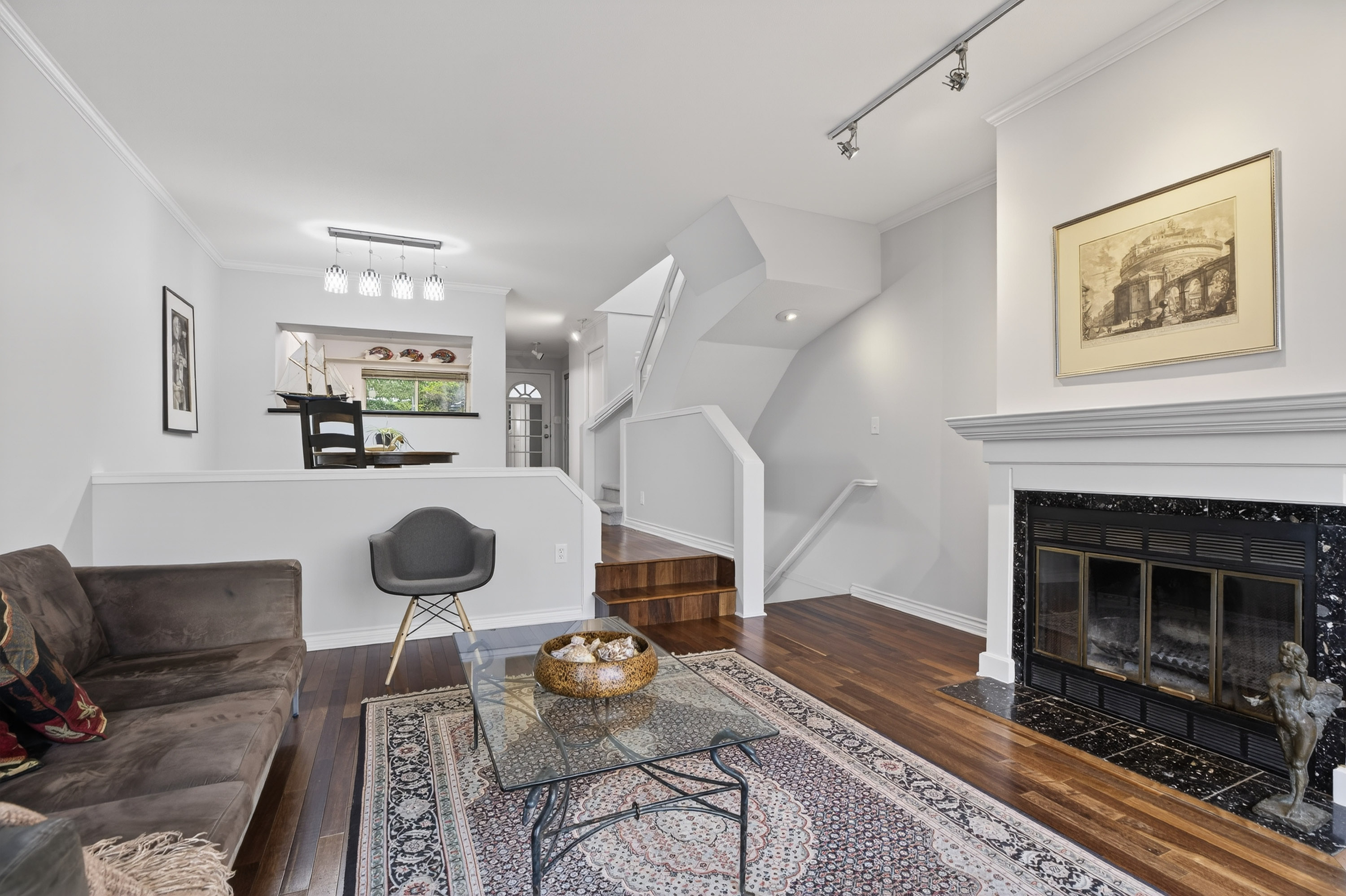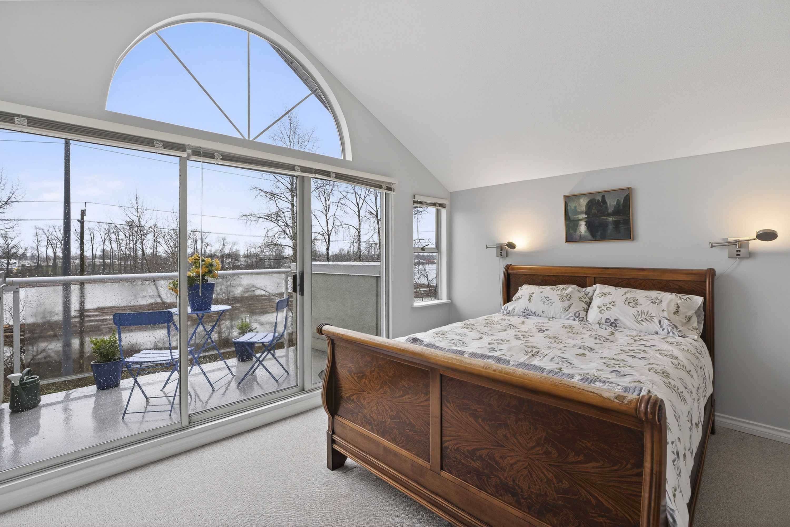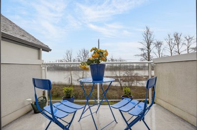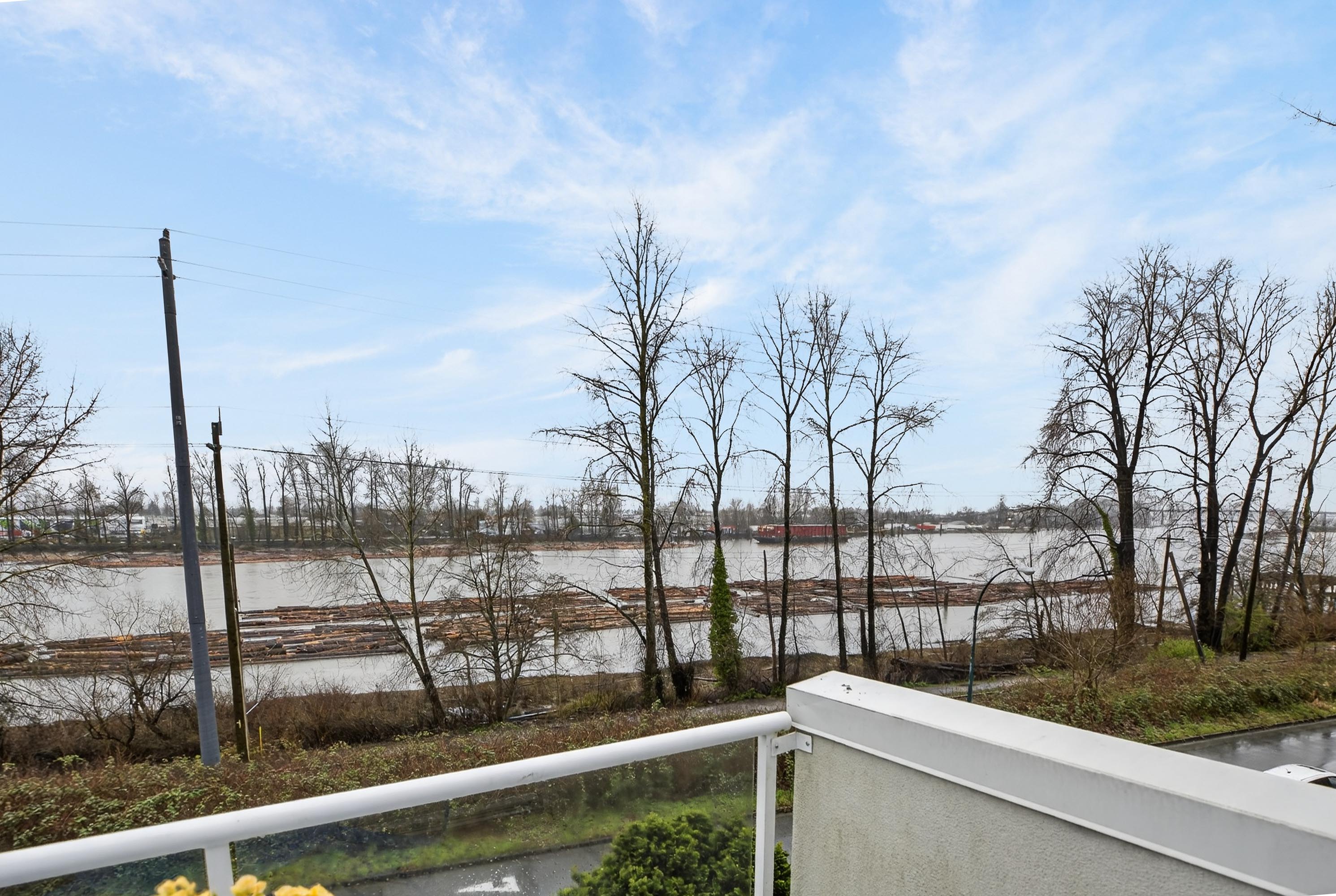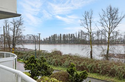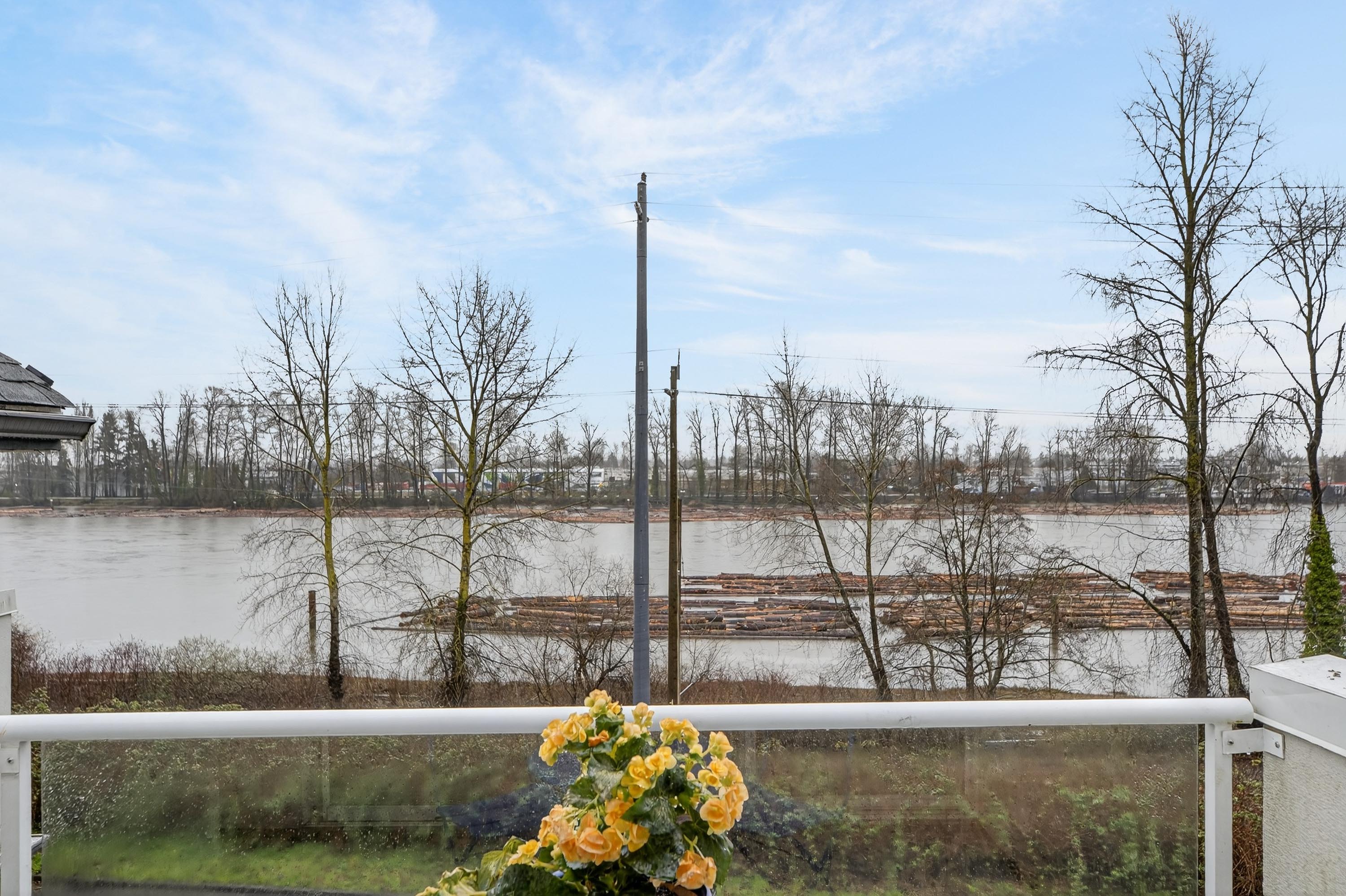 Rarely Available Unobstructed Waterfront Townhome w/Sweeping Views of the Fraser River. This is a Boutique 7-unit strata. Hardwood floors on the main, Brand New Berber carpeting throughout & Fresh paint top to bottom. The main floor offers a patio off the kitchen for bar-b-ques Plus a deck facing the River from the living room. The Master bedroom also has a Breathtaking deck with Stunning River Views all the way to Richmond. The Sunsets are Exquisite! Top floor offers High vaulted ceilings. There are 3 generous bedrooms, 2.5 baths, a utility room like a house, & a Huge indoor storage. The downstairs Bonus room or Bedroom has a Walk out patio for garden filled Afternoon Relaxation. Enjoy the River District Vibe Offering all the Restaurants & Services. This home is Special!