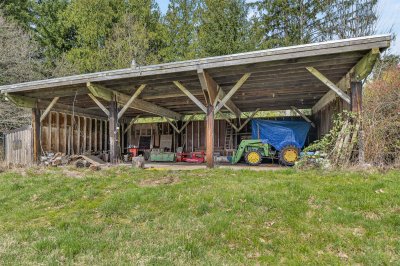 With unparalleled views of Hornby Lake, Valley & Surrounding mountains, this 7+ acre property w/ well built, 3 bed/2 bath cottage really is one of the finest properties Ryder Lake has to offer. The land offers fertile, rolling hillside (all usable), mature cedars/greenery & a half acre of blueberries. Inside you'll find a spacious living, dining & kitchen with vaulted ceilings & large picture windows that bring the stunning views inside your living room. This is all anchored by a large wood burning brick fireplace. Upstairs, has two bedrooms with custom built in closets and full bathroom. Downstairs offers another bedroom & bath, rec room, lots of storage & cold cellar with separate outside access. Call today for this rare opportunity! Must be sold in conjunction with 48850 Ryder Lake Road