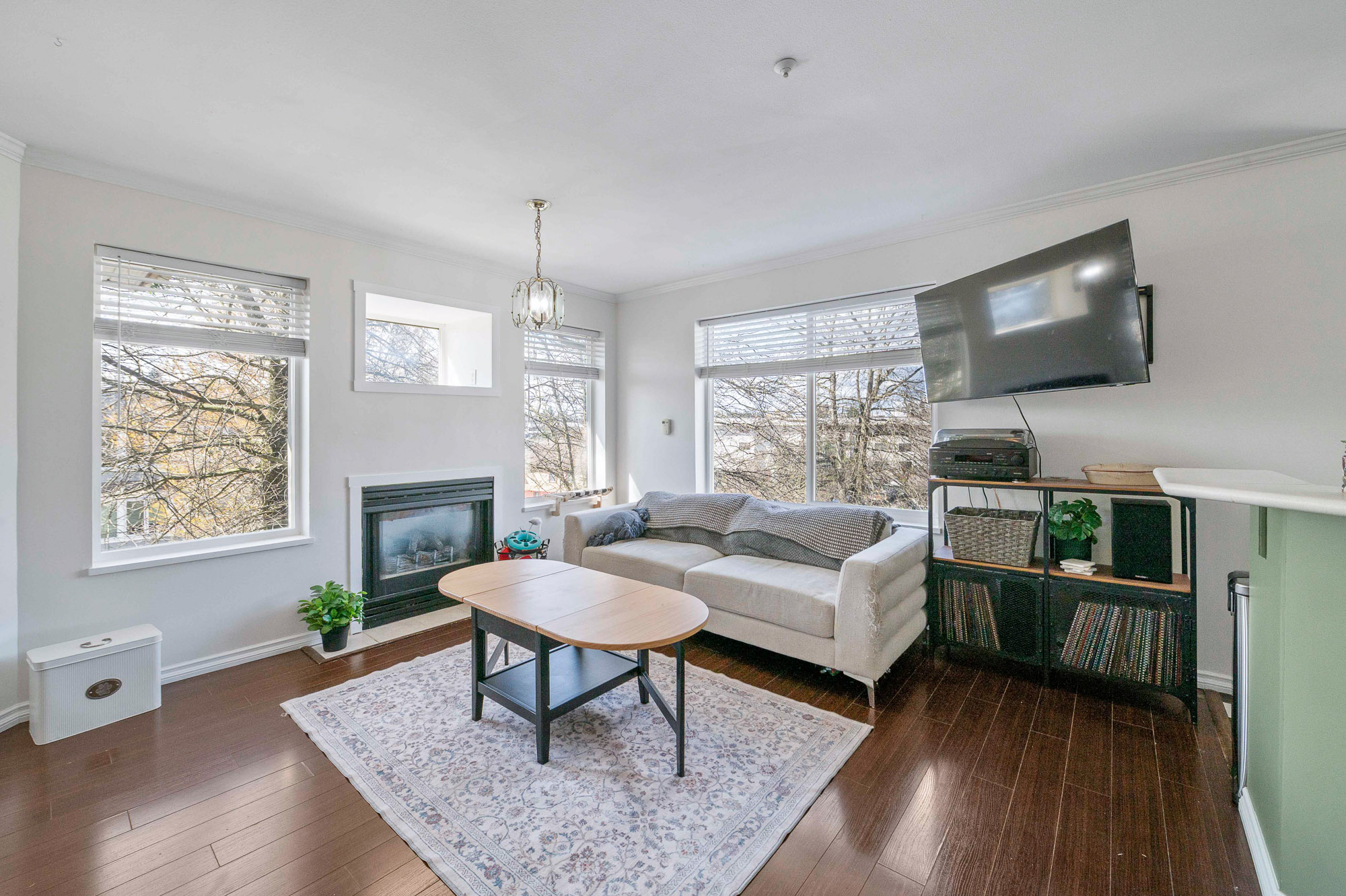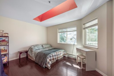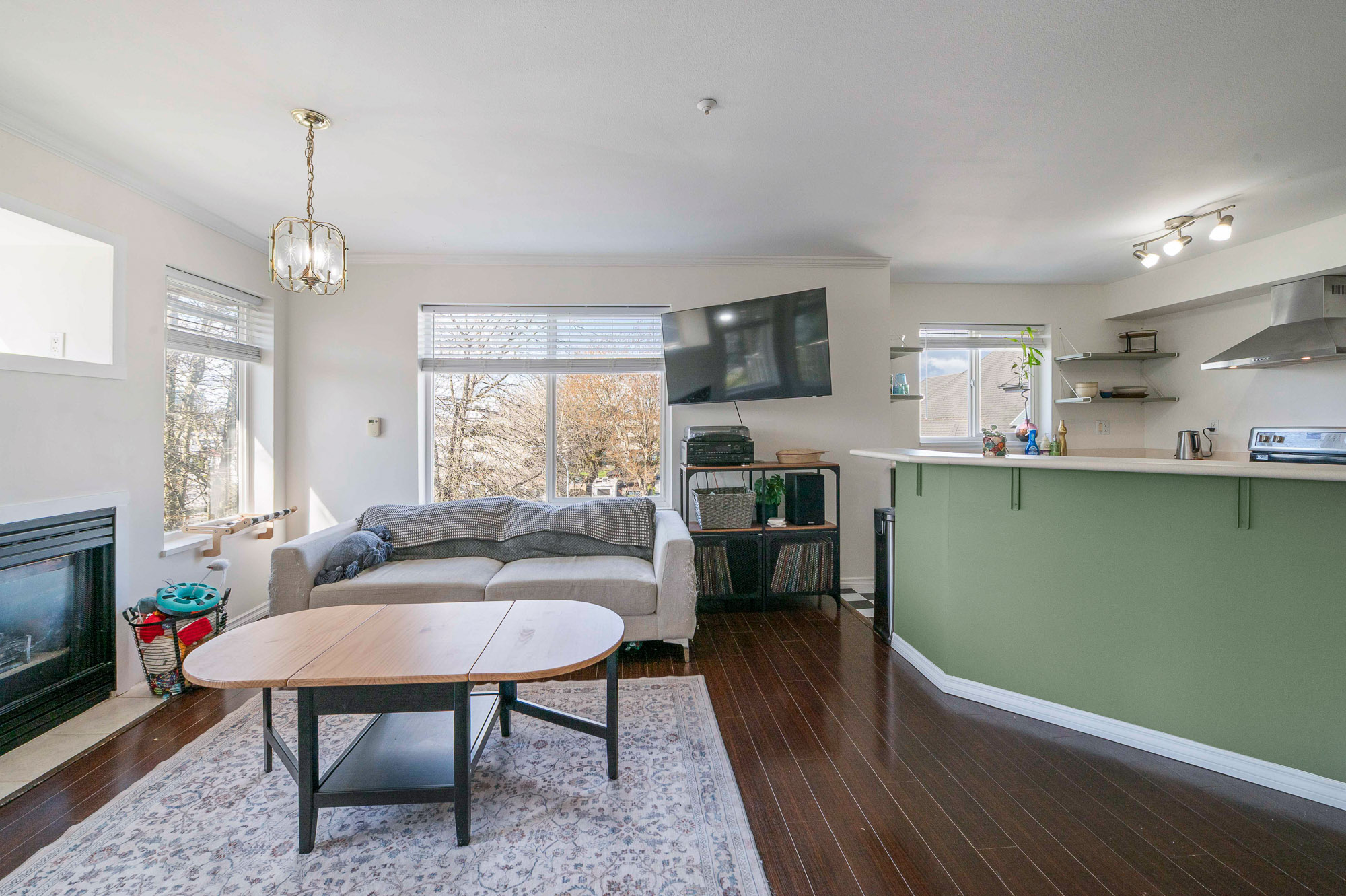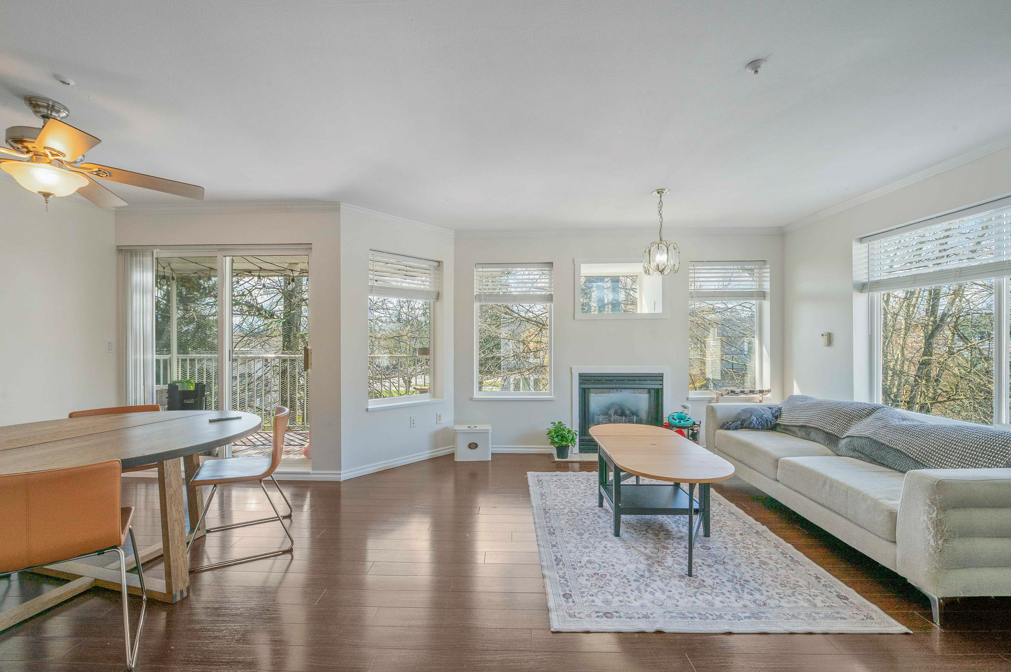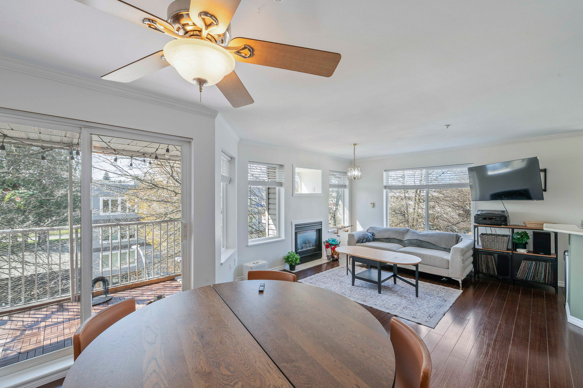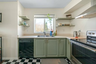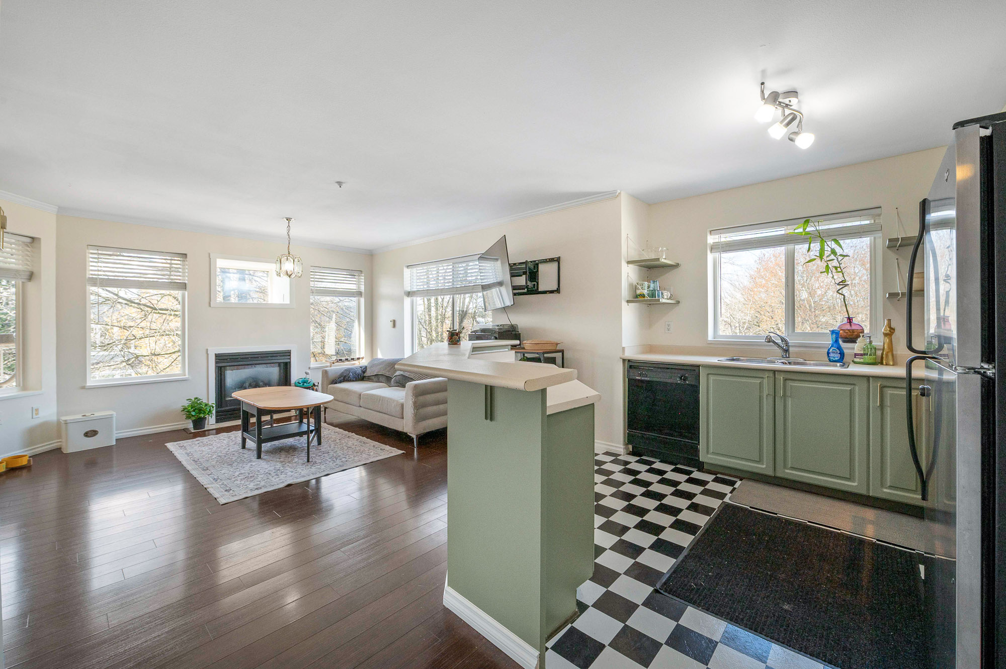 Welcome to this incredibly bright 2 bed/ 2 bath top floor corner unit located on a quiet street! The open concept floor plan features a cozy gas fireplace and seamless flow, perfect for everyday living & entertaining. The spacious primary bedroom includes an ensuite, huge walk-in closet and a skylight for added natural light. You'll love the large laundry room for extra storage & convenience. Freshly painted with some new light fixtures and a spacious deck to enjoy the peaceful setting with a peek-a-boo mountain view. Walking distance to the historic downtown area, 7 Oaks Mall, restaurants and recreation.