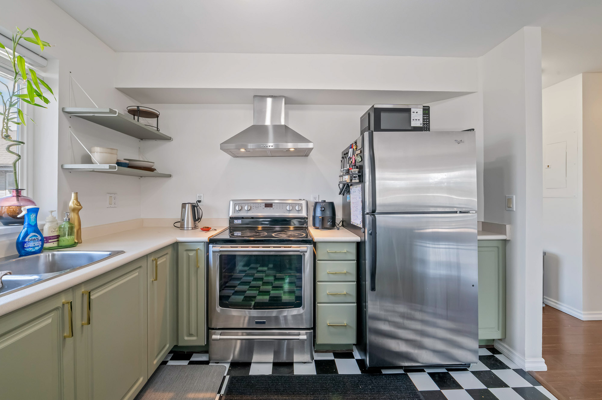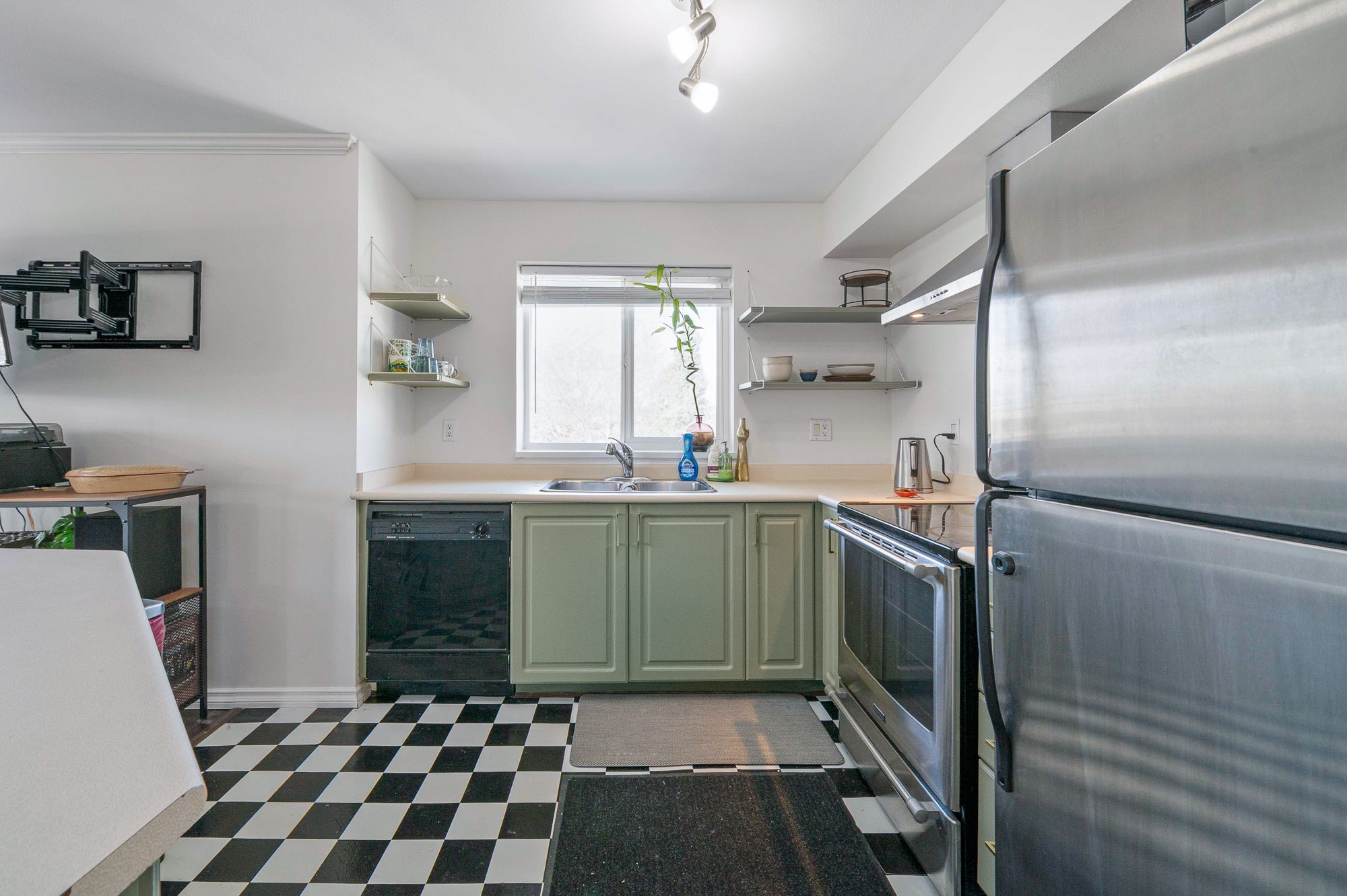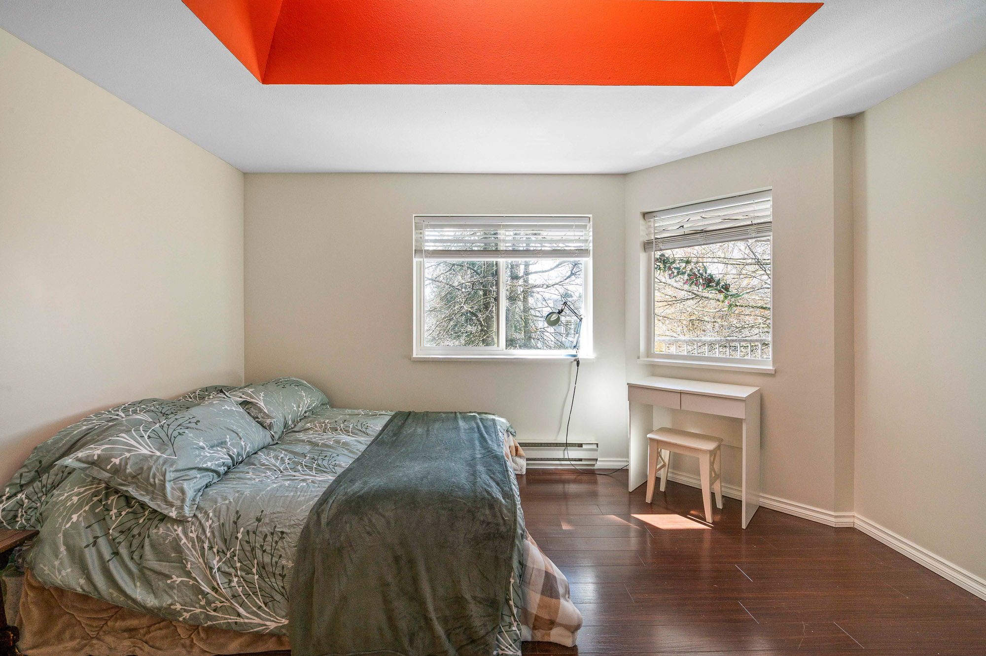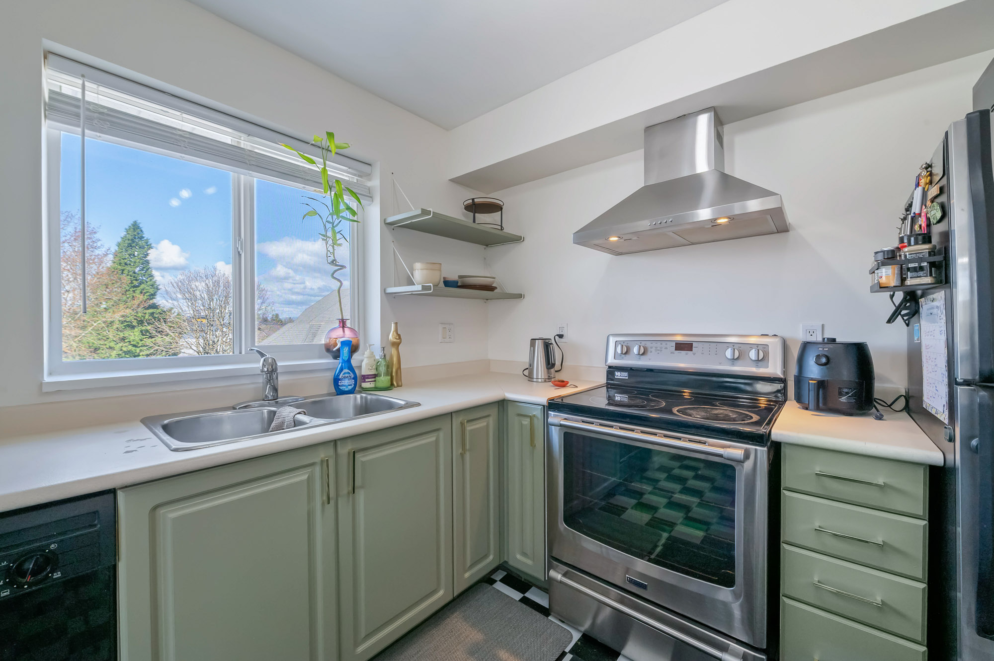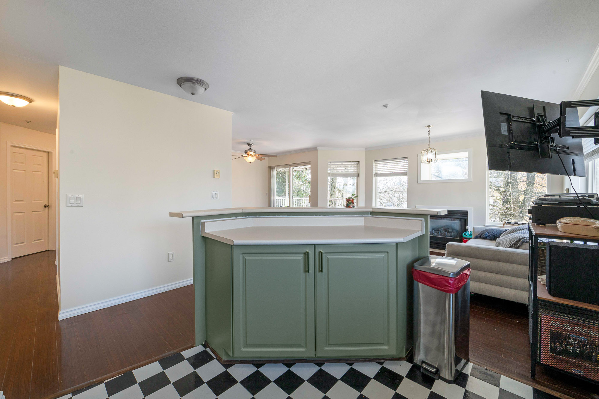 Welcome to this incredibly bright 2 bed/ 2 bath top floor corner unit located on a quiet street! The open concept floor plan features a cozy gas fireplace and seamless flow, perfect for everyday living & entertaining. The spacious primary bedroom includes an ensuite, huge walk-in closet and a skylight for added natural light. You'll love the large laundry room for extra storage & convenience. Freshly painted with some new light fixtures and a spacious deck to enjoy the peaceful setting with a peek-a-boo mountain view. Walking distance to the historic downtown area, 7 Oaks Mall, restaurants and recreation.